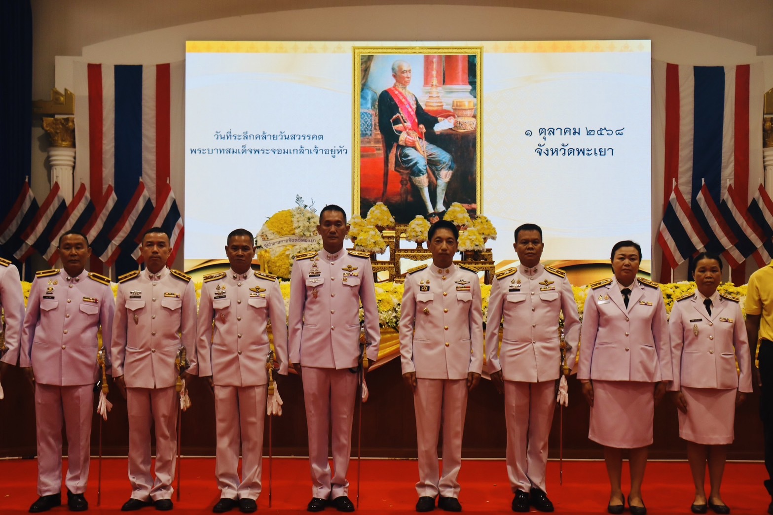 วันพุธ ที่ 1 ต.ค.68 เวลา 09.00 น. พล.ต.ต.พงษ์สวัสดิ์ ไชยบาล ผบก.ภ.จว.พะเยา มอบหมายให้ พ.ต.อ.อานันท์จักร์ กนกนพวัชร์ รอง ผบก.ภ.จว.พะเยา พร้อมด้วย พ.ต.ท.หญิง ศรีรุ้ง สุขสวัสดิ์ รอง ผกก.ฝอ.ภ.จว.พะเยา และข้าราชการตำรวจในสังกัด เข้าร่วมพิธีวันที่ระลึกพระบาทสมเด็จพระจอมเกล้าเจ้าอยู่หัว ณ ศาลาประชาคมจังหวัดพะเยา อ.เมืองพะเยา โดยมี นายภูธนะ ชมภูมิ่ง รองผู้ว่าราชการจังหวัดพะเยา เป็นประธานในพิธีฯ