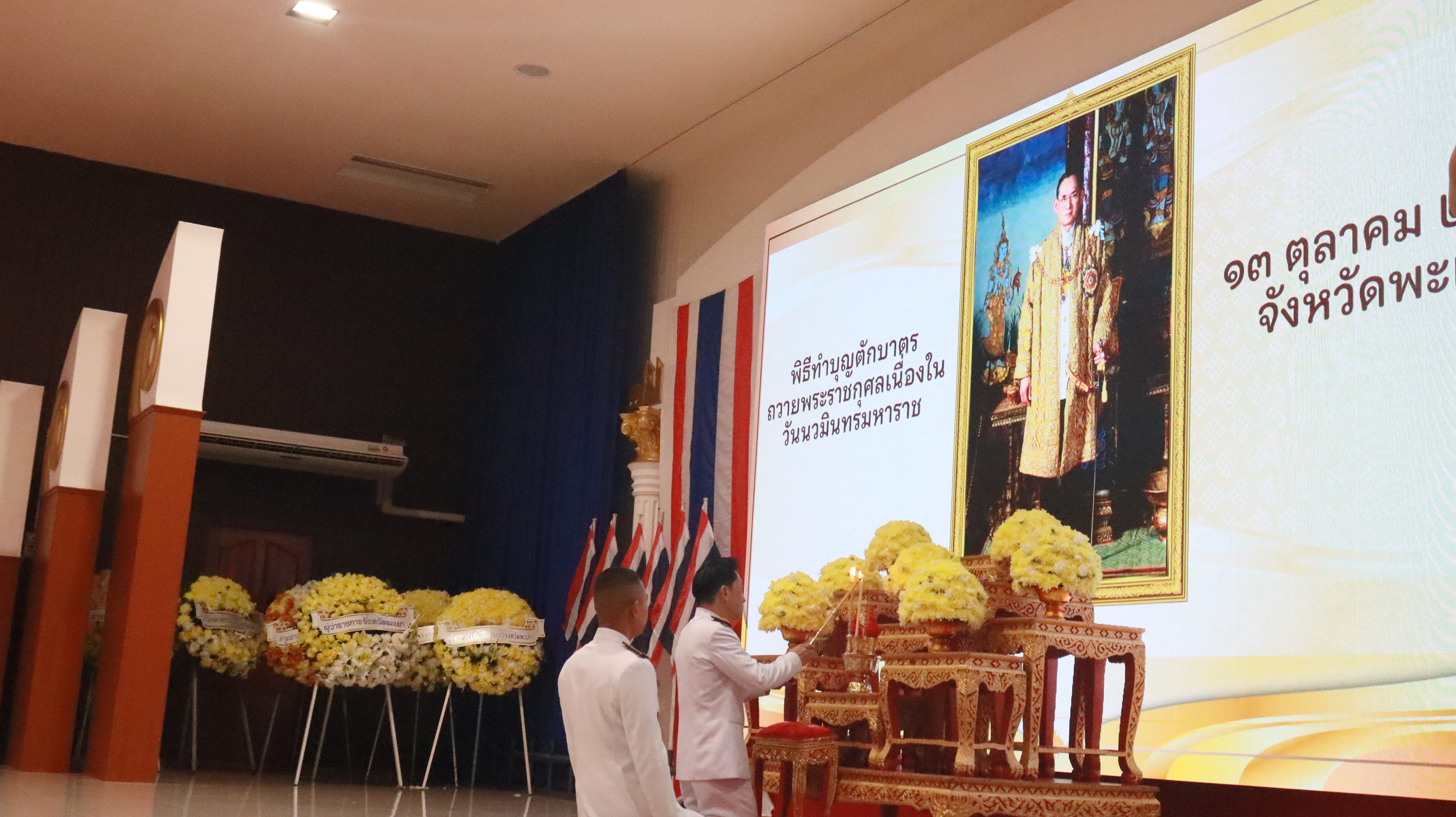 วันจันทร์ ที่ 13 ต.ค.68 เวลา 07.00 น. พล.ต.ต.พงษ์สวัสดิ์ ไขยบาล ผบก.ภ.จว.พะเยา,คุณมลธิชา ไชยบาล ประธานแม่บ้านตำรวจภูธรจังหวัดพะเยา,พ.ต.ท.หญิง วันวิสาข์ เจียมวิจักษณ์ รอง ผกก.ฝอ.ฯ ช่วยราชการ ภ.จว.พะเยา และข้าราชการตำรวจในสังกัด ร่วมพิธีทำบุญตักบาตรถวายพระราชกุศลและพิธีวางพวงมาลา เนื่องในวันนวมินทรมหาราช ณ ศาลาประชาคมจังหวัดพะเยา อ.เมืองพะเยา จว.พะเยา โดยมี นายภูธนะ ชมภูมิ่ง รองผู้ว่าราชการจังหวัดพะเยา รักษาราชการแทนผู้ว่าราชการจังหวัดพะเยา เป็นประธานในพิธีฯ