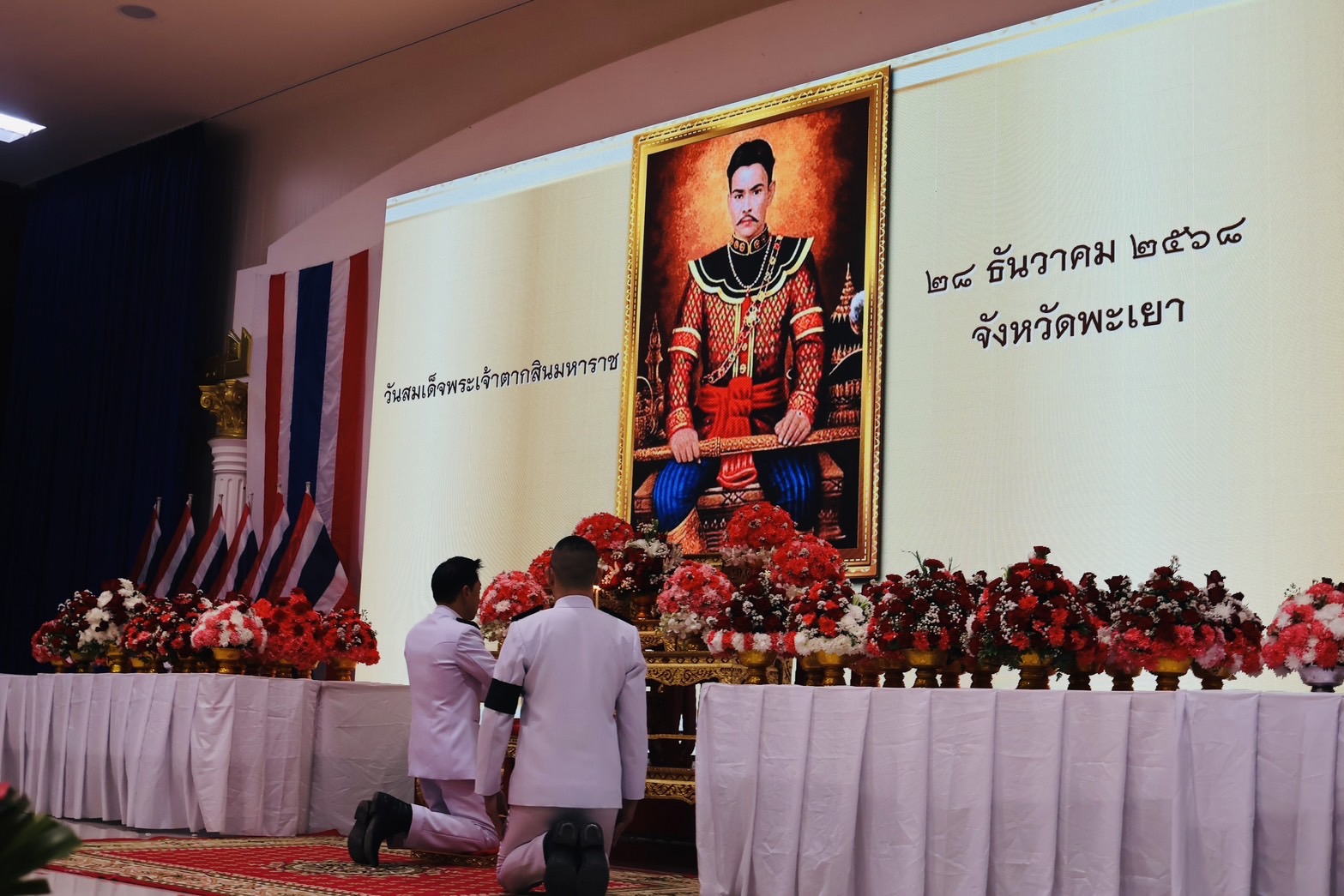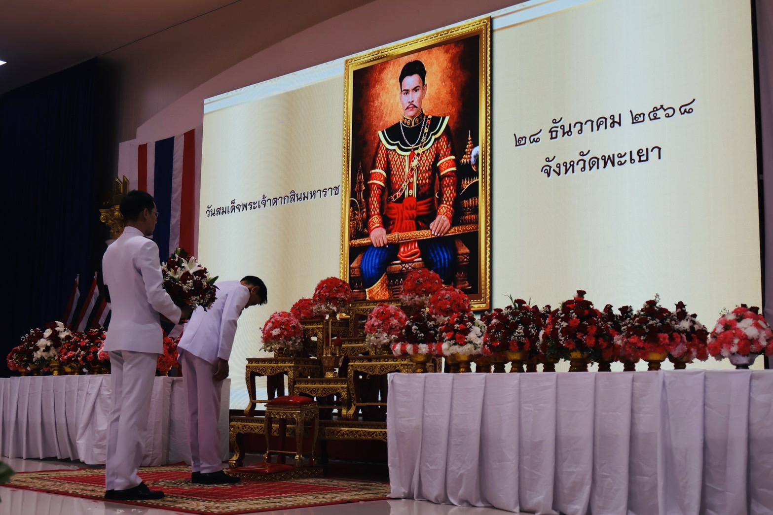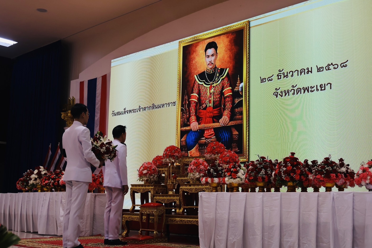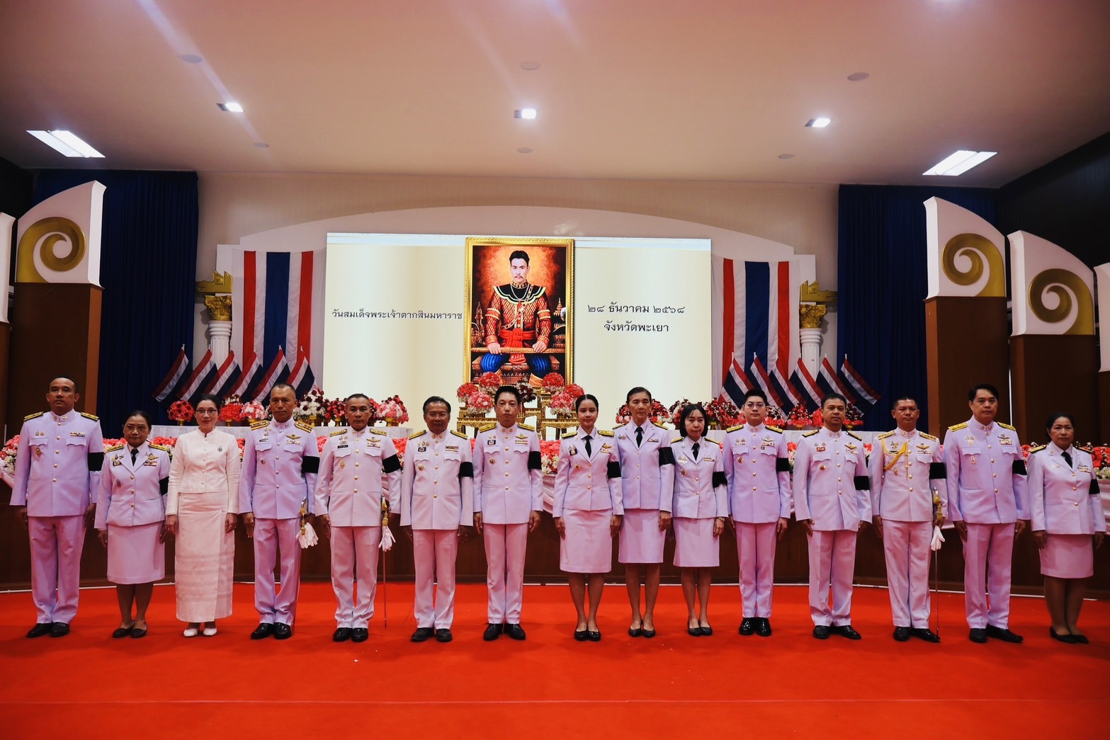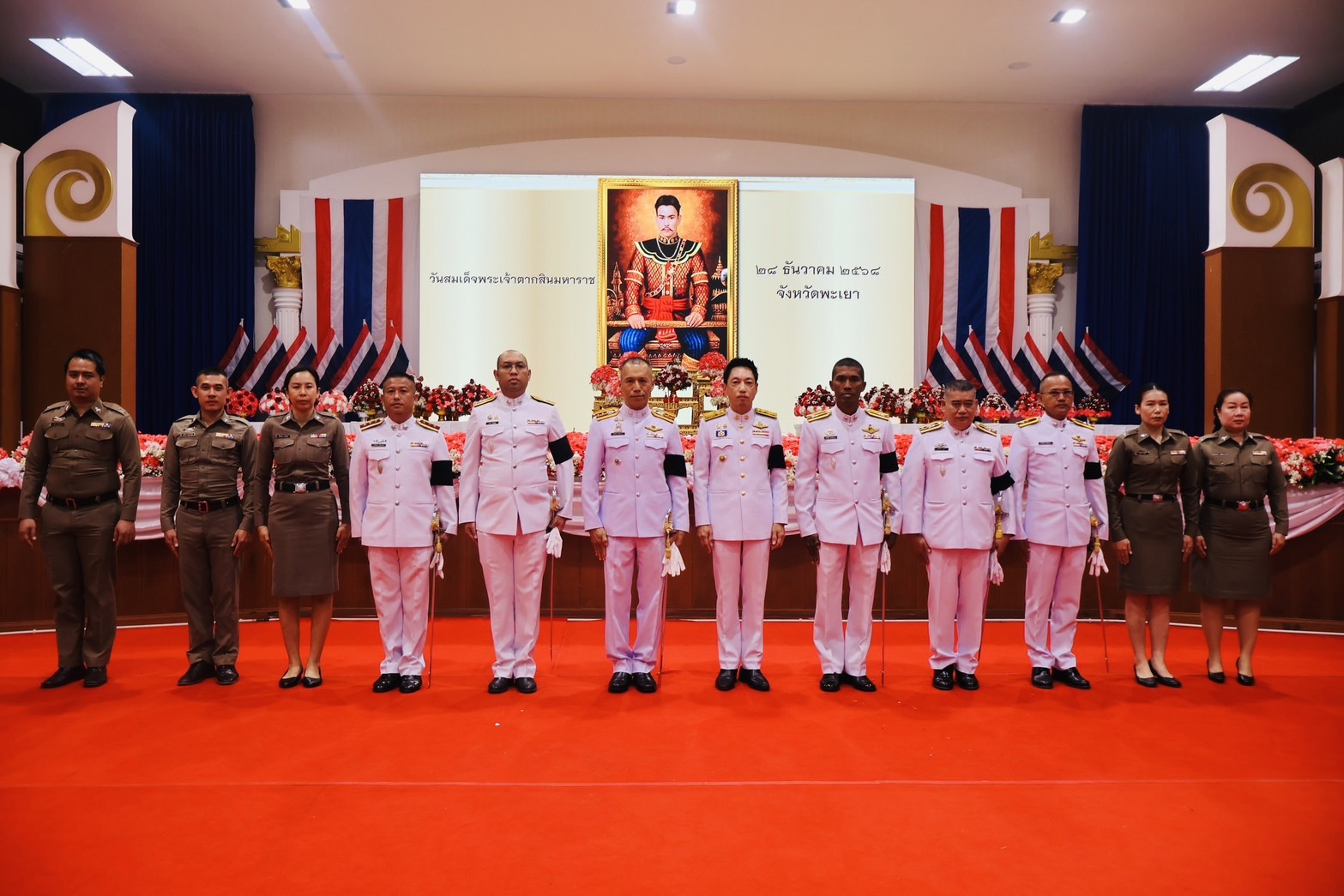 วันอาทิตย์ ที่ 28 ธ.ค.68 เวลา 07.00 น. พล.ต.ต.พงษ์สวัสดิ์ ไชยบาล ผบก.ภ.จว.พะเยา มอบหมายให้ พ.ต.อ.พรเทพ น้องการ รอง ผบก.ภ.จว.พะเยา พร้อมด้วยข้าราชการตำรวจในสังกัด เข้าร่วมพิธีวันสมเด็จพระเจ้าตากสินมหาราช ณ ศาลาประชาคมจังหวัดพะเยา อ.เมืองพะเยา จว.พะเยา โดยมี นายภูธนะ ชมภูมิ่ง รองผู้ว่าราชการจังหวัดพะเยา เป็นประธานในพิธีฯ
