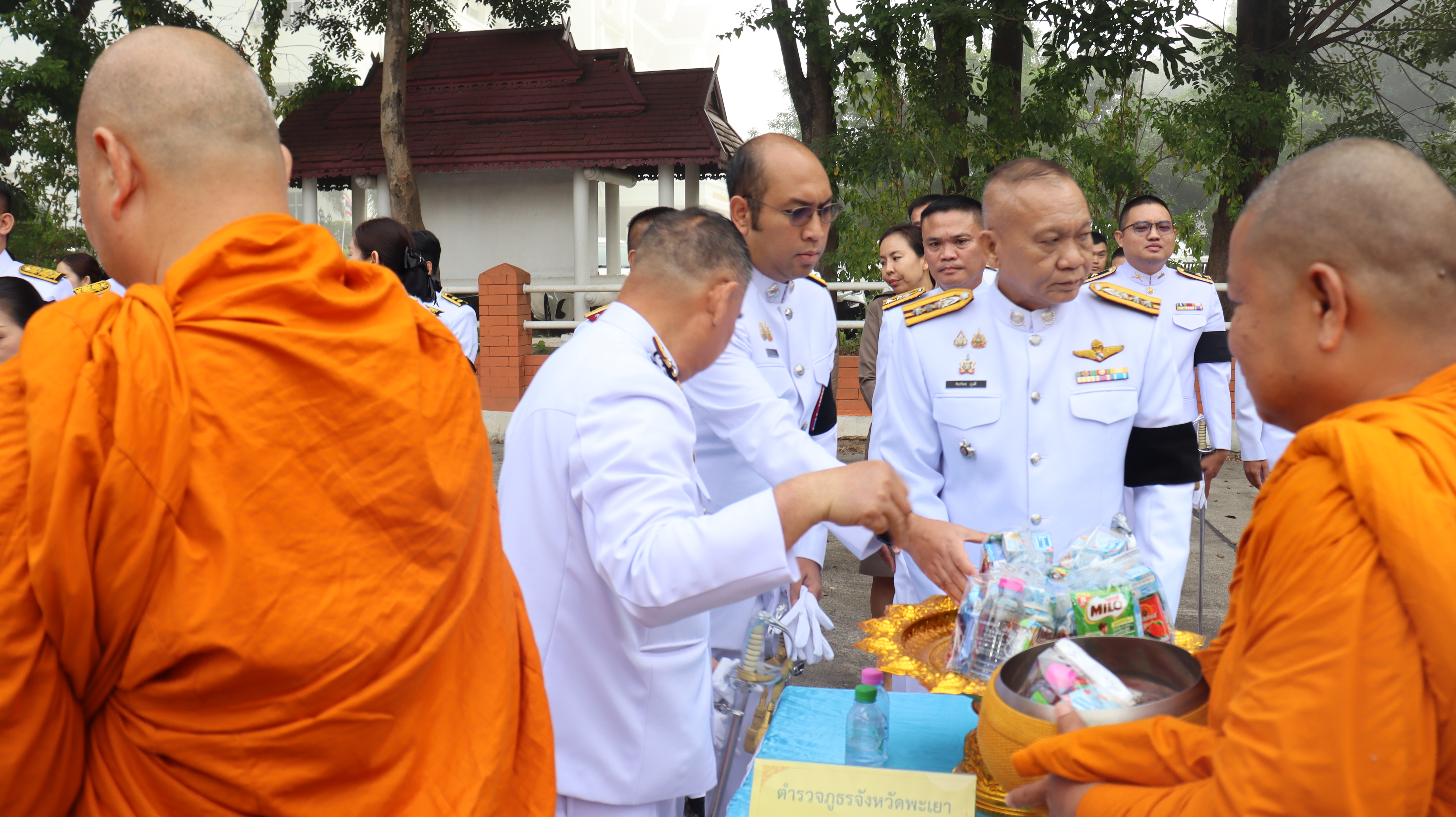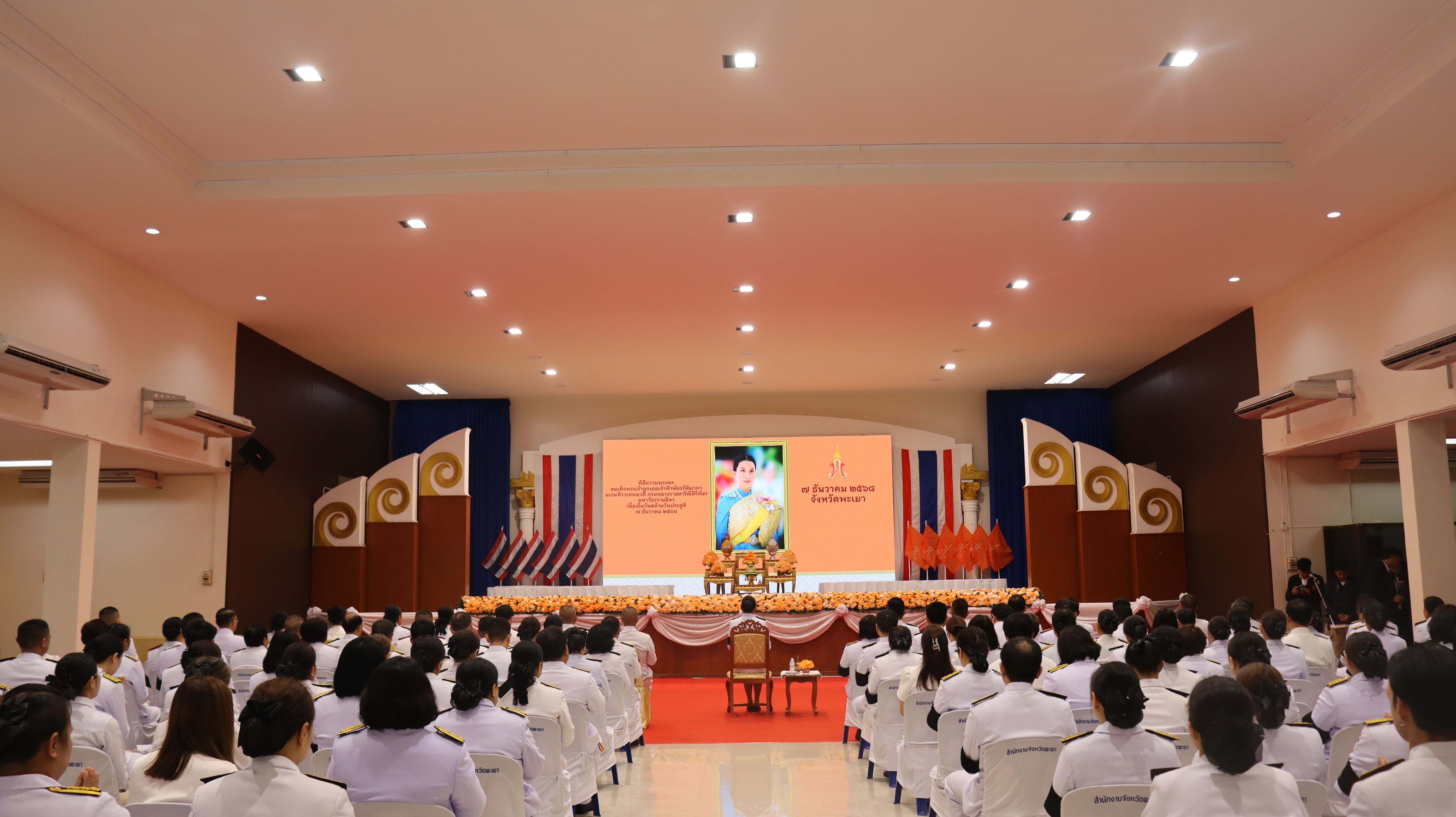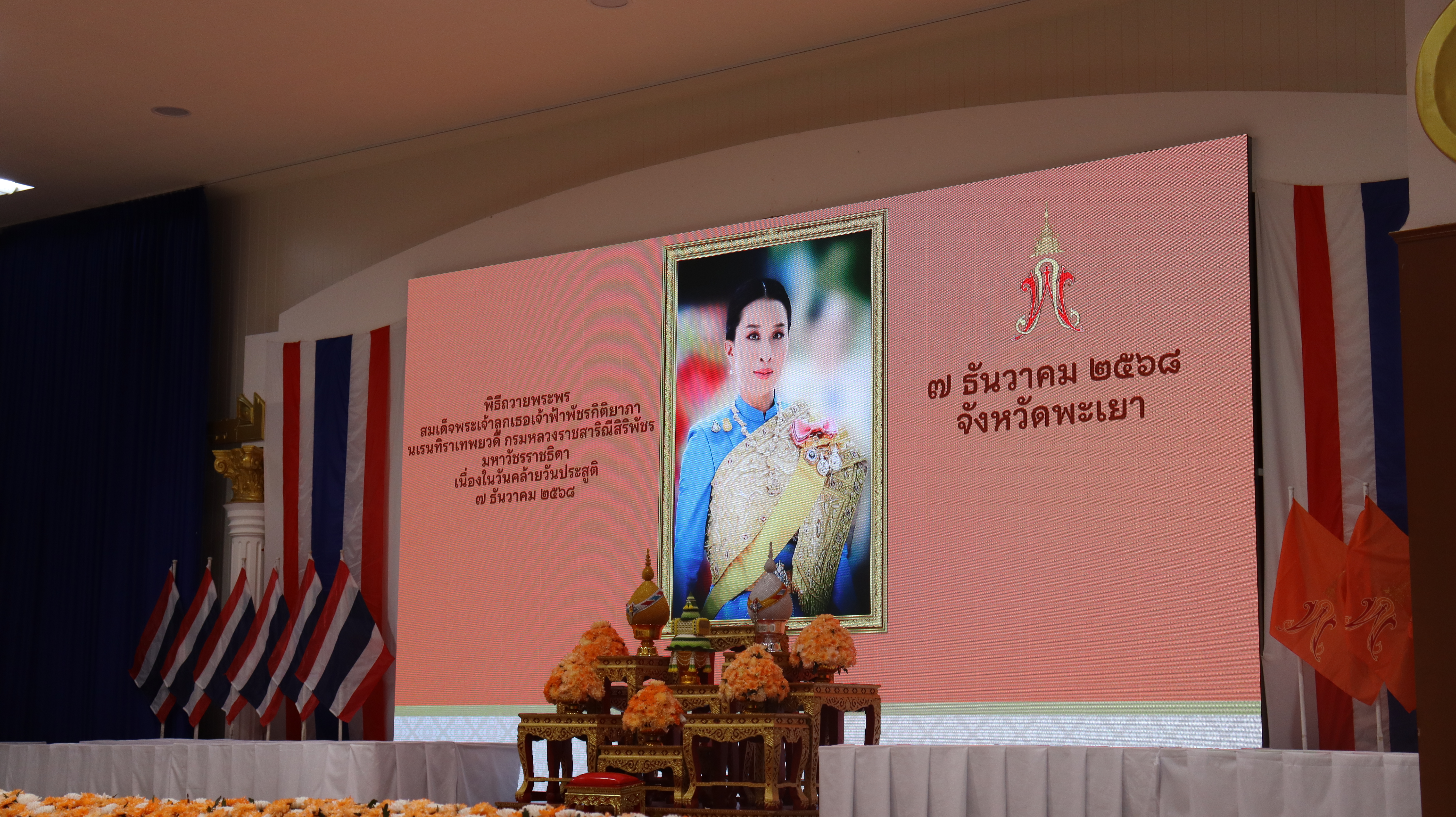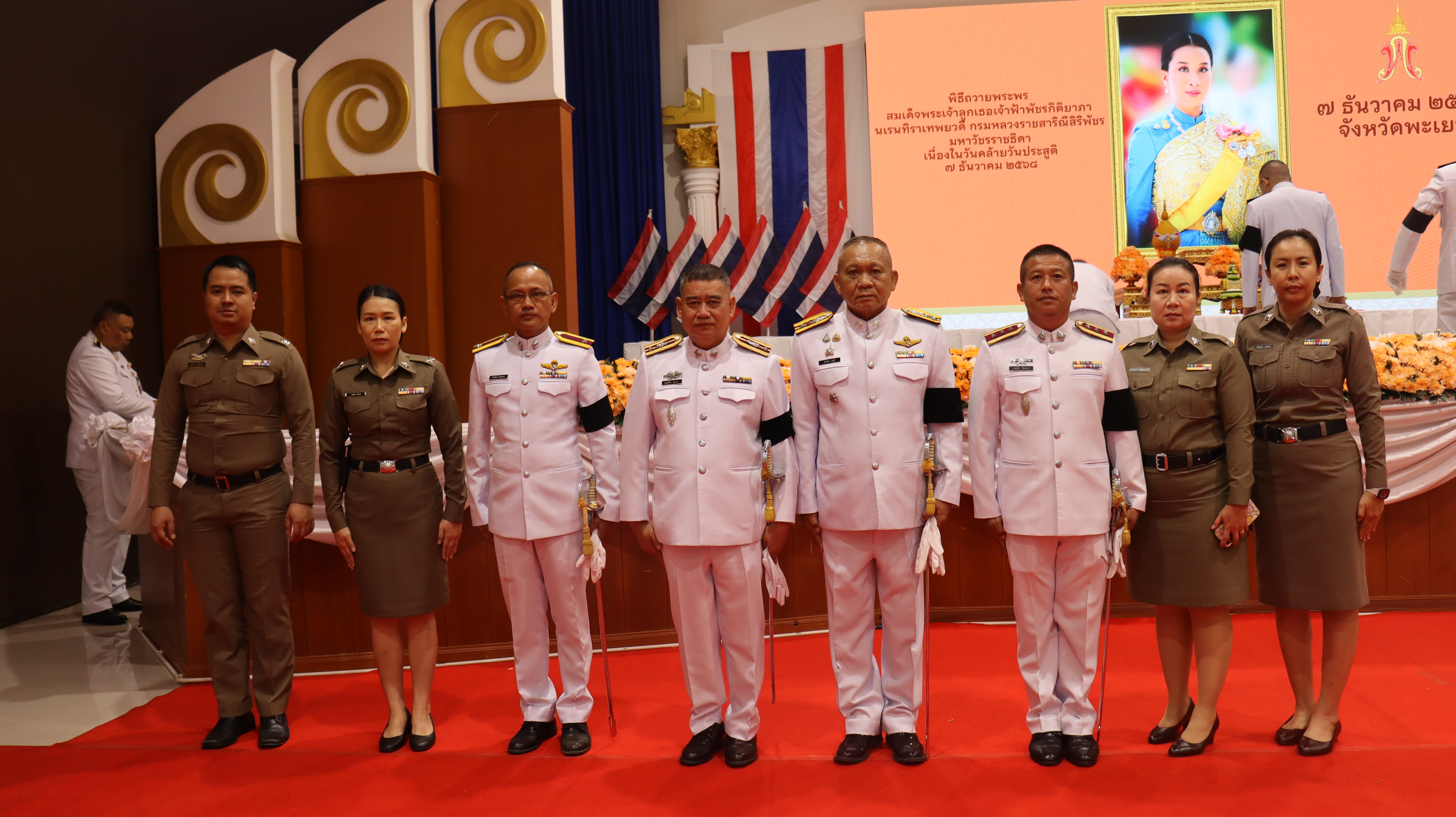วันอาทิตย์ ที่ 7 ธ.ค.68 เวลา 07.00 น. พล.ต.ต.พงษ์สวัสดิ์ ไชยบาล ผบก.ภ.จว.พะเยา มอบหมายให้ พ.ต.อ.จิรภัทร มุ่งดี รอง ผบก.ภ.จว.พะเยา เป็นผู้แทน พร้อมด้วยข้าราชการตำรวจในสังกัด เข้าร่วมพิธีถวายพระพรสมเด็จพระเจ้าลูกเธอ เจ้าฟ้าพัชรกิติยาภานเรนทิราเทพยวดี กรมหลวงราชสาริณีสิริพัชร มหาวัชรราชธิดา เนื่องในวันคล้ายวันประสูติ ณ ศาลาประชาคมจังหวัดพะเยา อ.เมืองพะเยา จว.พะเยา โดยมี นางสาวอรอาภา โล่ห์วีระ รองผู้ว่าราชการจังหวัดพะเยา รักษาราชการแทนผู้ว่าราชการจังหวัดพะเยา เป็นประธานในพิธีฯ