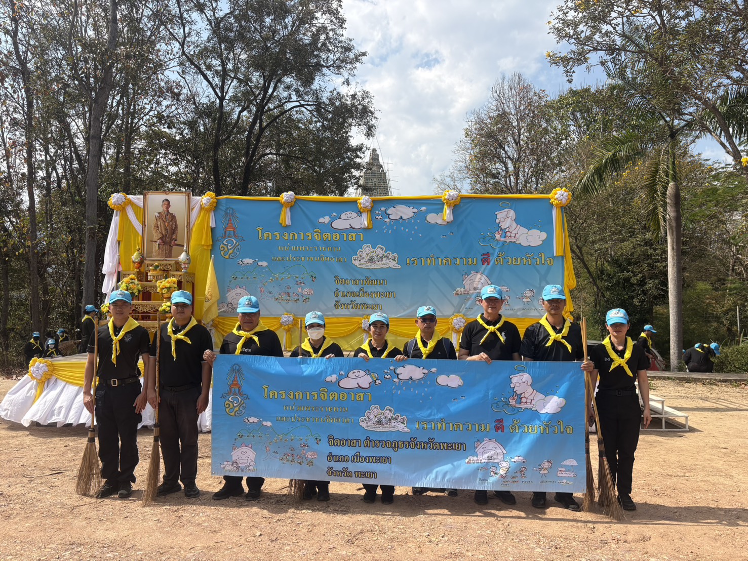 วันที่ 11 ก.พ.69 เวลา 14.00 น. โดยการอำนวยการของ พล.ต.ต.พงษ์สวัสดิ์ ไชยบาล ผบก.ภ.จว.พะเยา มอบหมายให้ พ.ต.ท.หญิง วันวิสาข์ เจียมวิจักษณ์ รอง ผกก.ฝอ.ฯ นำข้าราชการตำรวจจิตอาสา ภ.จว.พะเยา,สภ.เมืองพะเยา เข้าร่วมกิจกรรมจิตอาสา Kick Off การบูรณาการป้องกันและแก้ปัญหาไฟป่าหมอกควันและฝุ่นละอองขนาดเล็ก (PM 2.5 ) ประจำปี 2569 ณ วัดอนาลโยทิพยาราม ต.สันป่าม่วง อ.เมืองพะเยา จว.พะเยา โดยมี นายภูธนะ ชมภูมิ่ง รองผู้ว่าราชการจังหวัดพะเยา เป็นประธานในพิธีฯ