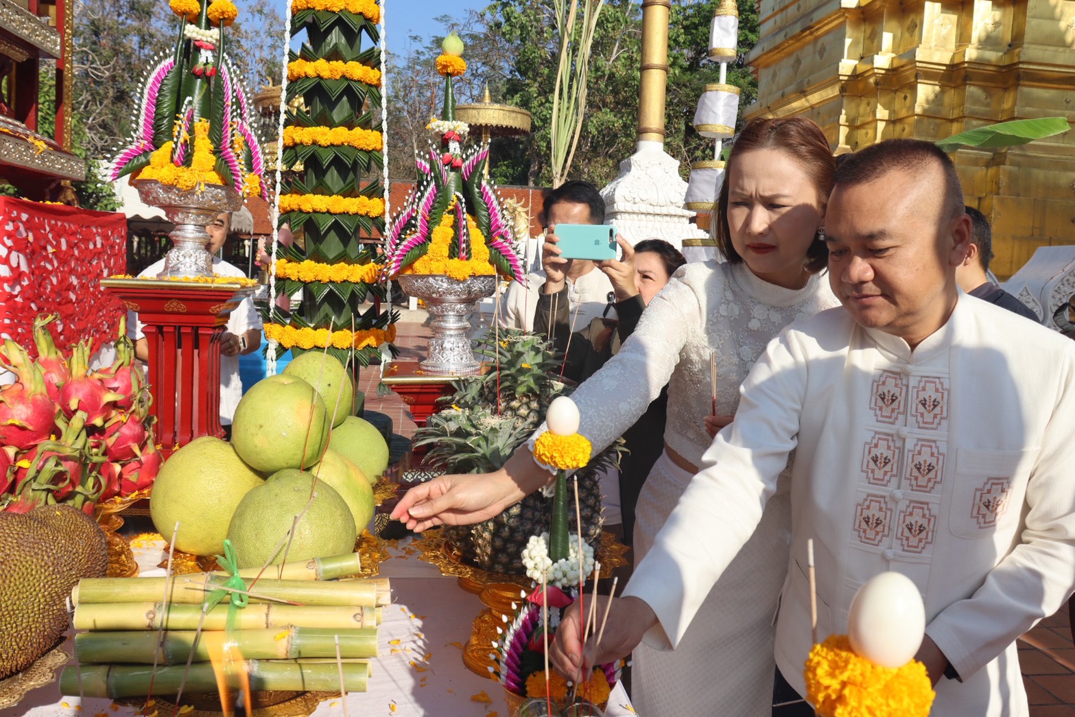 วันอาทิตย์ ที่ 1 มี.ค.69 เวลา 08.00 น.พล.ต.ต.พงษ์สวัสดิ์ ไชยบาล ผบก.ภ.จว.พะเยา มอบหมายให้ พ.ต.อ.บัญชา อินถา รอง ผบก.ภ.จว.พะเยา พร้อมด้วย คุณจุฑารัตน์ อินถา รองประธานแม่บ้านตำรวจภูธรจังหวัดพะเยา ร่วมพิธีขึ้นท้าวทั้ง 4 ณ โบราณสถานพระธาตุจอมทอง วัดศรีโคมคำ พระอารามหลวง อ.เมืองพะเยา จว.พะเยา โดยมี นางสาวอรอาภา โล่ห์วีระ ผู้ว่าราชการจังหวัดพะเยา เป็นประธานในพิธีฯ