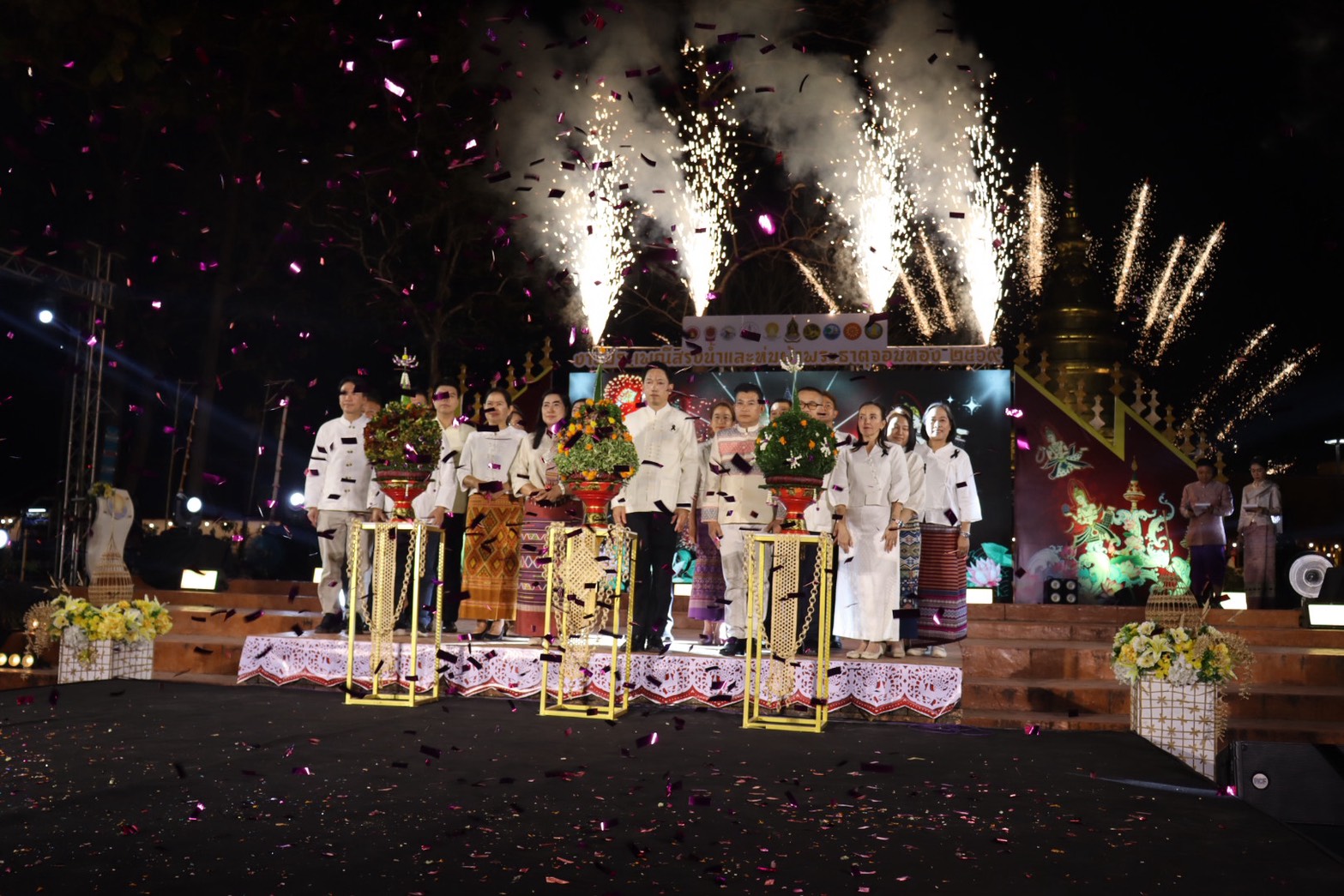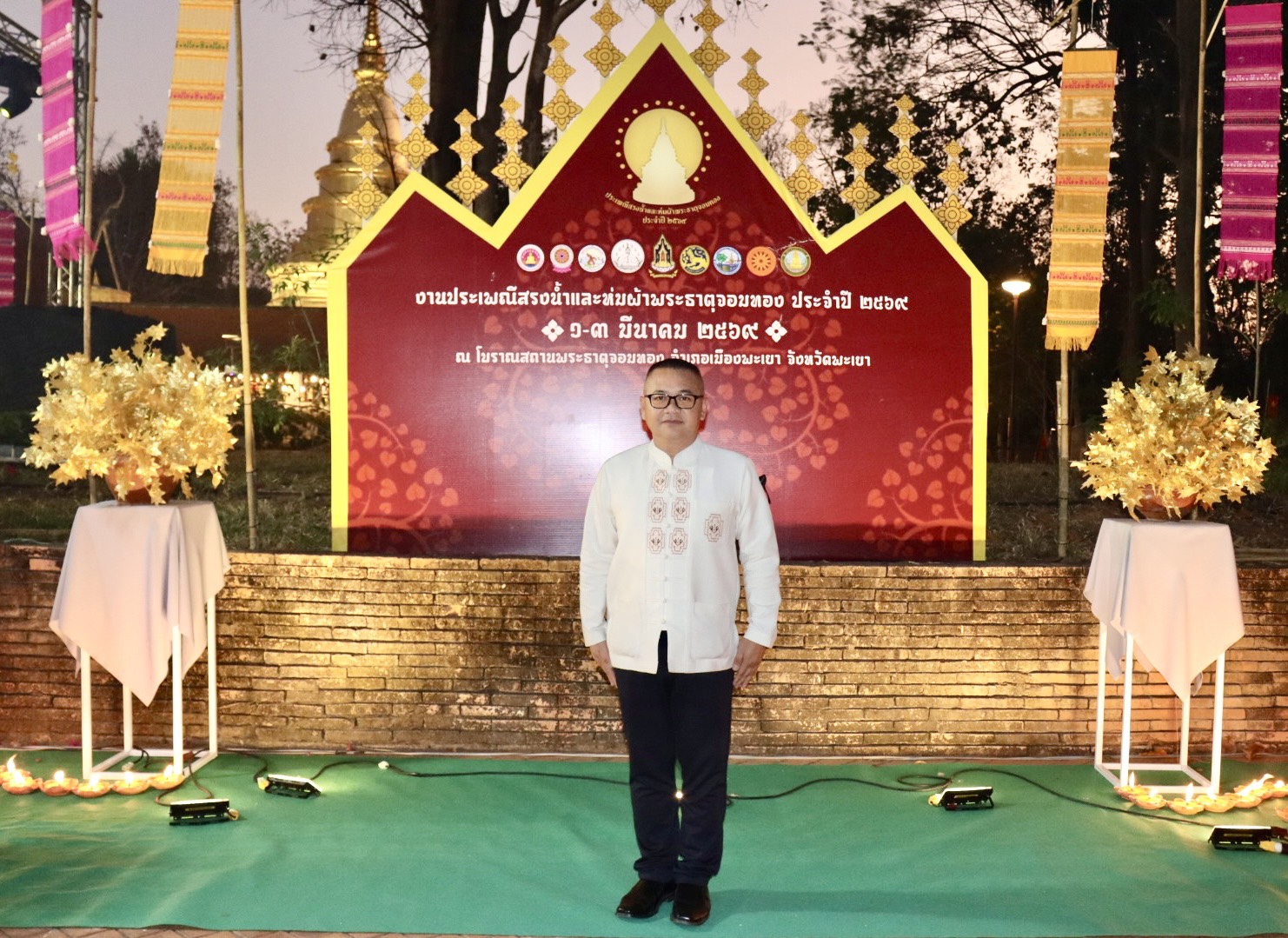 วันอาทิตย์ ที่ 1 มี.ค.69 เวลา 18.45 น. พล.ต.ต.พงษ์สวัสดิ์ ไชยบาล ผบก.ภ.จว.พะเยา มอบหมายให้ พ.ต.อ.บัญชา อินถา รอง ผบก.ภ.จว.พะเยา ร่วมพิธีเปิดโครงการ "ส่งเสริมการท่องเที่ยวเทศกาล ประเพณี วัฒนธรรมและชาติพันธ์จังหวัดพะเยา" กิจกรรมประเพณีสรงน้ำและห่มผ้าพระธาตุจอมทอง ณ โบราณสถานพระธาตุจอมทอง วัดศรีโคมคำ พระอารามหลวง อ.เมืองพะเยา จว.พะเยา โดยมี นายภูธนะ ชมภูมิ่ง รองผู้ว่าราชการจังหวัดพะเยา เป็นประธานในพิธีฯ
