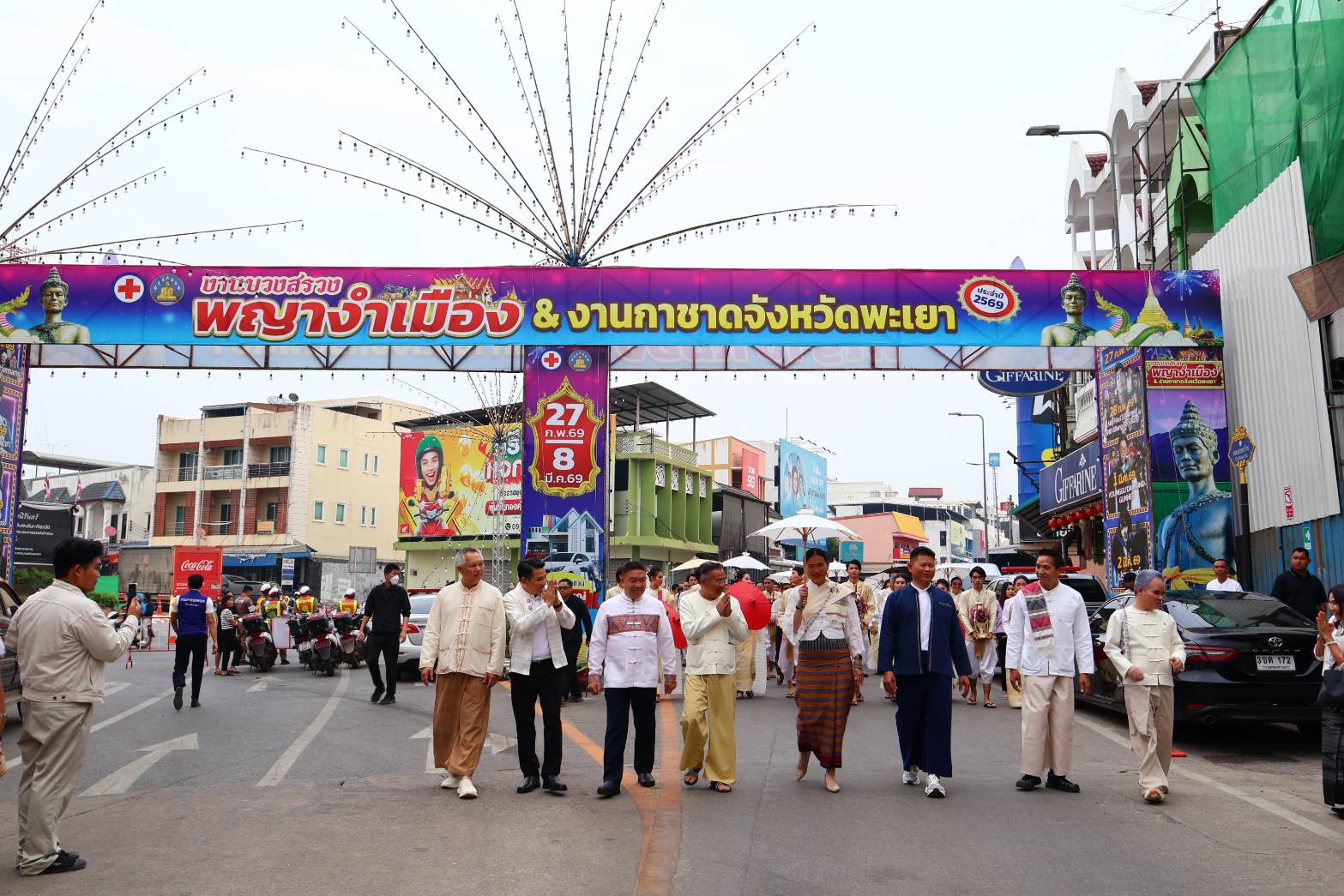 วันพฤหัสบดี ที่ 5 มี.ค.69 เวลา 15.30 น.พล.ต.ต.พงษ์สวัสดิ์ ไชยบาล ผบก.ภ.จว.พะเยา เข้าร่วมงานประเพณีบวงสรวงพ่อขุนงำเมือง ประจำปี 2569 ร่วมขบวนแห่เครื่องสักการะและพิธีวางเครื่องสักการะ ณ ลานอนุสาวรีย์พ่อขุนงำเมือง ต.เวียง อ.เมืองพะเยา จว.พะเยา โดยมี นางสาวอรอาภา โล่ห์วีระ ผู้ว่าราชการจังหวัดพะเยา เป็นประธานในพิธีฯ