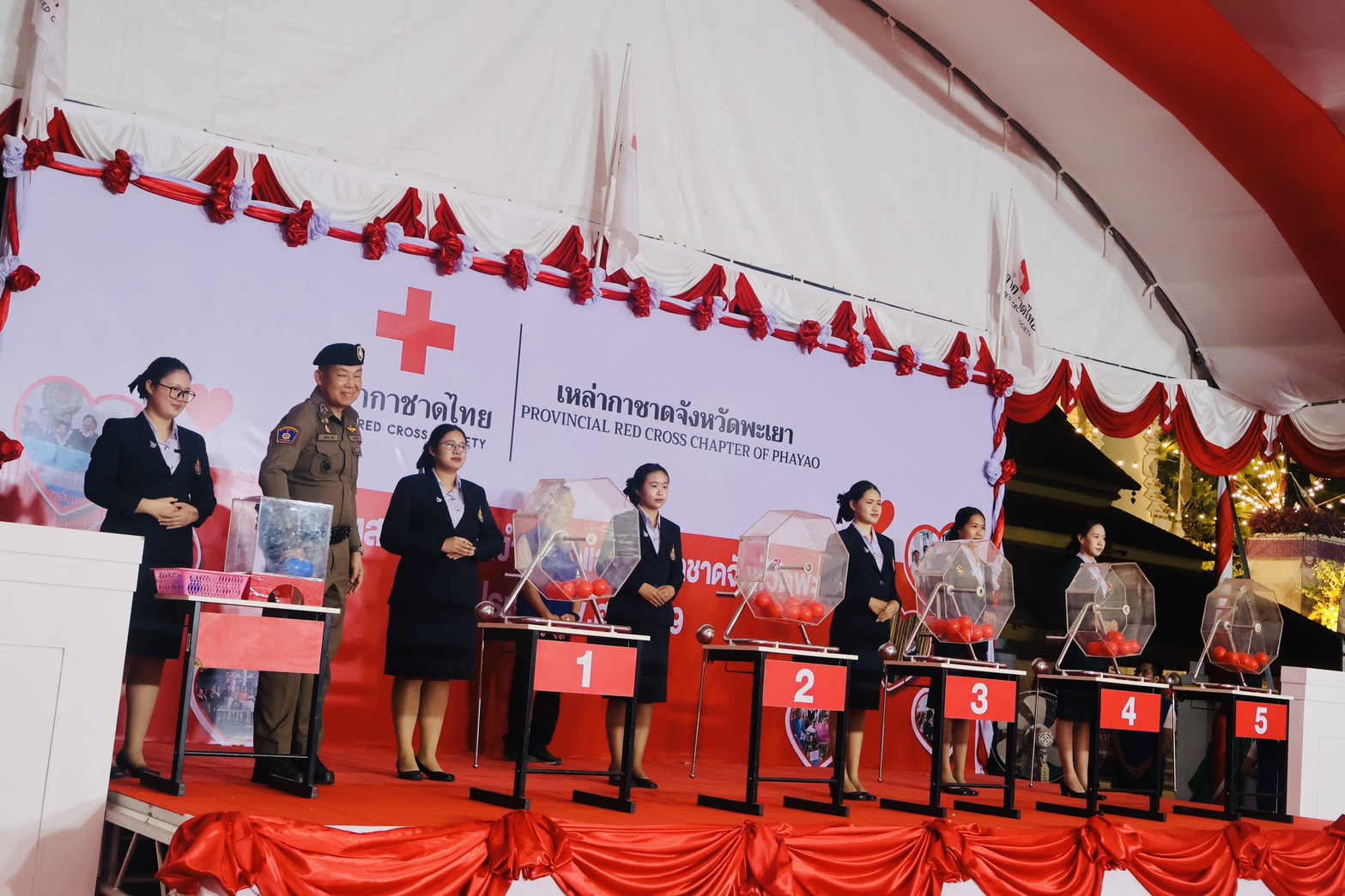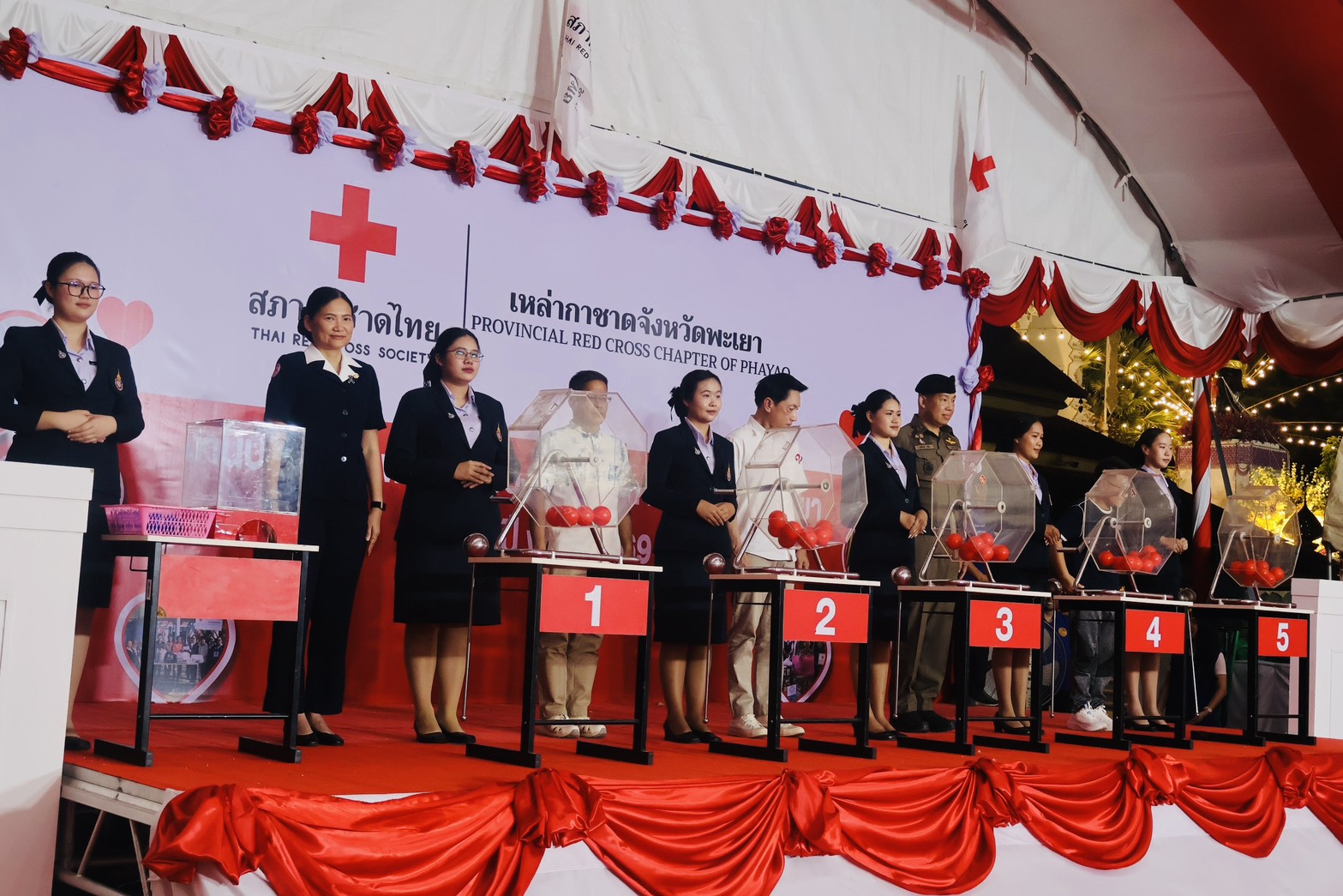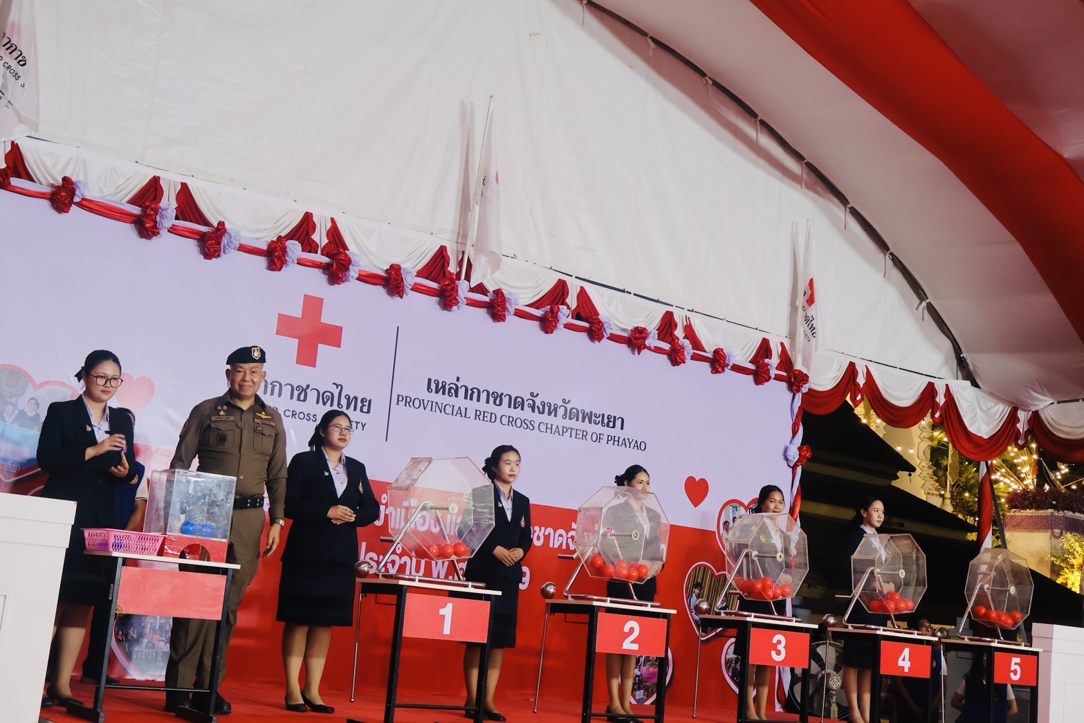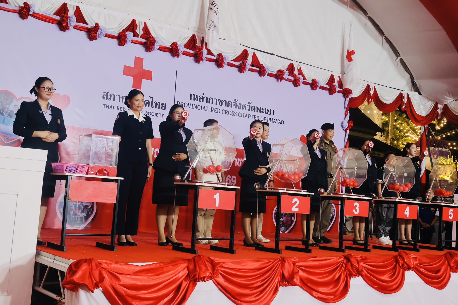 วันอาทิตย์ ที่ 8 มี.ค.69 เวลา 18.30 น. เป็นต้นไป พล.ต.ต.พงษ์สวัสดิ์ ไชยบาล ผบก.ภ.จว.พะเยา มอบหมายให้ พ.ต.อ.อภิรักษ์ นักไร่ รอง ผบก.ภ.จว.พะเยา เข้าร่วมออกรางวัลสลากกาชาดการกุศล ประจำปี พ.ศ.2569 ในงานบวงสรวงพญางำเมือง และงานกาชาดจังหวัดพะเยา ประจำปี 2569 ณ เวทีกาชาด บริเวณลานอนุสาวรีย์พ่อขุนงำเมือง และสวนสมเด็จย่าริมกว๊านพะเยา อ.เมืองพะเยา จว.พะเยา โดยมี นางสาวอรอาภา โล่ห์วีระ ผู้ว่าราชการจังหวัดพะเยา เป็นประธานฯ