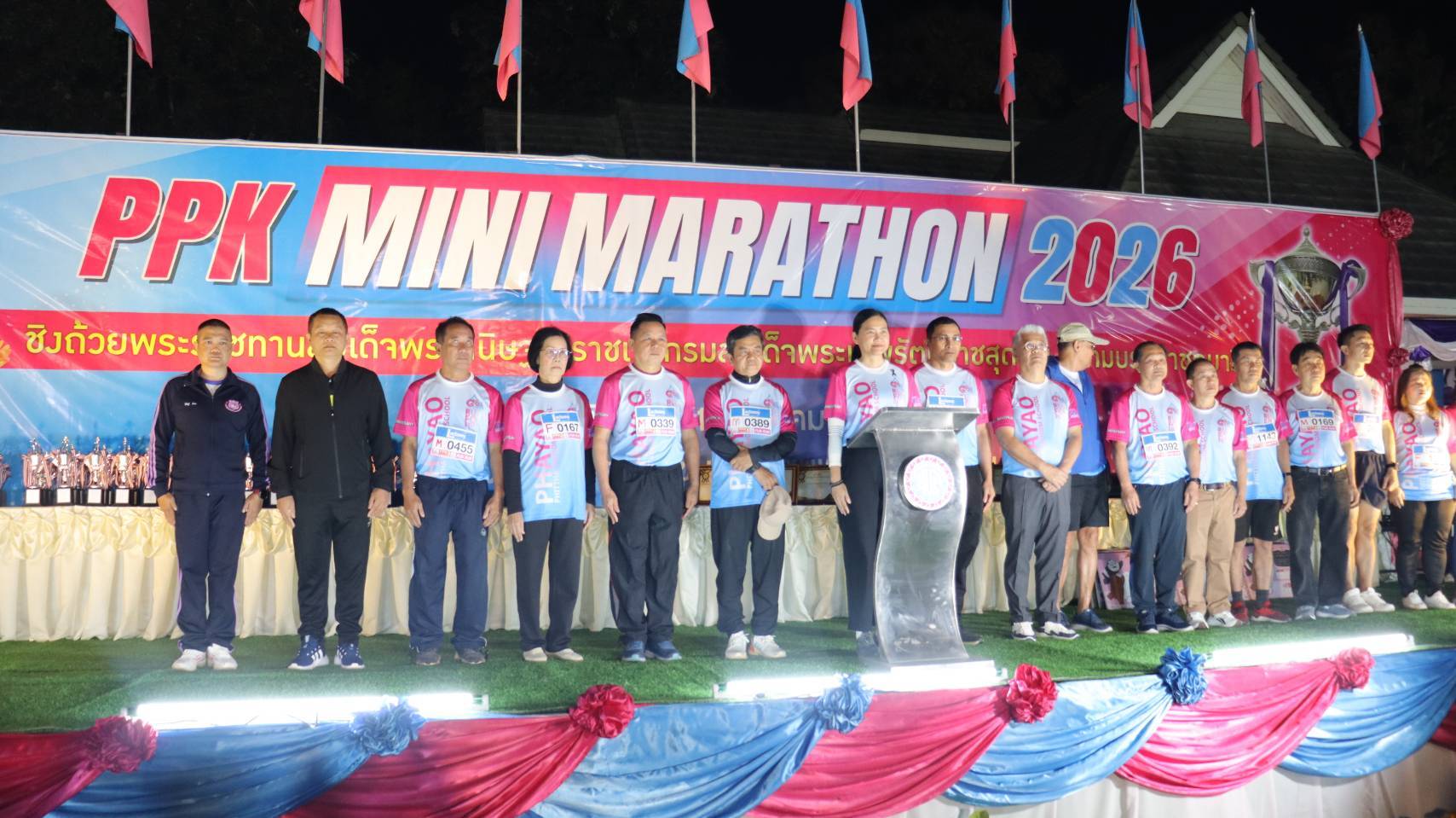 วันอาทิตย์ ที่ 11 ม.ค.69 เวลา 06.00 น. พล.ต.ต.พงษ์สวัสดิ์ ไชยบาล ผบก.ภ.จว.พะเยา มอบหมายให้ พ.ต.อ.สนิท ปทุมทิพย์สิริ ผกก.(สอบสวน) กลุ่มงานสอบสวน ภ.จว.พะเยา เข้าร่วมพิธีเปิดการแข่งขันวิ่งมินิมาราธอนชิงถ้วยรางวัลพระราชทานสมเด็จพระกนิษฐาธิราชเจ้า กรมสมเด็จพระเทพรัตนราชสุดาฯ สยามบรมราชกุมารี การแข่งขันกีฬาวิ่งมินิมาราธอน "๙0 ปี พะเยาพิทยาคม" ณ สนามกีฬามวลชนโรงเรียนพะเยาพิทยาคม จังหวัดพะเยา โดยมี นางสาวอรอาภา โล่ห์วีระ ผู้ว่าราชการจังหวัดพะเยา เป็นประธานในพิธีฯ