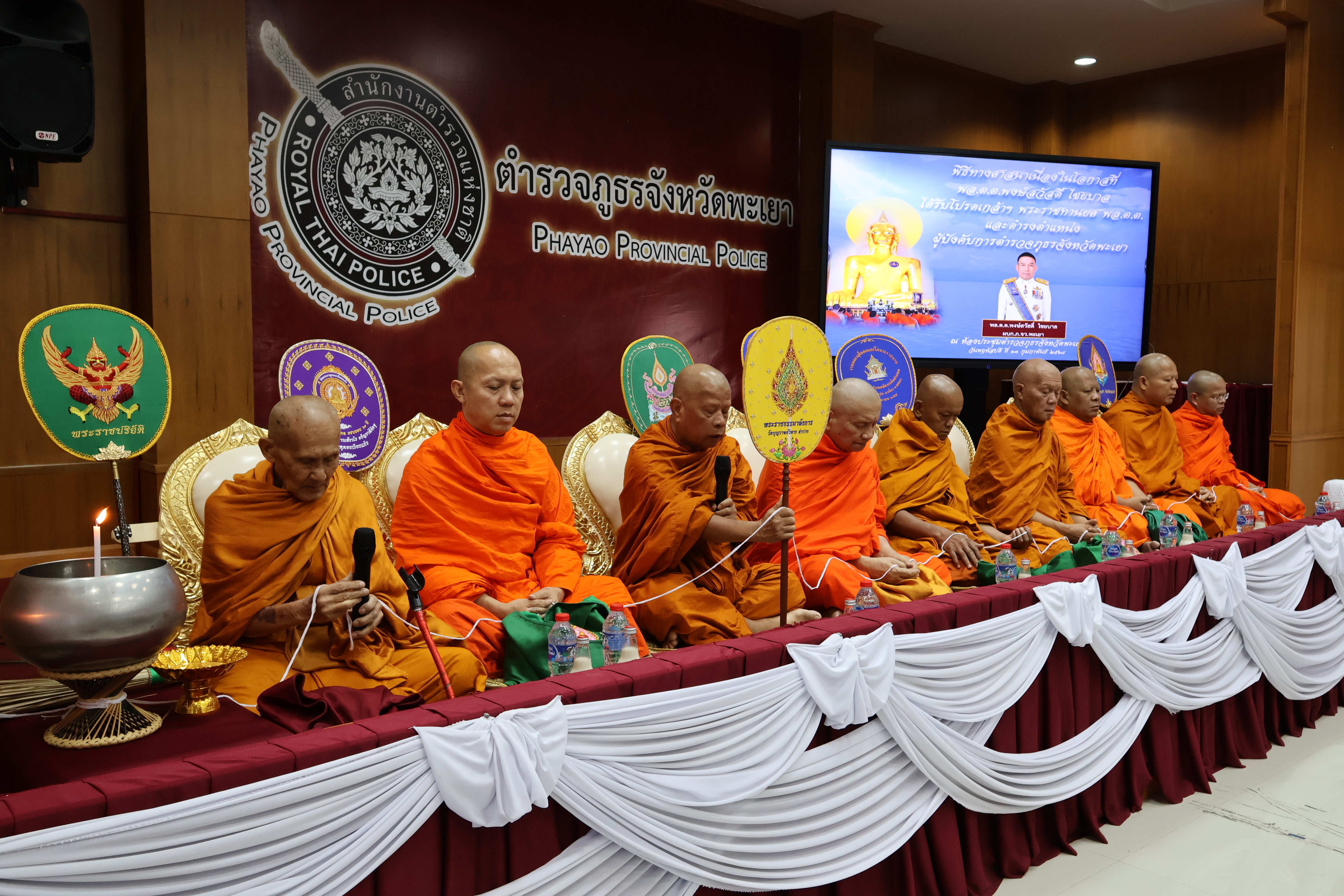 วันพฤหัสบดี ที่ 13 ก.พ.68 เวลา 10.00 น.พล.ต.ต.พงษ์สวัสดิ์ ไชยบาล ผบก.ภ.จว.พะเยา,คุณมลธิชา ไชยบาล ประธานแม่บ้านตำรวจภูธรจังหวัดพะเยาและคณะ พร้อมด้วย พ.ต.อ.พรเทพ น้องการ รอง ผบก.ภ.จว.พะเยา และข้าราชการตำรวจในสังกัด (ผกก.สภ.,ผกก.สส.ภ.จว.พะเยา,ผกก.(สอบสวน) กลุ่มงานสอบสวน ภ.จว.พะเยา,รอง ผกก.ฝอ.ฯ,สว.ฝอ.ฯ,ข้าราชการตำรวจ ฝอ.ฯ,กก.สส.ฯ) เข้าร่วมพิธีทางศาสนา ณ ห้องประชุม ภ.จว.พะเยา