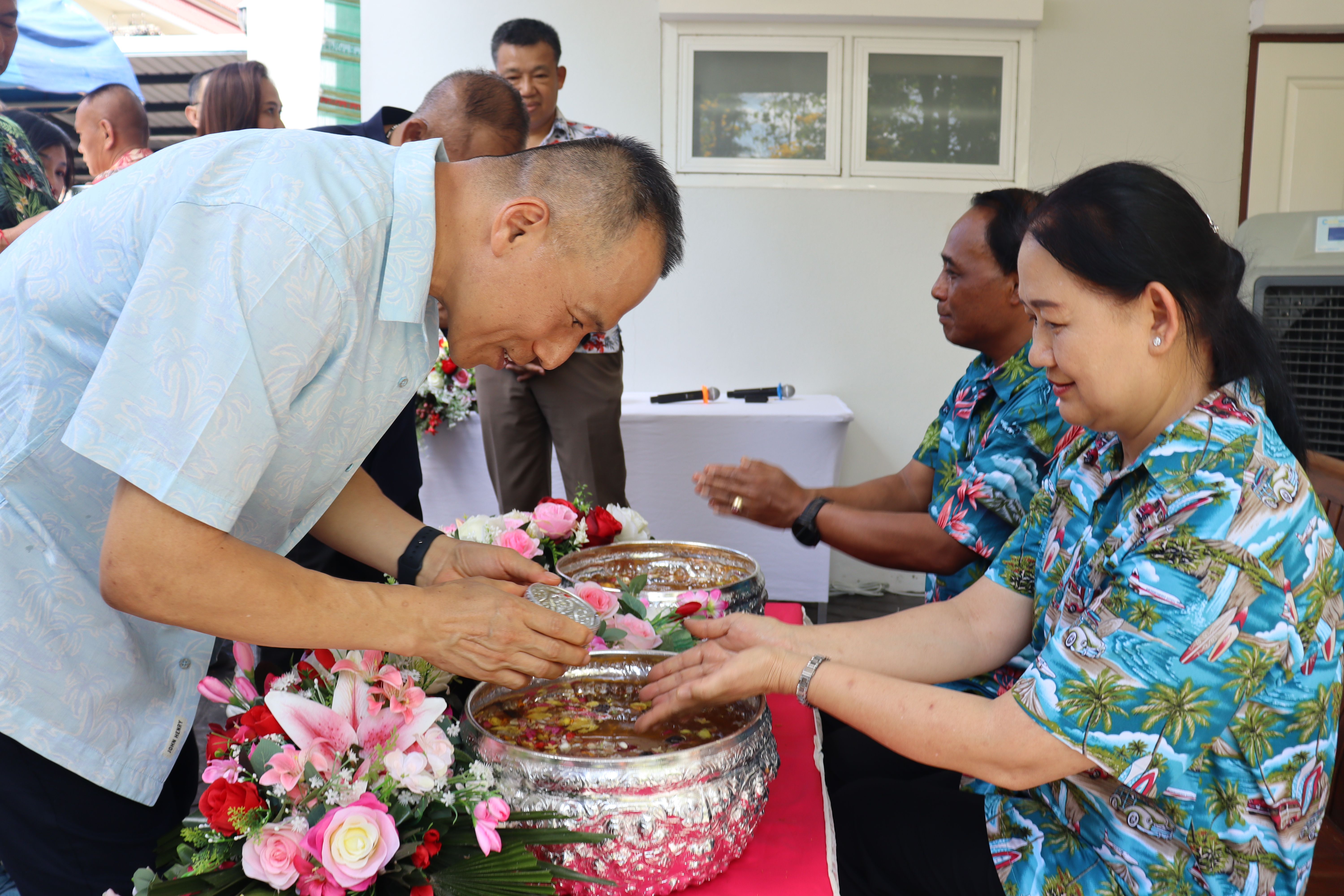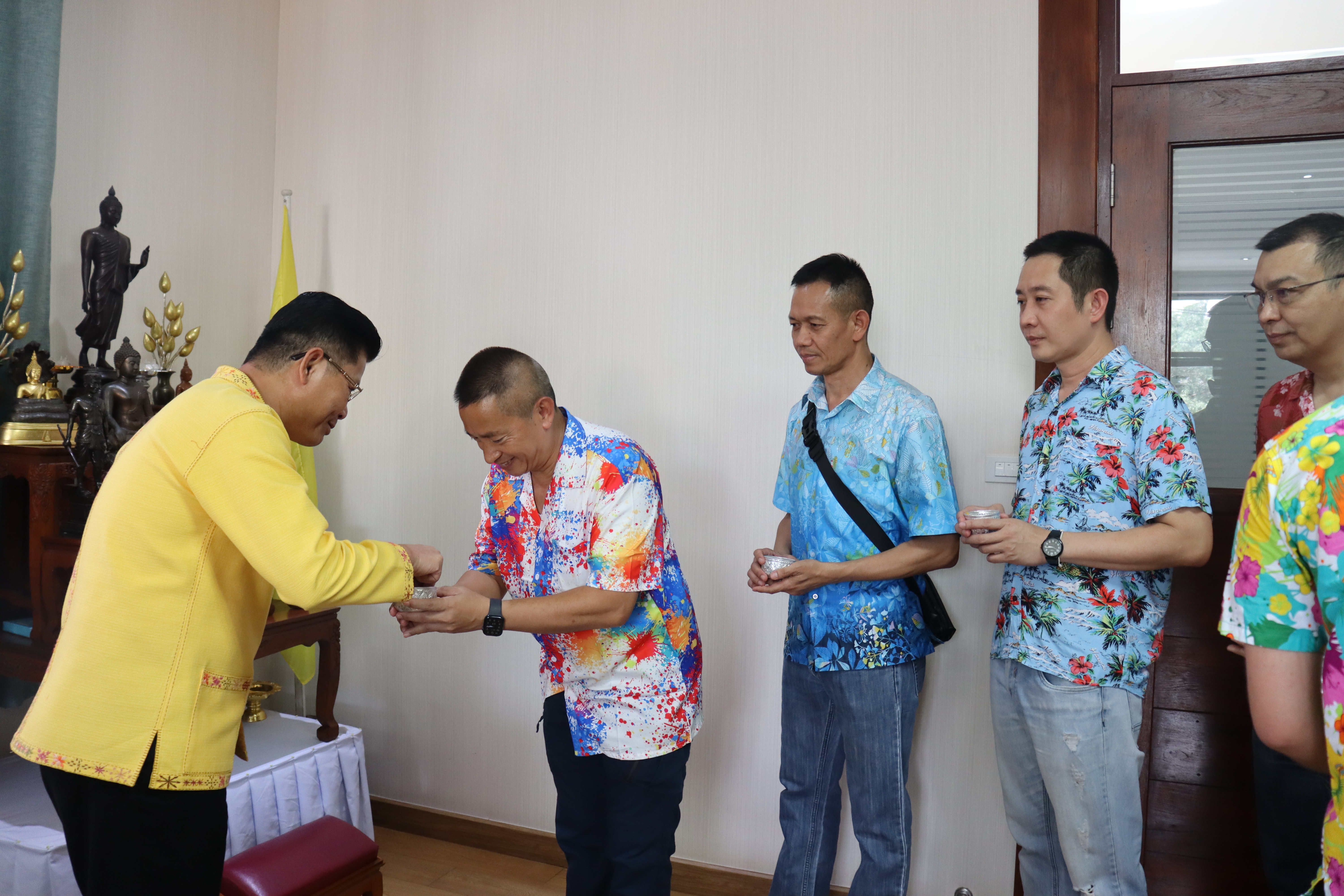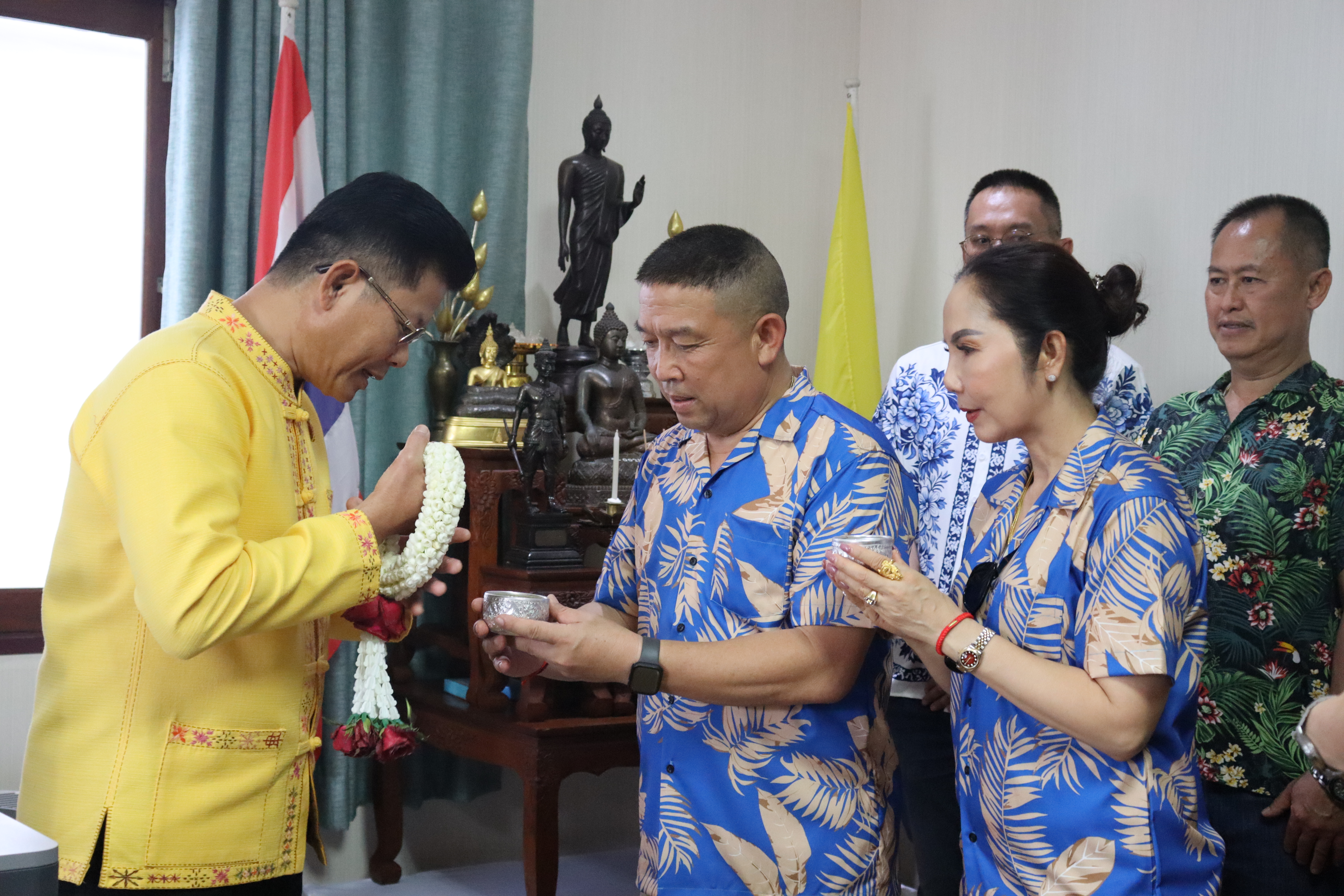 วันพฤหัสบดี ที่ 17 เม.ย.68 เวลา 13.30 น.พล.ต.ต.พงษ์สวัสดิ์ ไชยบาล ผบก.ภ.จว.พะเยา,คุณมลธิชา ไชยบาล ประธานแม่บ้านตำรวจภูธรจังหวัดพะเยา พร้อมด้วย พ.ต.อ.พรเทพ น้องการ รอง ผบก.ภ.จว.พะเยา,พ.ต.อ.จิรภัทร มุ่งดี รอง ผบก.ภ.จว.พะเยา,พ.ต.อ.อัครภูมิ ชนะใหญ่ รอง ผบก.ภ.จว.พะเยา,พ.ต.อ.อภิรักษ์ นักไร่ รอง ผบก.ภ.จว.พะเยา,พ.ต.อ.อานันท์จักร์ กนกนพวัชร์ รอง ผบก.ภ.จว.พะเยา,ผกก.สส.ฯ,ผกก.สภ.ฯ,ผกก.(สอบสวน) กลุ่มงานสอบสวนฯ,ผกก.ฝอ.ฯ พร้อมข้าราชการตำรวจในสังกัด และคณะแม่บ้านตำรวจภูธรจังหวัดพะเยา เข้าร่วมกิจกรรมรดน้ำขอพรนาย รัฐพล นราดิศร ผู้ว่าราชการจังหวัดพะเยา,นายกเหล่ากาชาดจังหวัดพะเยา,รองผู้ว่าราชการจังหวัดพะเยา ณ บริเวณจวนผู้ว่าราชการจังหวัดพะเยา ต่อจากนั้นได้เดินทางไปรดน้ำขอพรจากนายเกรียงศักดิ์ ปานศิลา ผู้พิพากษาหัวหน้าศาลจังหวัดพะเยา ณ ศาลจังหวัดพะเยา