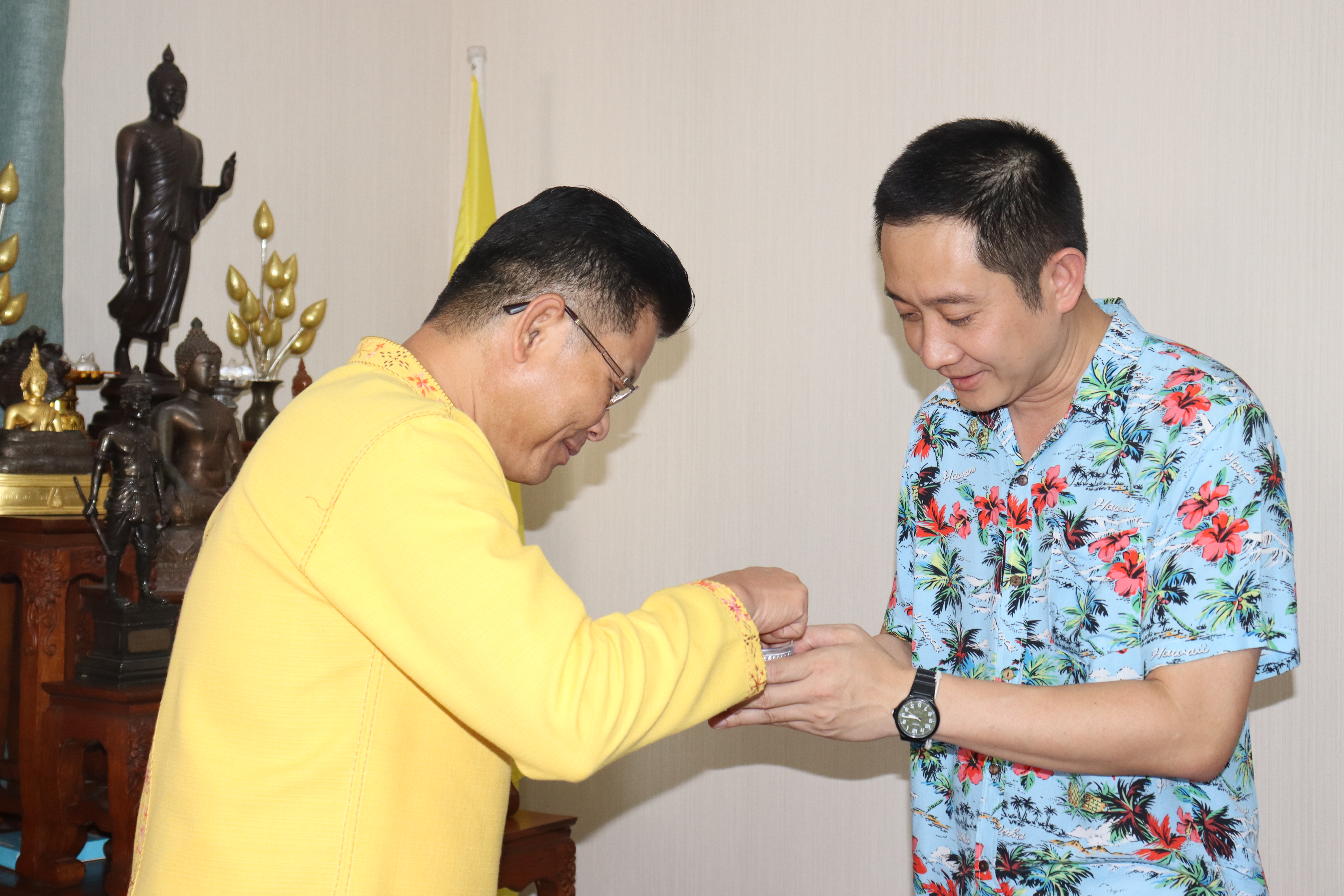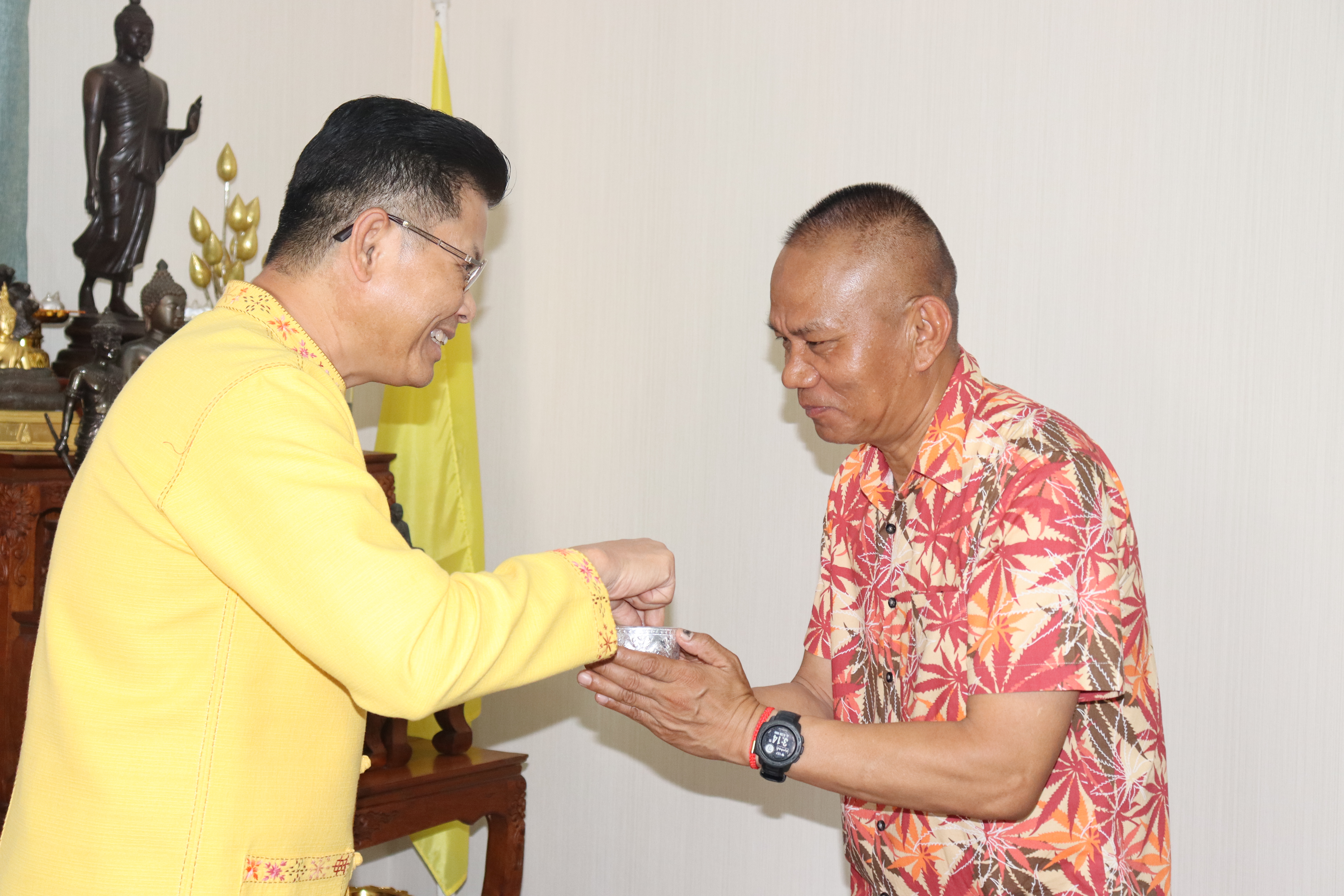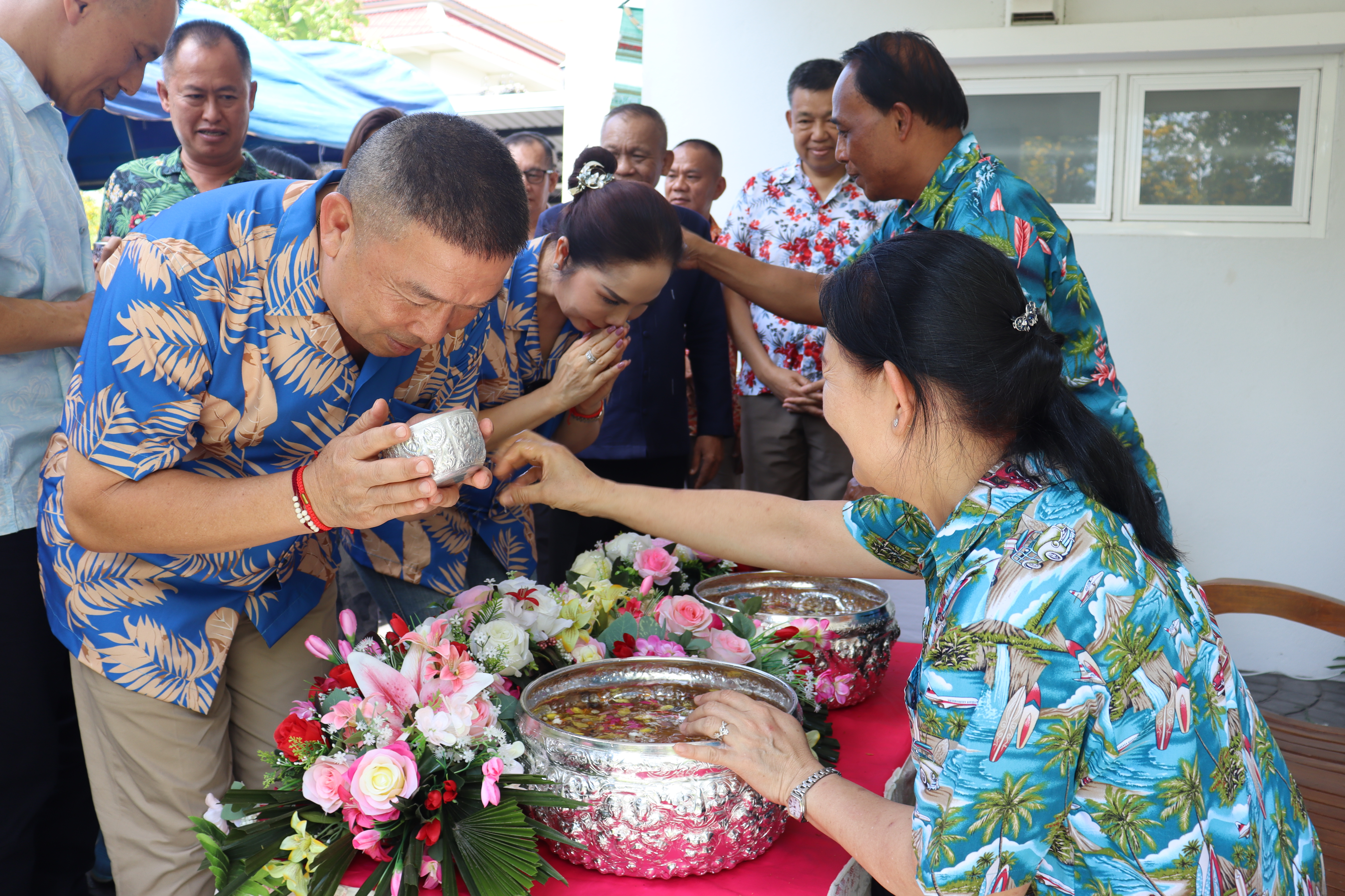 วันพฤหัสบดี ที่ 17 เม.ย.68 เวลา 13.30 น.พล.ต.ต.พงษ์สวัสดิ์ ไชยบาล ผบก.ภ.จว.พะเยา,คุณมลธิชา ไชยบาล ประธานแม่บ้านตำรวจภูธรจังหวัดพะเยา พร้อมด้วย พ.ต.อ.พรเทพ น้องการ รอง ผบก.ภ.จว.พะเยา,พ.ต.อ.จิรภัทร มุ่งดี รอง ผบก.ภ.จว.พะเยา,พ.ต.อ.อัครภูมิ ชนะใหญ่ รอง ผบก.ภ.จว.พะเยา,พ.ต.อ.อภิรักษ์ นักไร่ รอง ผบก.ภ.จว.พะเยา,พ.ต.อ.อานันท์จักร์ กนกนพวัชร์ รอง ผบก.ภ.จว.พะเยา,ผกก.สส.ฯ,ผกก.สภ.ฯ,ผกก.(สอบสวน) กลุ่มงานสอบสวนฯ,ผกก.ฝอ.ฯ พร้อมข้าราชการตำรวจในสังกัด และคณะแม่บ้านตำรวจภูธรจังหวัดพะเยา เข้าร่วมกิจกรรมรดน้ำขอพรนาย รัฐพล นราดิศร ผู้ว่าราชการจังหวัดพะเยา,นายกเหล่ากาชาดจังหวัดพะเยา,รองผู้ว่าราชการจังหวัดพะเยา ณ บริเวณจวนผู้ว่าราชการจังหวัดพะเยา ต่อจากนั้นได้เดินทางไปรดน้ำขอพรจากนายเกรียงศักดิ์ ปานศิลา ผู้พิพากษาหัวหน้าศาลจังหวัดพะเยา ณ ศาลจังหวัดพะเยา