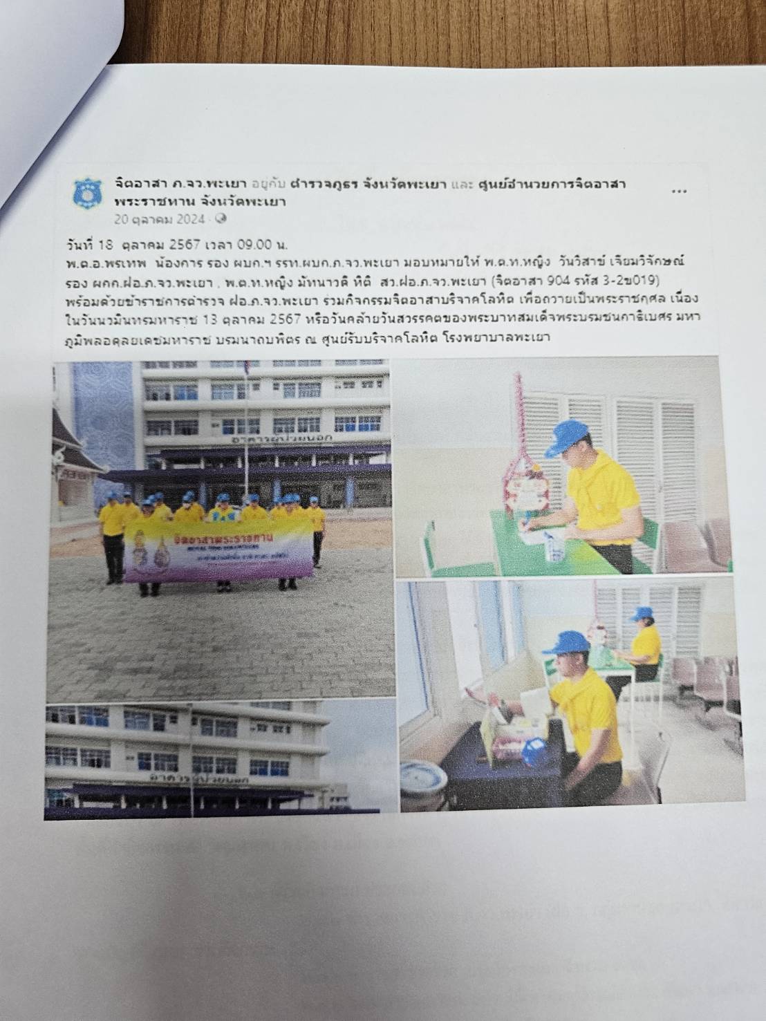 พ.ต.อ.พรเทพ น้องการ รอง ผบก.ฯ รรท.ผบก.ภ.จว.พะเยา มอบหมายให้ พ.ต.ท.หญิง วันวิสาข์ เจียมวิจักษณ์ รอง ผกก.ฝอ.ภ.จว.พะเยา , พ.ต.ท.หญิง มัทนาวดี หิติ สว.ฝอ.ภ.จว.พะเยา (จิตอาสา 904 รหัส 3-2ข019)