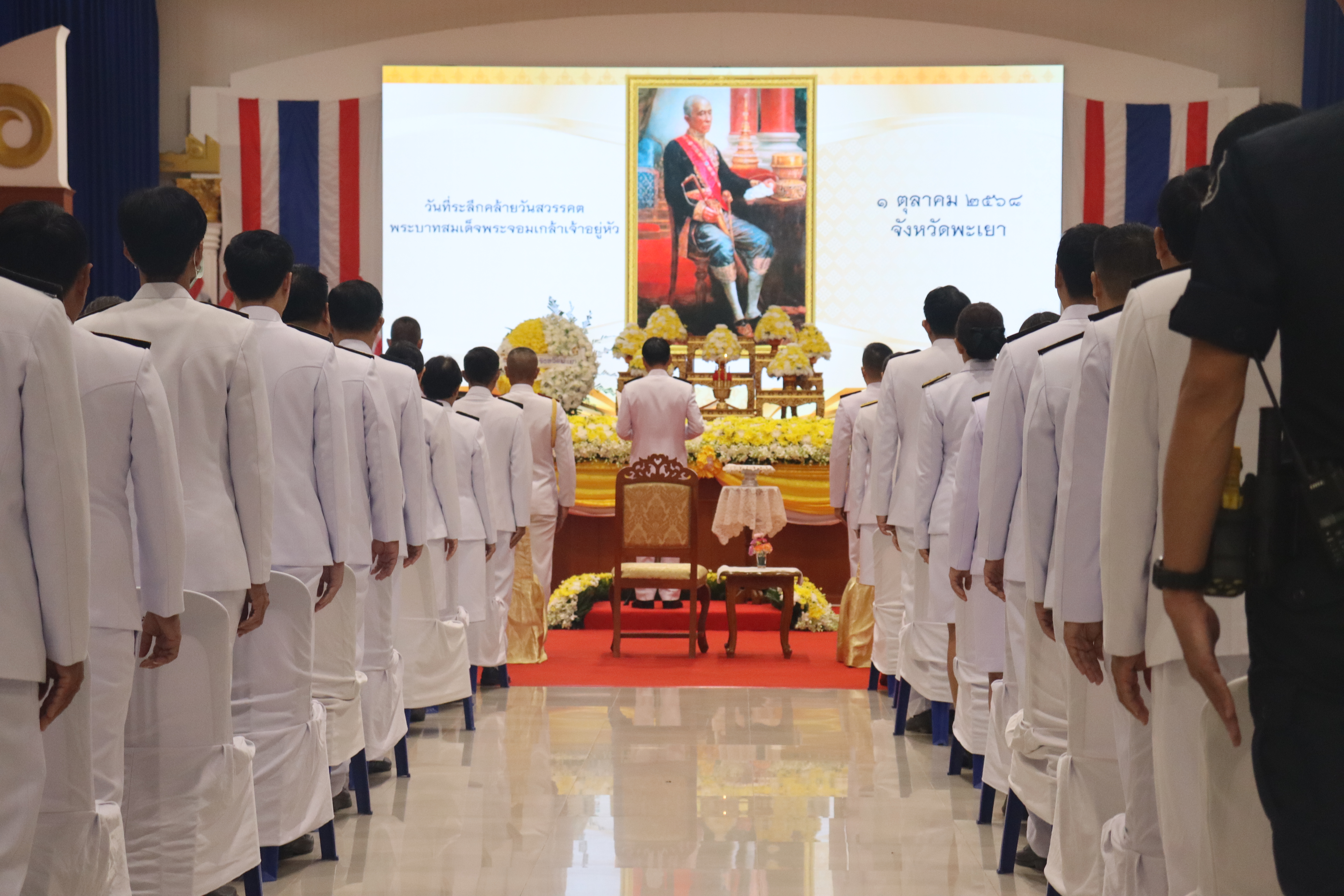 วันพุธ ที่ 1 ต.ค.68 เวลา 09.00 น. พล.ต.ต.พงษ์สวัสดิ์ ไชยบาล ผบก.ภ.จว.พะเยา มอบหมายให้ พ.ต.อ.อานันท์จักร์ กนกนพวัชร์ รอง ผบก.ภ.จว.พะเยา พร้อมด้วย พ.ต.ท.หญิง ศรีรุ้ง สุขสวัสดิ์ รอง ผกก.ฝอ.ภ.จว.พะเยา และข้าราชการตำรวจในสังกัด เข้าร่วมพิธีวันที่ระลึกพระบาทสมเด็จพระจอมเกล้าเจ้าอยู่หัว ณ ศาลาประชาคมจังหวัดพะเยา อ.เมืองพะเยา โดยมี นายภูธนะ ชมภูมิ่ง รองผู้ว่าราชการจังหวัดพะเยา เป็นประธานในพิธีฯ