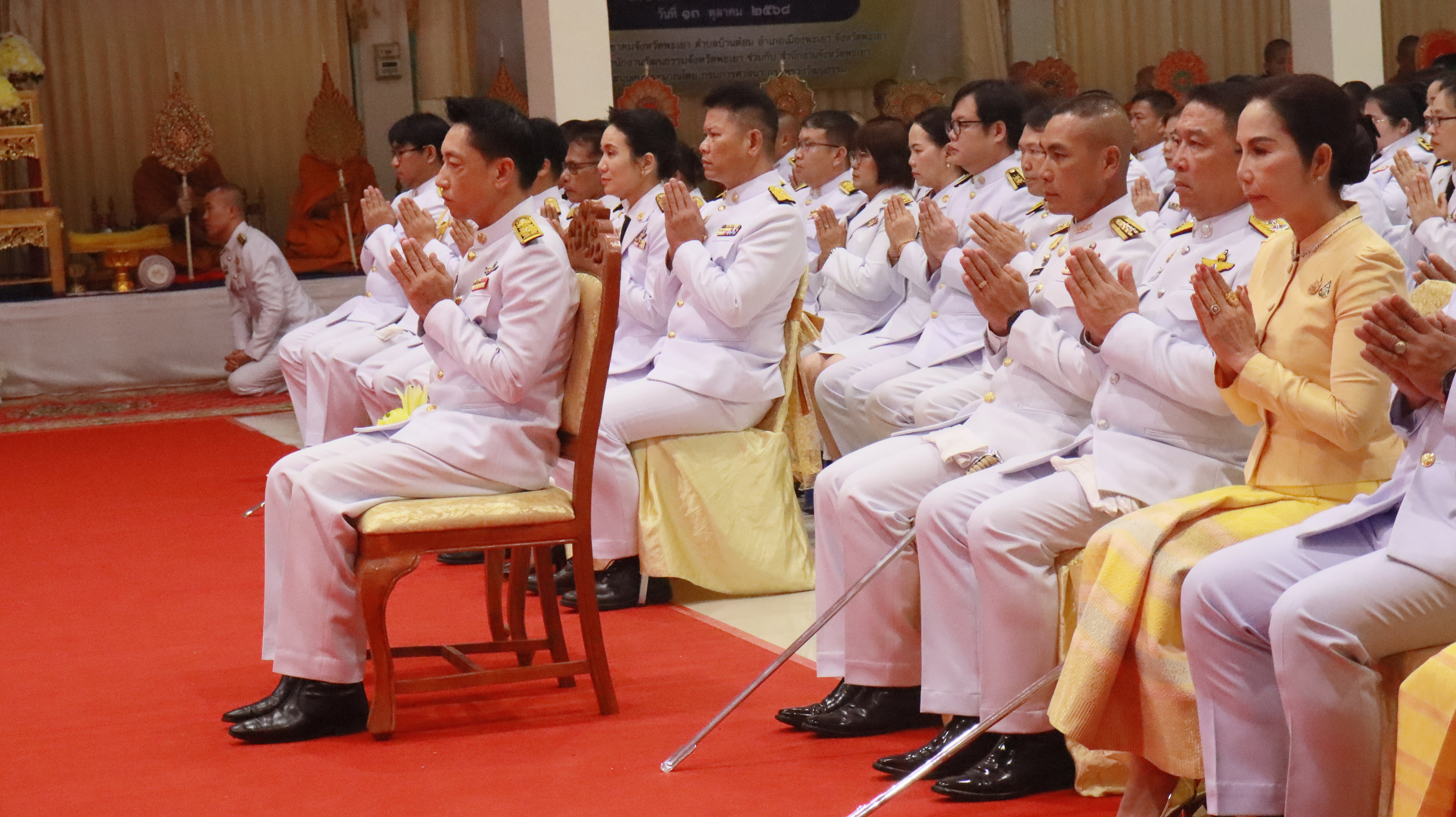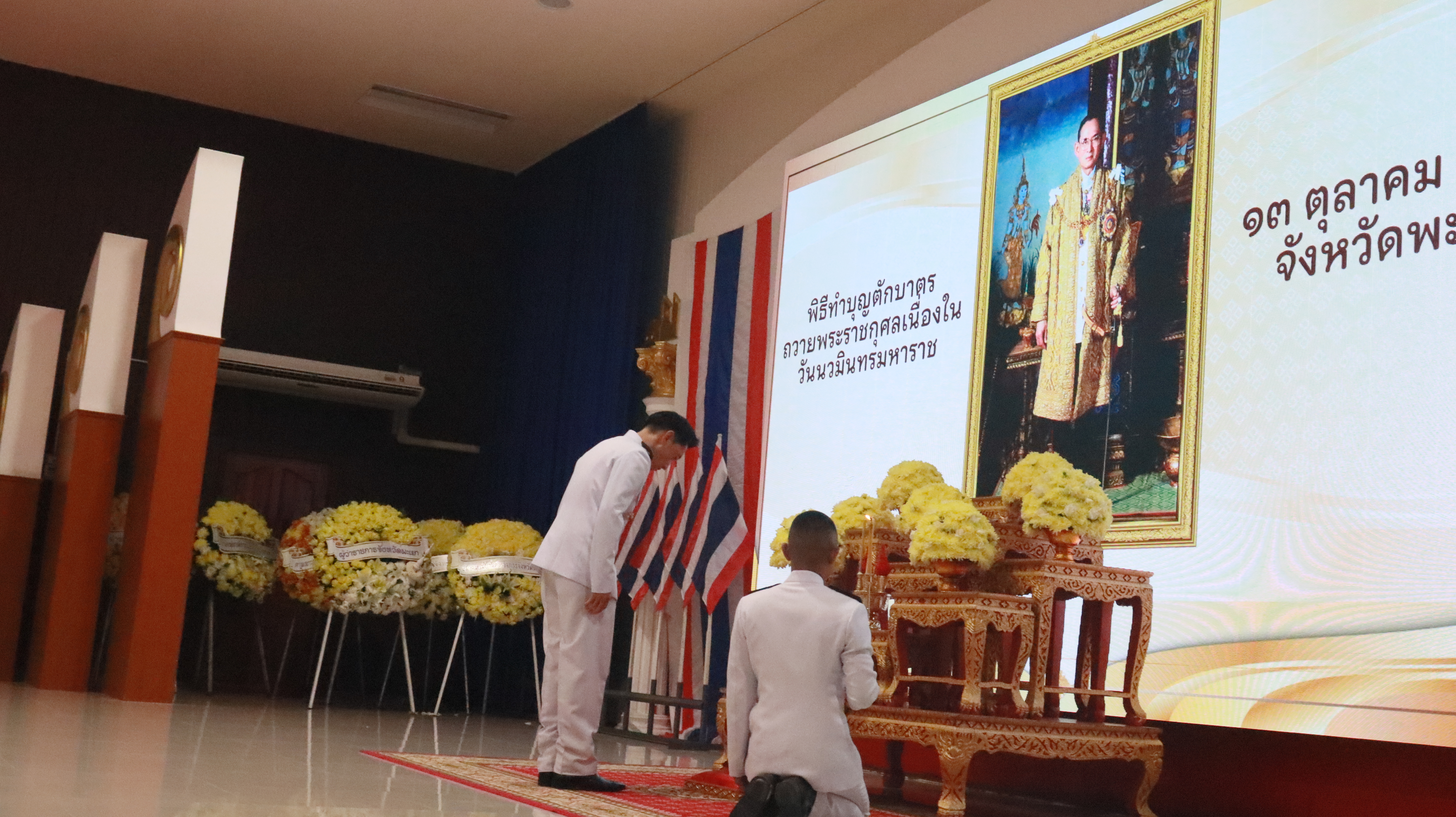วันจันทร์ ที่ 13 ต.ค.68 เวลา 07.00 น. พล.ต.ต.พงษ์สวัสดิ์ ไขยบาล ผบก.ภ.จว.พะเยา,คุณมลธิชา ไชยบาล ประธานแม่บ้านตำรวจภูธรจังหวัดพะเยา,พ.ต.ท.หญิง วันวิสาข์ เจียมวิจักษณ์ รอง ผกก.ฝอ.ฯ ช่วยราชการ ภ.จว.พะเยา และข้าราชการตำรวจในสังกัด ร่วมพิธีทำบุญตักบาตรถวายพระราชกุศลและพิธีวางพวงมาลา เนื่องในวันนวมินทรมหาราช ณ ศาลาประชาคมจังหวัดพะเยา อ.เมืองพะเยา จว.พะเยา โดยมี นายภูธนะ ชมภูมิ่ง รองผู้ว่าราชการจังหวัดพะเยา รักษาราชการแทนผู้ว่าราชการจังหวัดพะเยา เป็นประธานในพิธีฯ