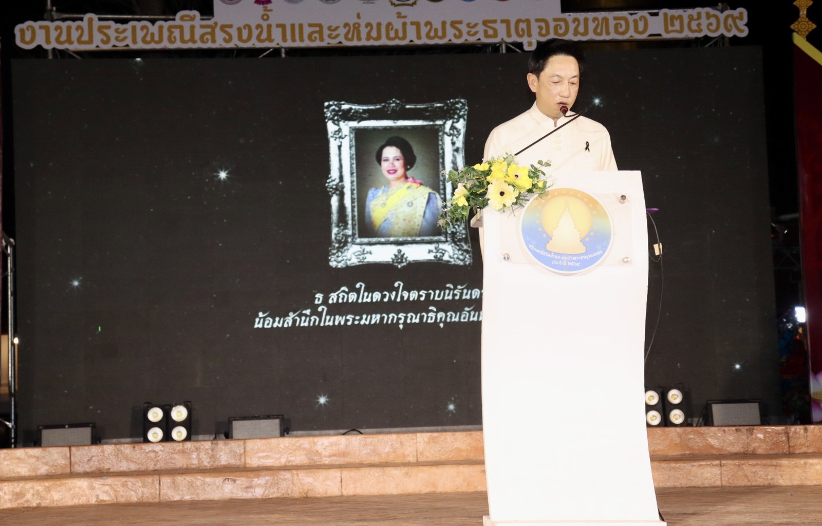 วันอาทิตย์ ที่ 1 มี.ค.69 เวลา 18.45 น. พล.ต.ต.พงษ์สวัสดิ์ ไชยบาล ผบก.ภ.จว.พะเยา มอบหมายให้ พ.ต.อ.บัญชา อินถา รอง ผบก.ภ.จว.พะเยา ร่วมพิธีเปิดโครงการ "ส่งเสริมการท่องเที่ยวเทศกาล ประเพณี วัฒนธรรมและชาติพันธ์จังหวัดพะเยา" กิจกรรมประเพณีสรงน้ำและห่มผ้าพระธาตุจอมทอง ณ โบราณสถานพระธาตุจอมทอง วัดศรีโคมคำ พระอารามหลวง อ.เมืองพะเยา จว.พะเยา โดยมี นายภูธนะ ชมภูมิ่ง รองผู้ว่าราชการจังหวัดพะเยา เป็นประธานในพิธีฯ