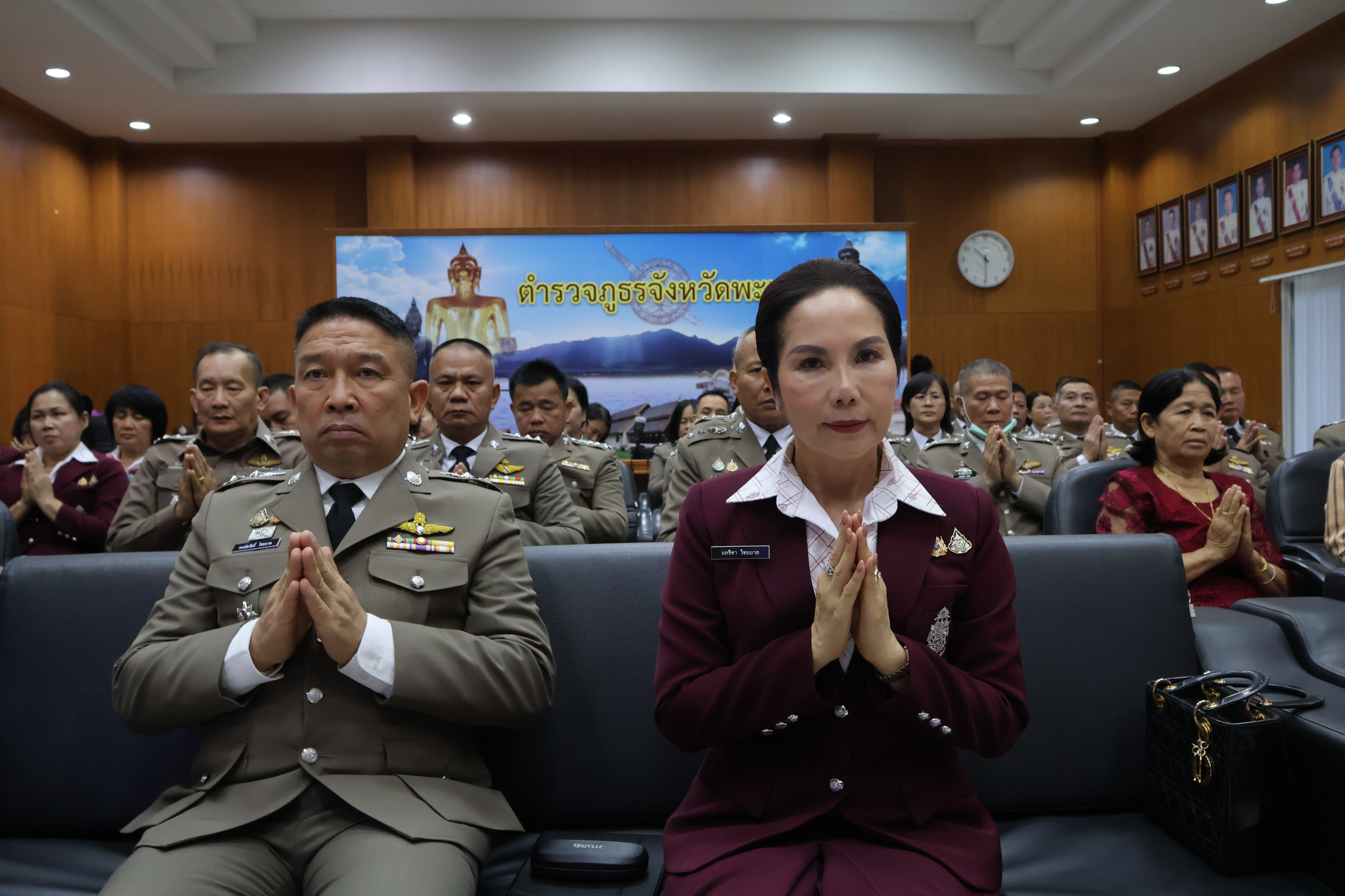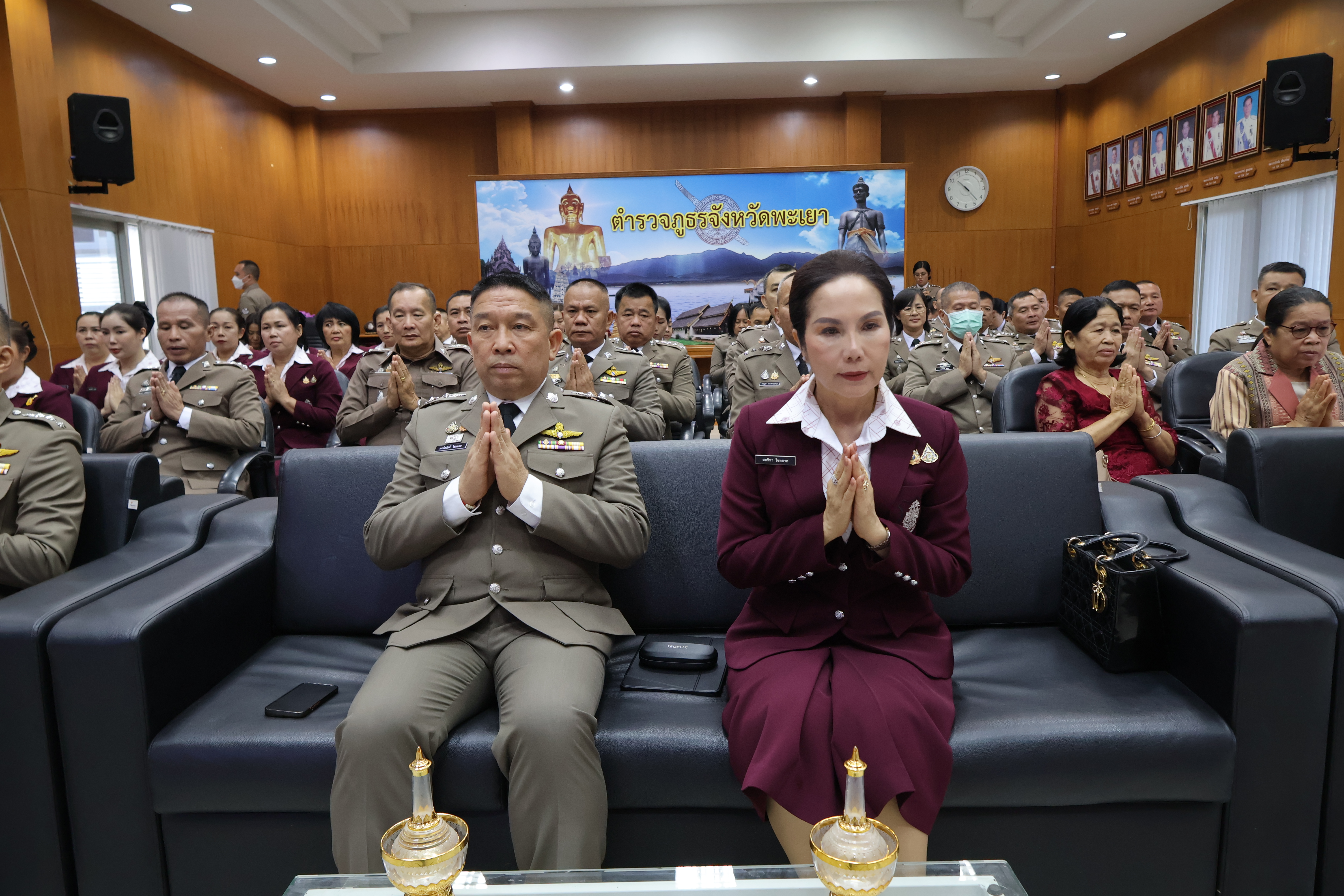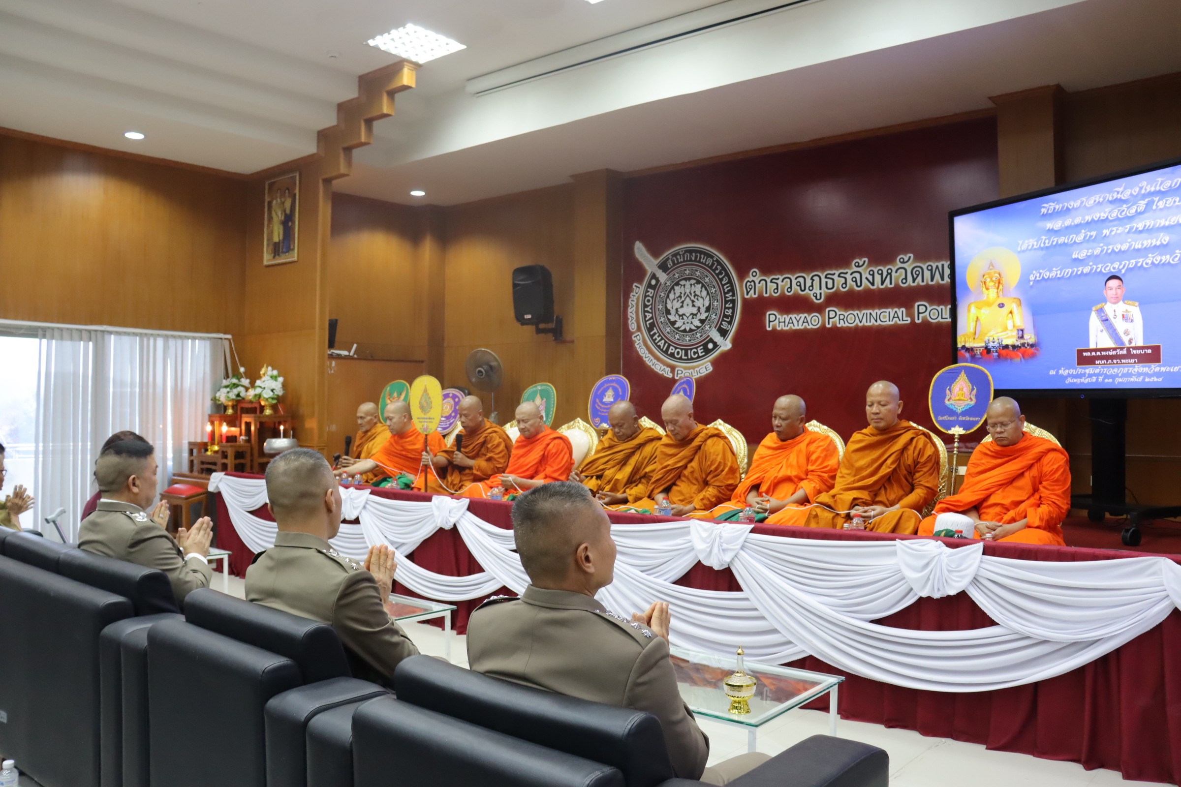 วันพฤหัสบดี ที่ 13 ก.พ.68 เวลา 10.00 น.พล.ต.ต.พงษ์สวัสดิ์ ไชยบาล ผบก.ภ.จว.พะเยา,คุณมลธิชา ไชยบาล ประธานแม่บ้านตำรวจภูธรจังหวัดพะเยาและคณะ พร้อมด้วย พ.ต.อ.พรเทพ น้องการ รอง ผบก.ภ.จว.พะเยา และข้าราชการตำรวจในสังกัด (ผกก.สภ.,ผกก.สส.ภ.จว.พะเยา,ผกก.(สอบสวน) กลุ่มงานสอบสวน ภ.จว.พะเยา,รอง ผกก.ฝอ.ฯ,สว.ฝอ.ฯ,ข้าราชการตำรวจ ฝอ.ฯ,กก.สส.ฯ) เข้าร่วมพิธีทางศาสนา ณ ห้องประชุม ภ.จว.พะเยา