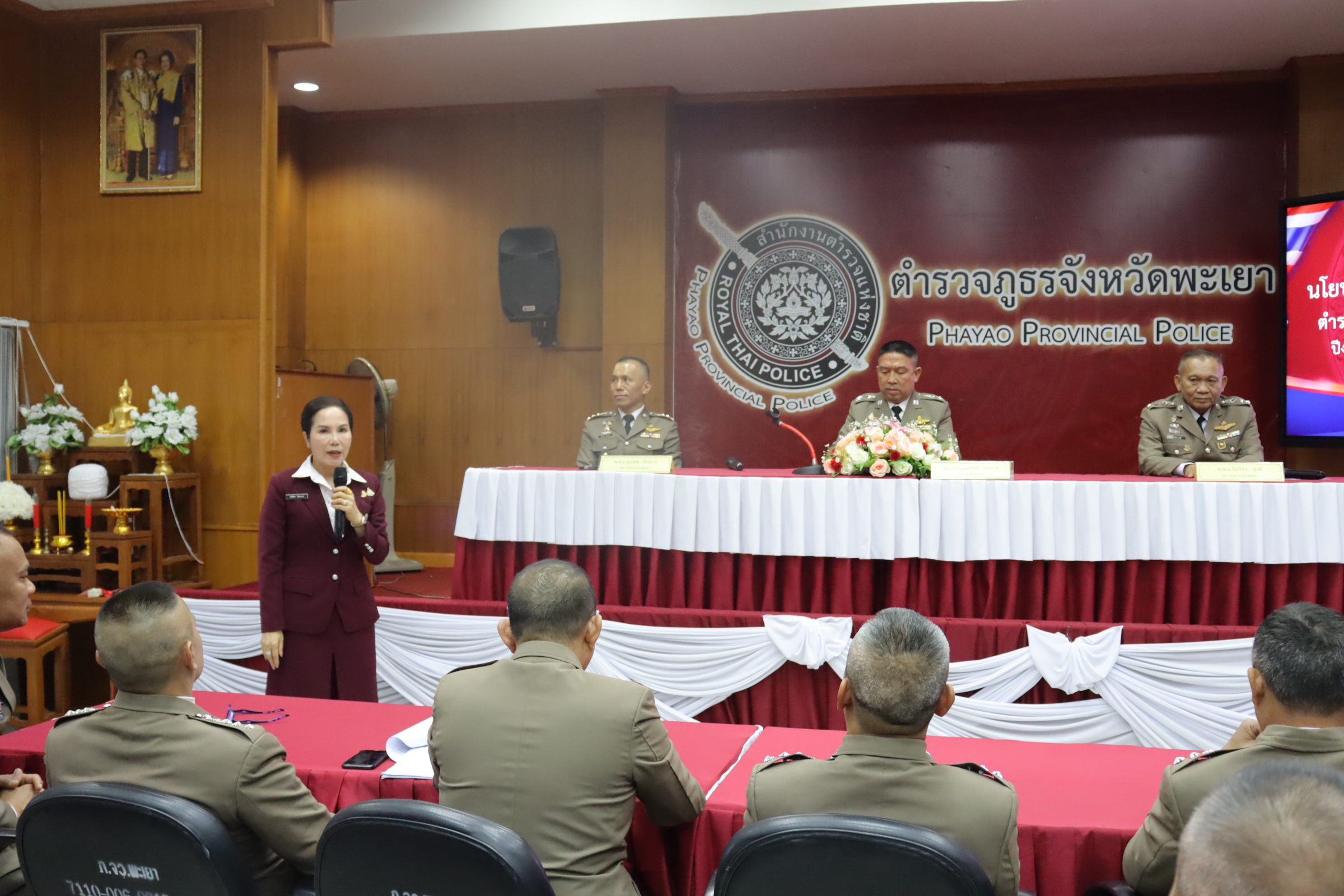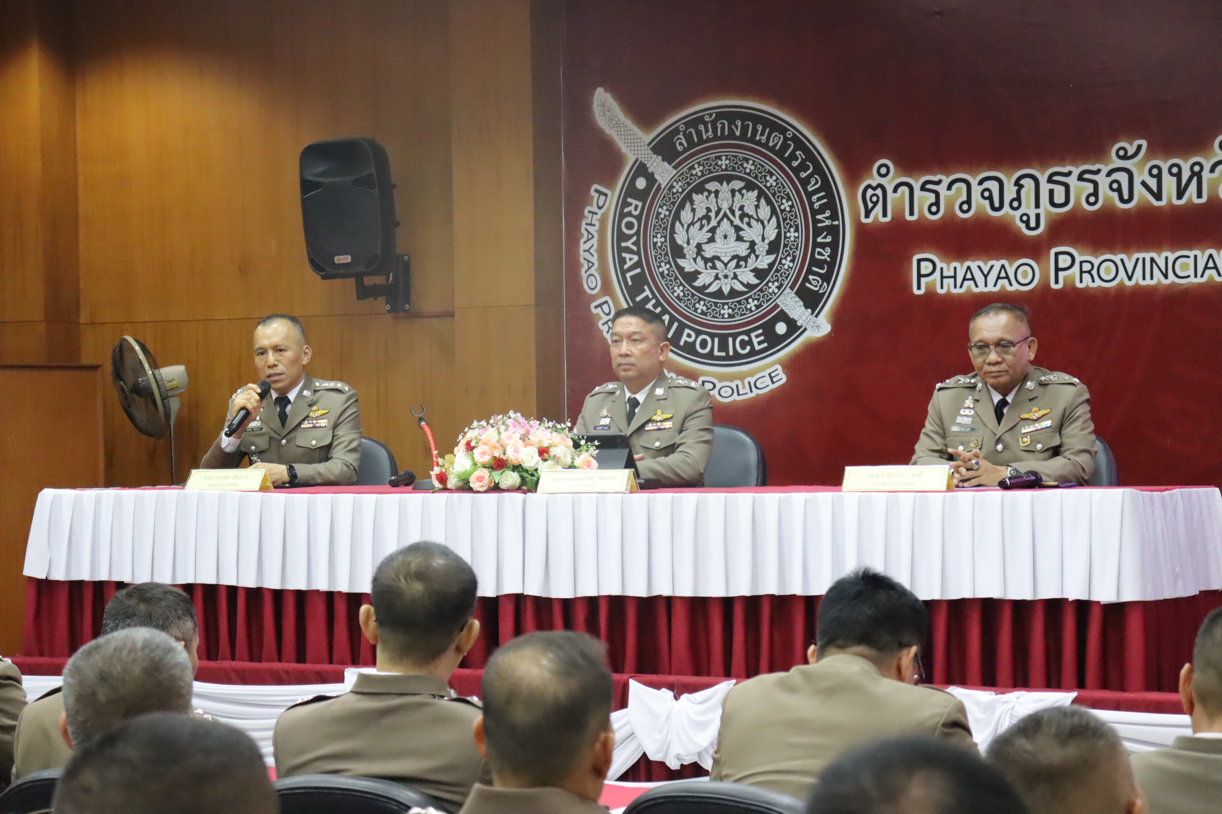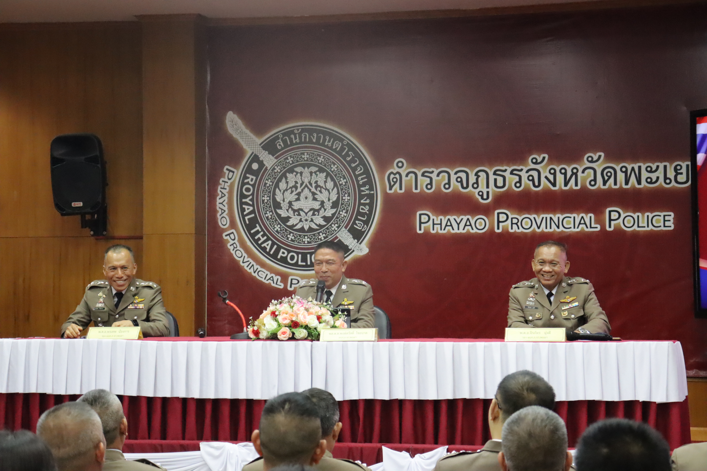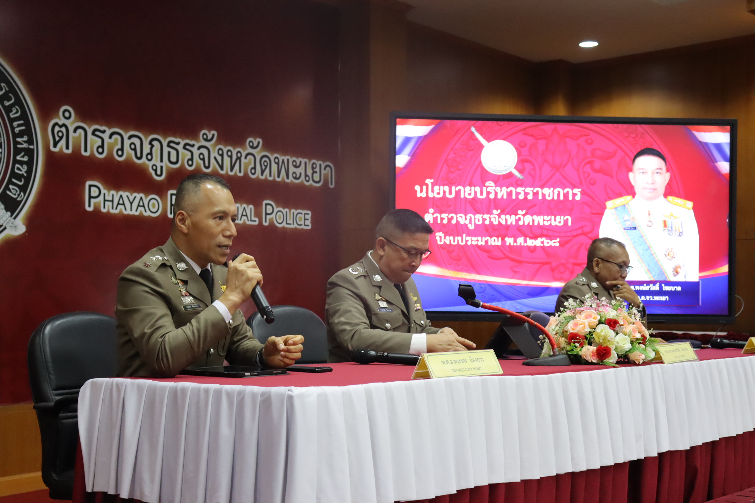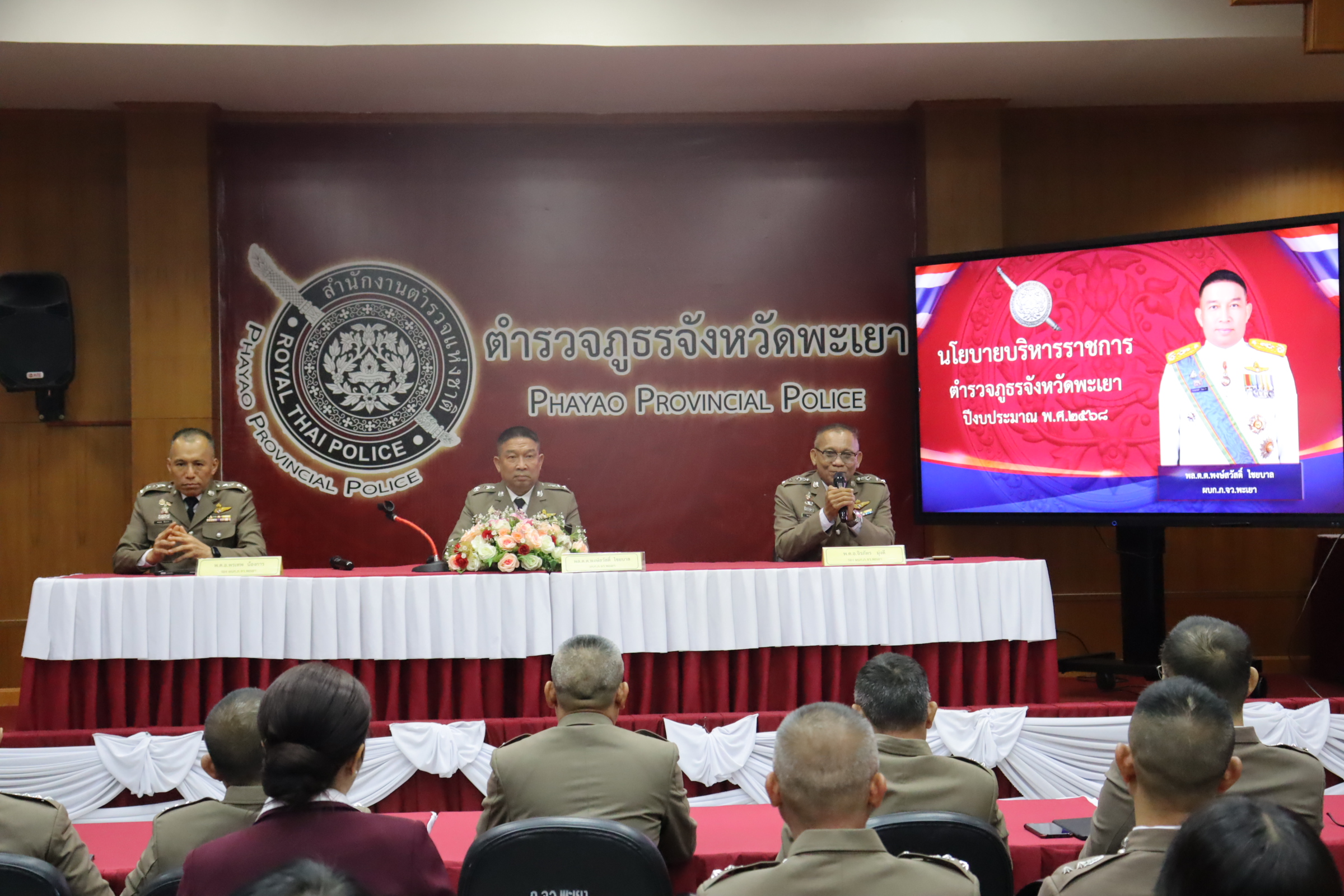 วันพฤหัสบดี ที่ 13 ก.พ.68 เวลา 11.00 น.พล.ต.ต.พงษ์สวัสดิ์ ไชยบาล ผบก.ภ.จว.พะเยา มอบนโยบายการปฏิบัติราชการประจำปี 2568 ให้แก่ ข้าราชกวันพฤหัสบดีารตำรวจในสังกัด ณ ห้องประชุม ภ.จว.พะเยา โดยมี พ.ต.อ.พรเทพ น้องการ รอง ผบก.ภ.จว.พะเยา,พ.ต.อ.จิรภัทร มุ่งดี รอง ผบก.ภ.จว.พะเยา และข้าราชการตำรวจในสังกัด (ผกก.สภ.,ผกก.สส.จว.พะเยา,ผกก.(สอบสวน) กลุ่มงานสอบสวน ภ.จว.พะเยา,รอง ผกก.ฝอ.ฯ,สว.ฝอ.ฯ,ข้าราชการตำรวจ ฝอ.ฯ,กก.สส.ฯ) พร้อมด้วย คุณมลธิชา ไชยบาล ประธานชมรมแม่บ้านตำรวจภูธรจังหวัดพะเยา และคณะ ร่วมรับฟังนโยบายดังกล่าว ต่อจากนั้น พ.ต.อ.พรเทพ น้องการ รอง ผบก.ภ.จว.พะเยา และ พ.ต.อ.จิรภัทร มุ่งดี รอง ผบก.ภ.จว.พะเยา ได้มอบนโยบายการปฏิบัติราชการด้านงานบริหารและงานสืบสวน ตามลำดับ