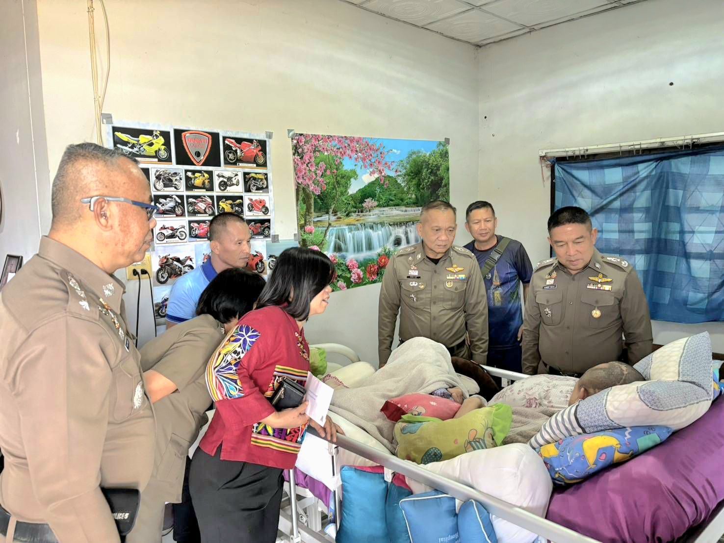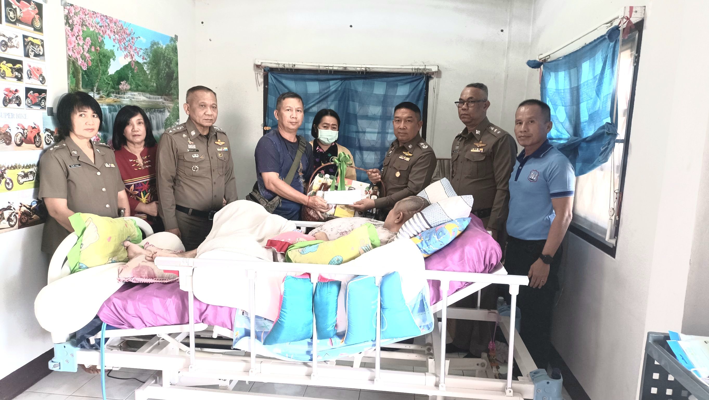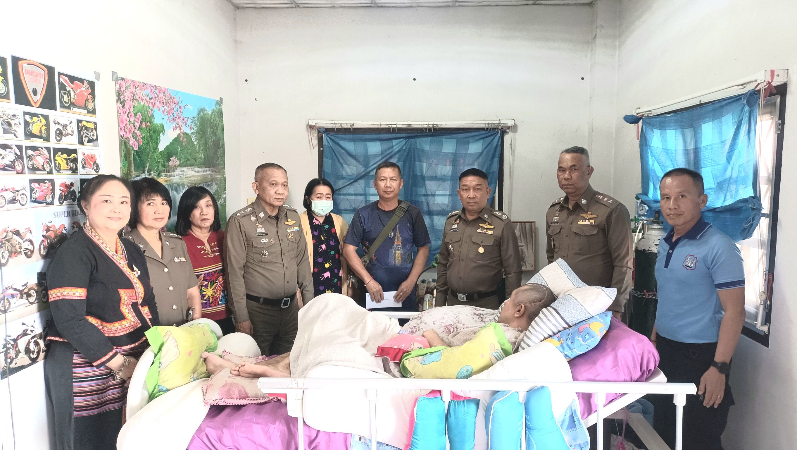 วันศุกร์ ที่ 14 ก.พ.68 เวลา 11.30 น.พล.ต.ต.พงษ์สวัสดิ์ ไชยบาล ผบก.ภ.จว.พะเยา พร้อมด้วย พ.ต.อ.จิรภัทร มุ่งดี รอง ผบก.ภ.จว.พะเยา,พ.ต.อ.กฤษณะ พลนาค ผกก.ฝอ.ภ.จว.พะเยา,พ.ต.อ.อารินทร์ เทพพรมวงศ์ ผกก.(สอบสวน) กลุ่มงานสอบสวน ภ.จว.พะเยา และข้าราชการตำรวจ ฝอ.ภ.จว.พะเยา ได้เดินทางไปเยี่ยม จ.ส.ต.ณัฐนัย อาระยะกุล ผบ.หมู่ (ป.) สภ.แม่กา ที่ได้รับบาดเจ็บจากการปฏิบัติหน้าที่ราชการ ณ บ้านพักอาศัยที่ ต.แม่ต๋ำ อ.เมืองพะเยา และได้มอบเงินพร้อมกระเช้าของขวัญ เพื่อเป็นขวัญและกำลังใจแก่ จ.ส.ต.ณัฐนัย อาระยะกุล และครอบครัว