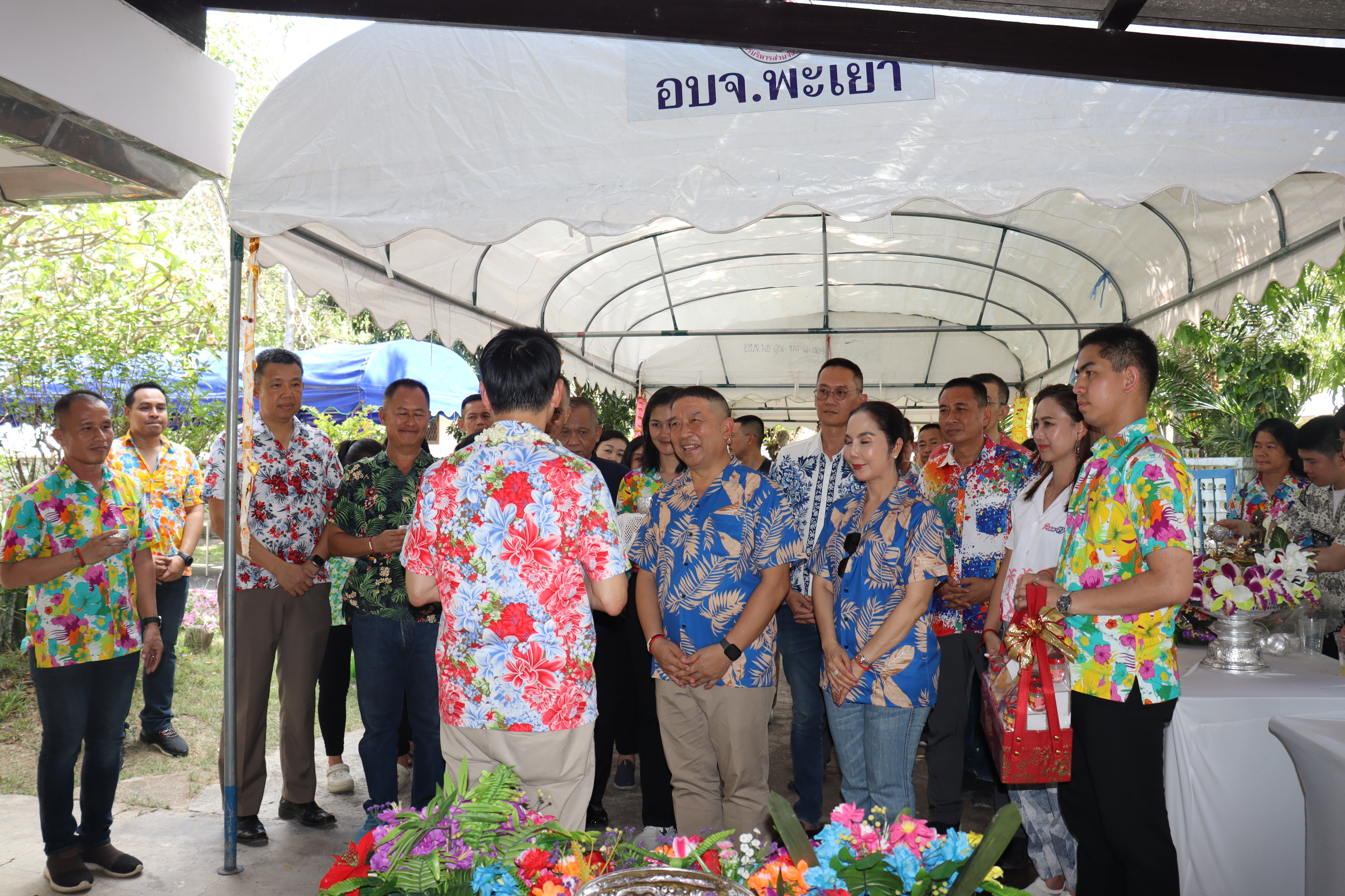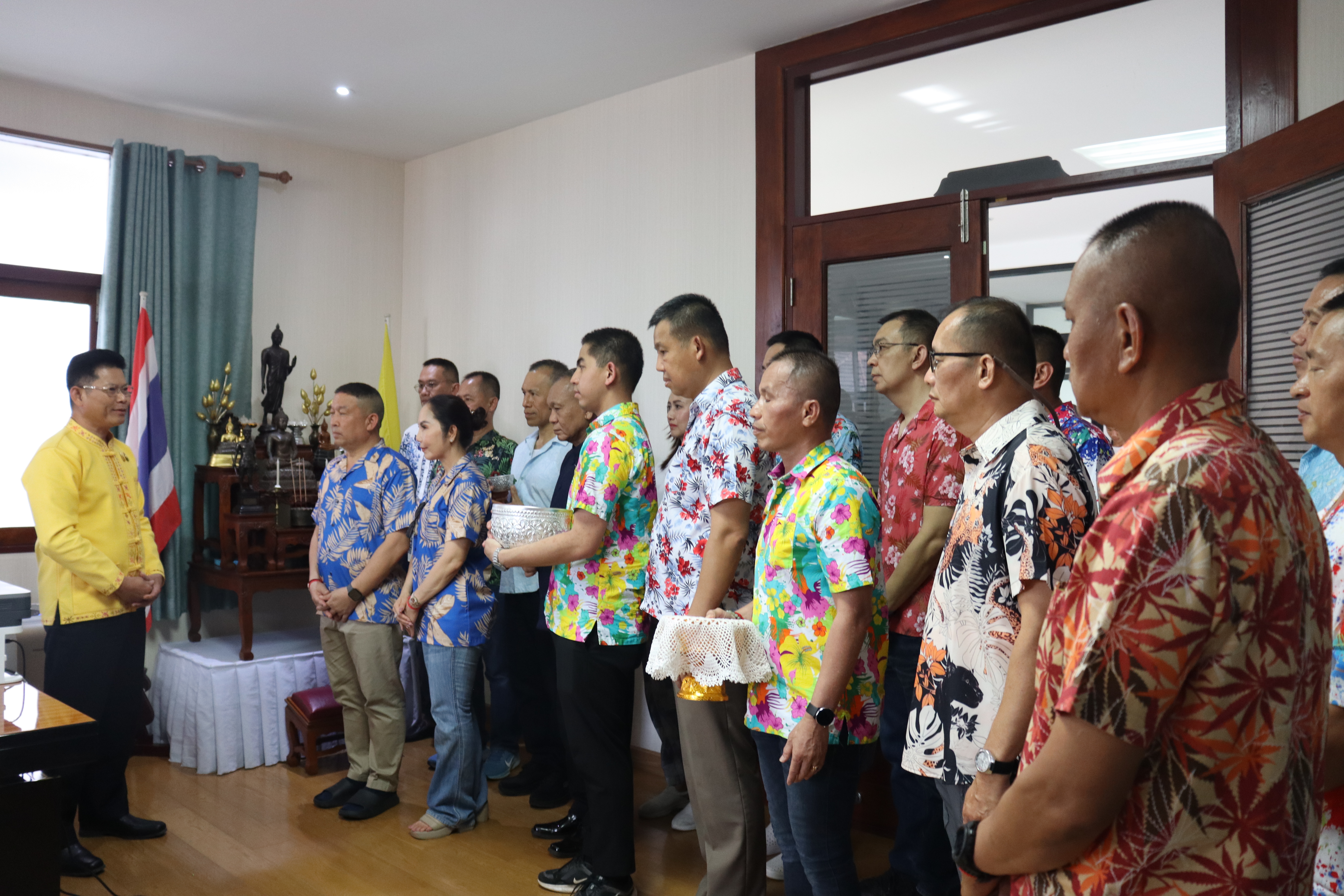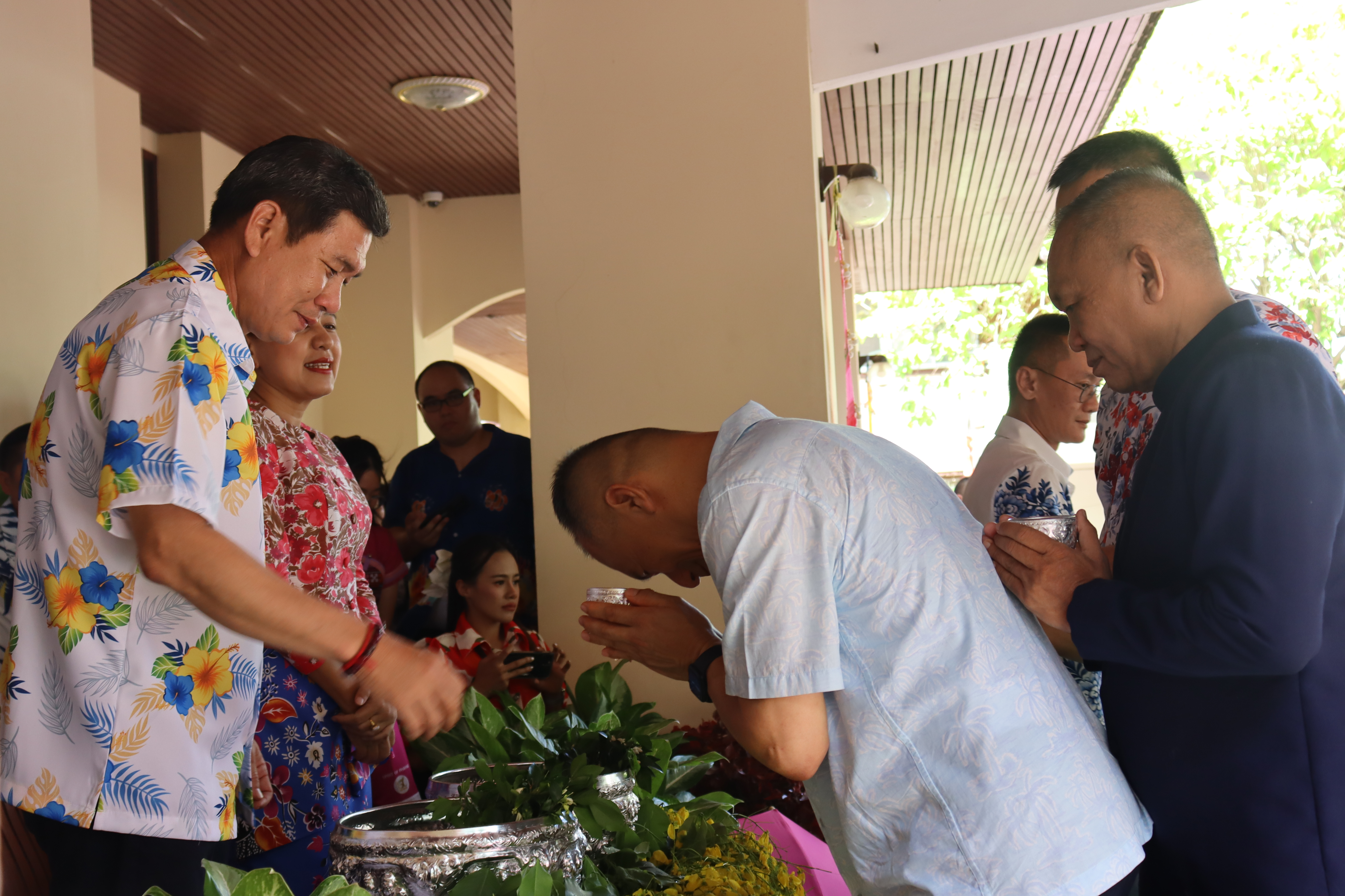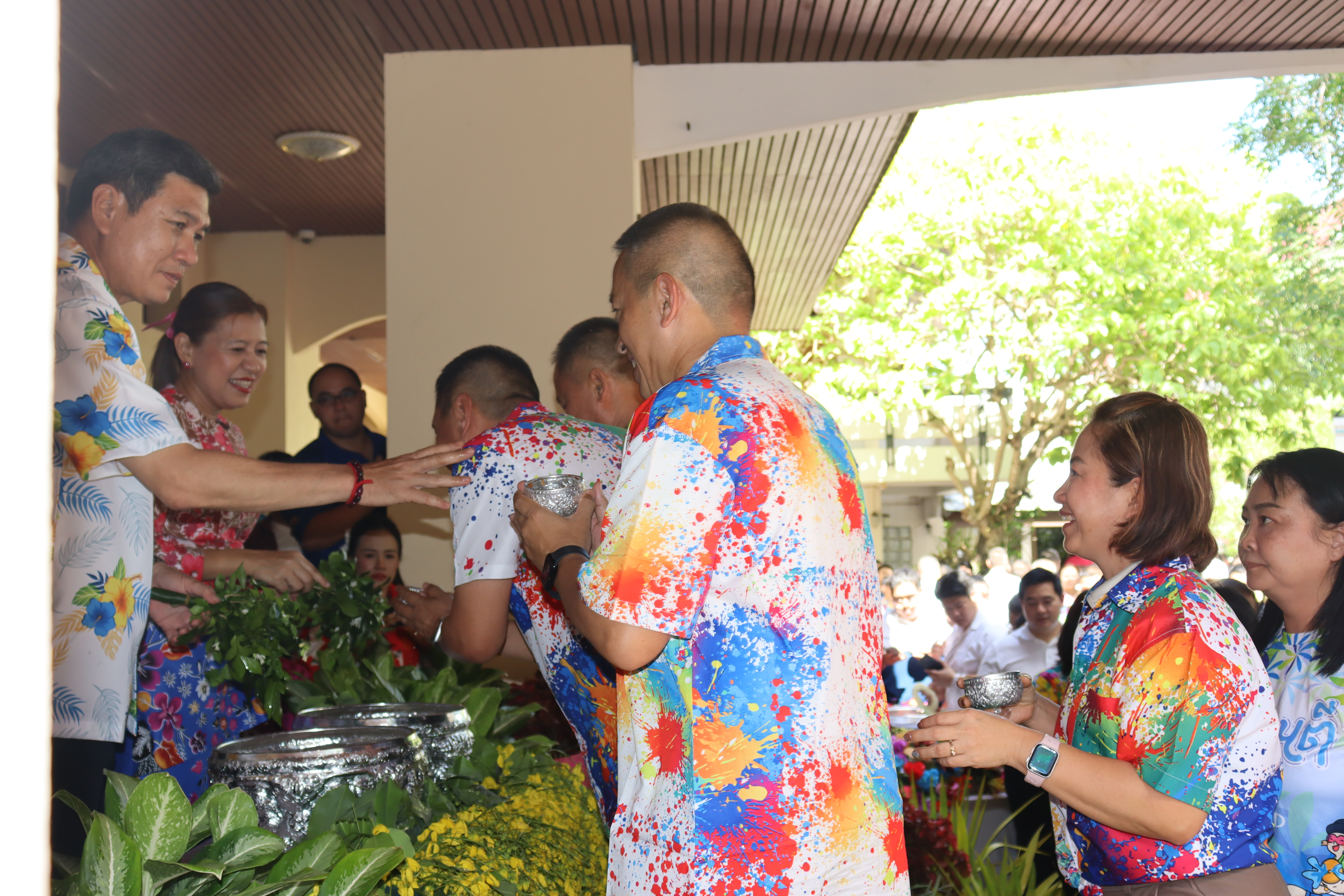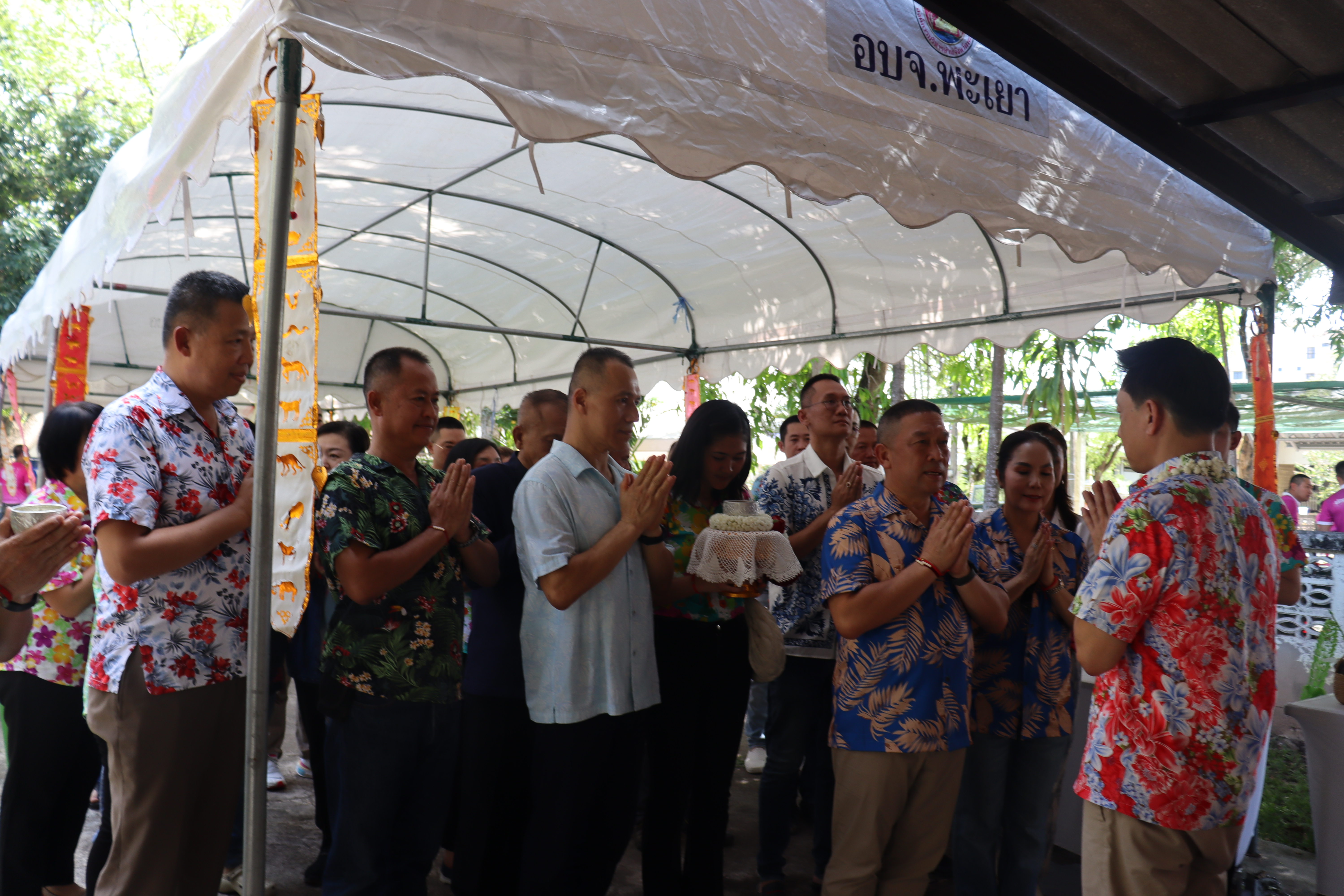 วันพฤหัสบดี ที่ 17 เม.ย.68 เวลา 13.30 น.พล.ต.ต.พงษ์สวัสดิ์ ไชยบาล ผบก.ภ.จว.พะเยา,คุณมลธิชา ไชยบาล ประธานแม่บ้านตำรวจภูธรจังหวัดพะเยา พร้อมด้วย พ.ต.อ.พรเทพ น้องการ รอง ผบก.ภ.จว.พะเยา,พ.ต.อ.จิรภัทร มุ่งดี รอง ผบก.ภ.จว.พะเยา,พ.ต.อ.อัครภูมิ ชนะใหญ่ รอง ผบก.ภ.จว.พะเยา,พ.ต.อ.อภิรักษ์ นักไร่ รอง ผบก.ภ.จว.พะเยา,พ.ต.อ.อานันท์จักร์ กนกนพวัชร์ รอง ผบก.ภ.จว.พะเยา,ผกก.สส.ฯ,ผกก.สภ.ฯ,ผกก.(สอบสวน) กลุ่มงานสอบสวนฯ,ผกก.ฝอ.ฯ พร้อมข้าราชการตำรวจในสังกัด และคณะแม่บ้านตำรวจภูธรจังหวัดพะเยา เข้าร่วมกิจกรรมรดน้ำขอพรนาย รัฐพล นราดิศร ผู้ว่าราชการจังหวัดพะเยา,นายกเหล่ากาชาดจังหวัดพะเยา,รองผู้ว่าราชการจังหวัดพะเยา ณ บริเวณจวนผู้ว่าราชการจังหวัดพะเยา ต่อจากนั้นได้เดินทางไปรดน้ำขอพรจากนายเกรียงศักดิ์ ปานศิลา ผู้พิพากษาหัวหน้าศาลจังหวัดพะเยา ณ ศาลจังหวัดพะเยา