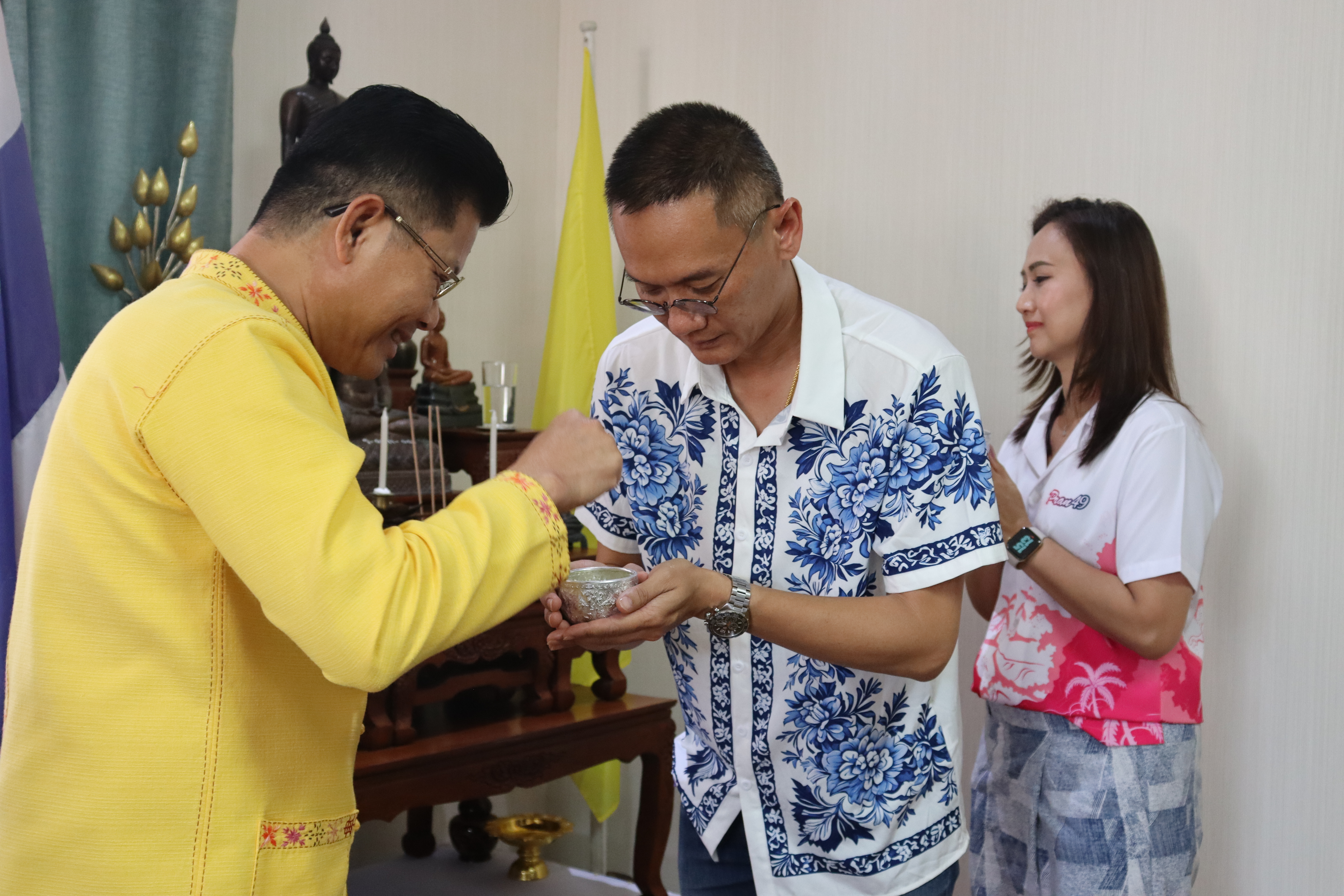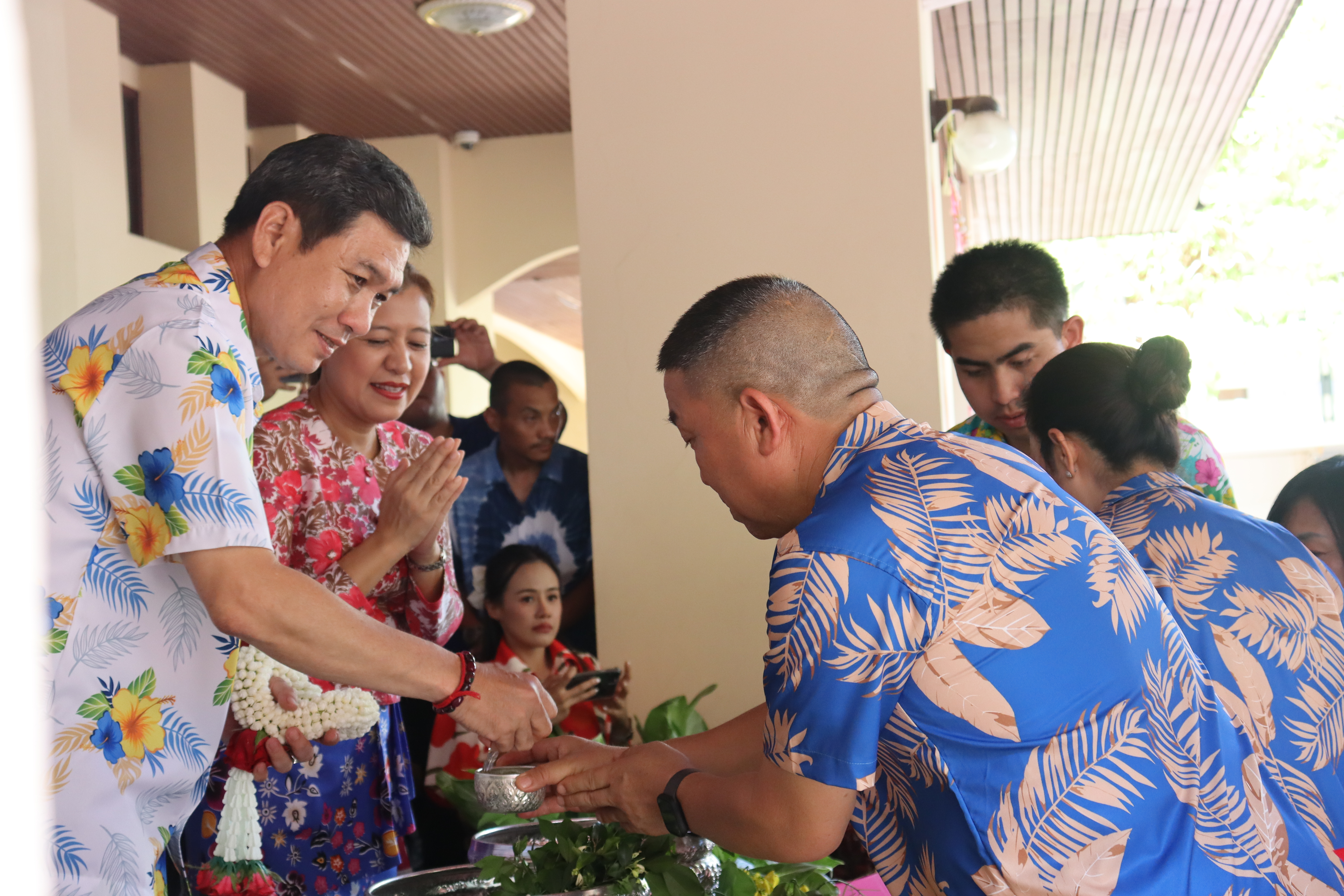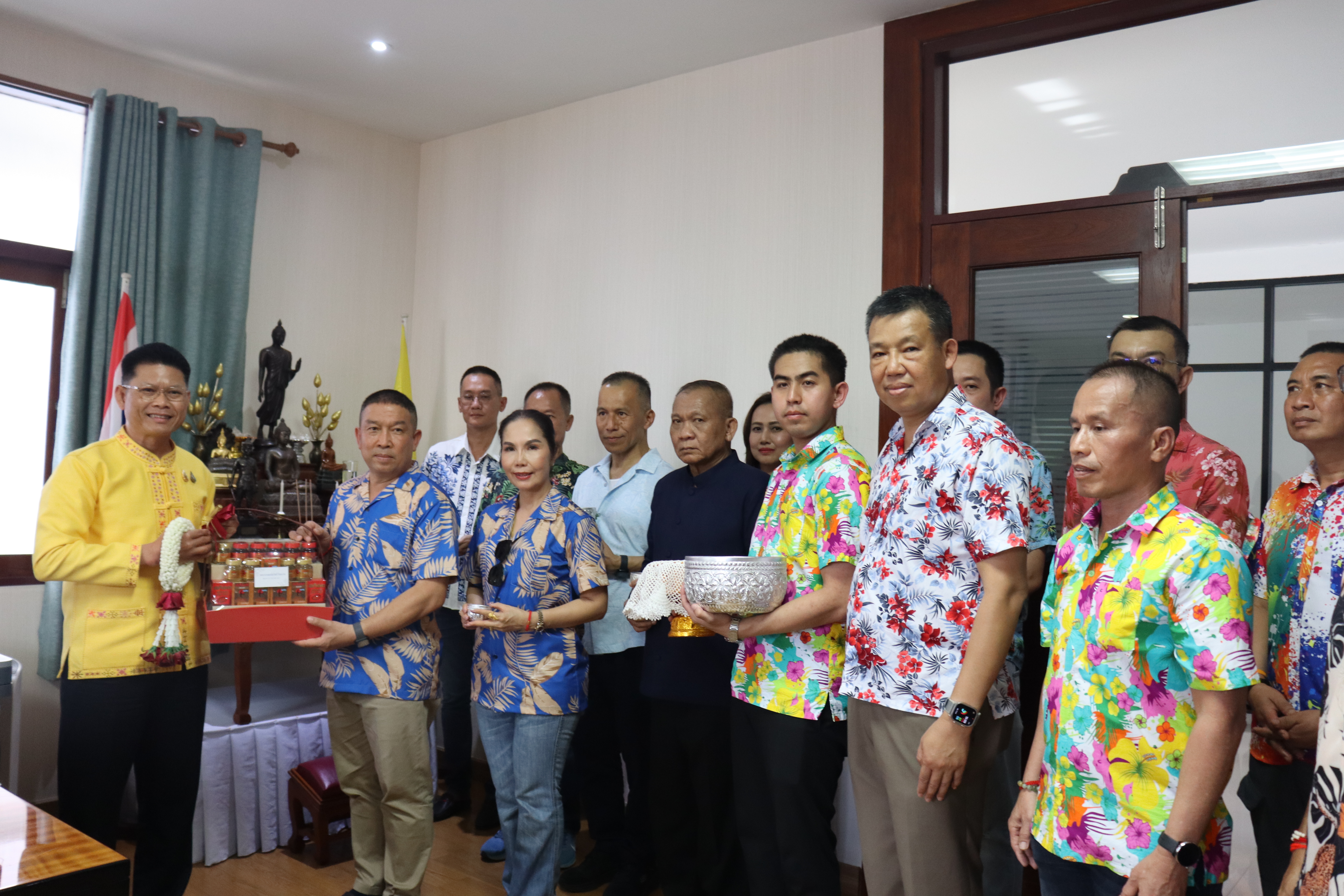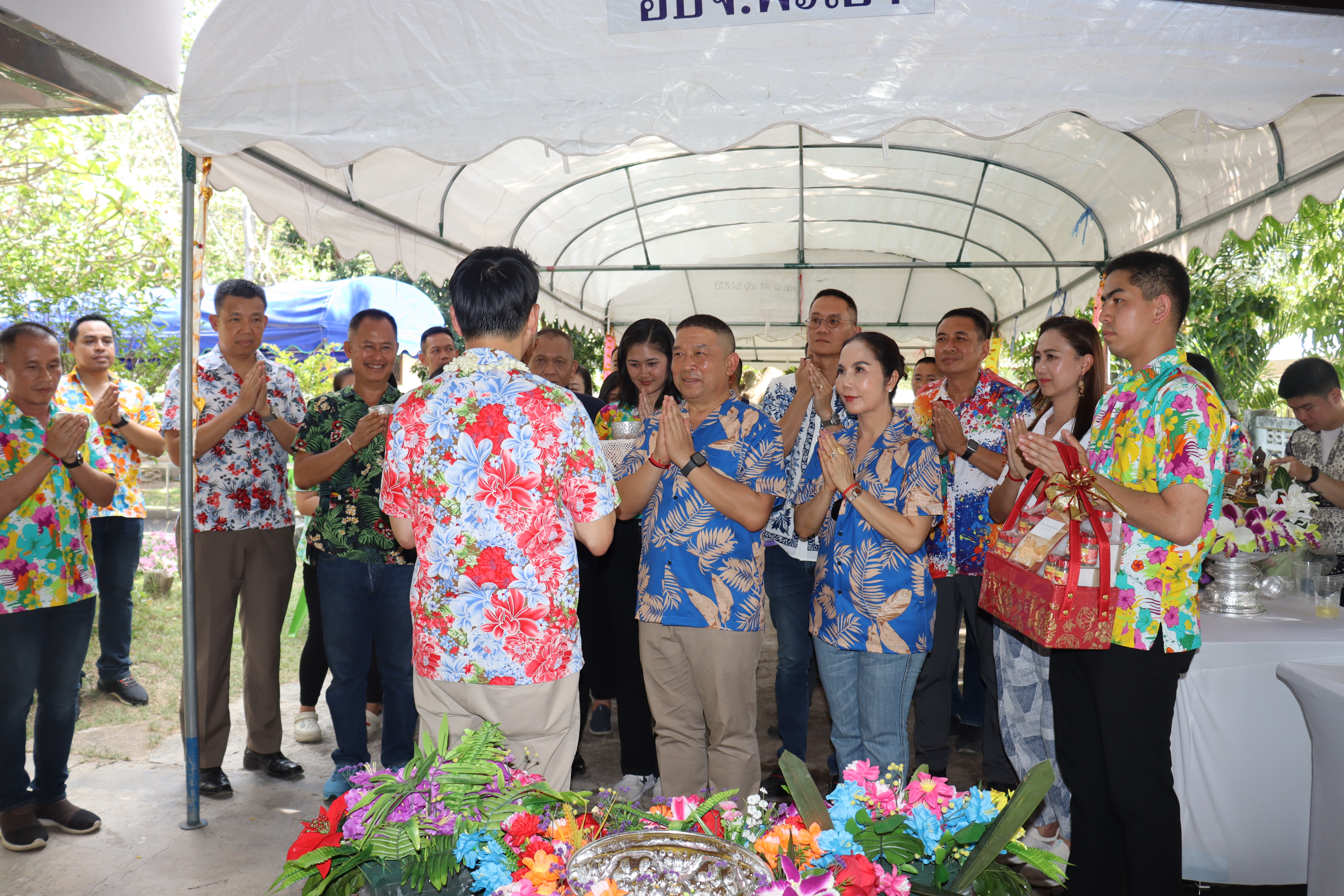 วันพฤหัสบดี ที่ 17 เม.ย.68 เวลา 13.30 น.พล.ต.ต.พงษ์สวัสดิ์ ไชยบาล ผบก.ภ.จว.พะเยา,คุณมลธิชา ไชยบาล ประธานแม่บ้านตำรวจภูธรจังหวัดพะเยา พร้อมด้วย พ.ต.อ.พรเทพ น้องการ รอง ผบก.ภ.จว.พะเยา,พ.ต.อ.จิรภัทร มุ่งดี รอง ผบก.ภ.จว.พะเยา,พ.ต.อ.อัครภูมิ ชนะใหญ่ รอง ผบก.ภ.จว.พะเยา,พ.ต.อ.อภิรักษ์ นักไร่ รอง ผบก.ภ.จว.พะเยา,พ.ต.อ.อานันท์จักร์ กนกนพวัชร์ รอง ผบก.ภ.จว.พะเยา,ผกก.สส.ฯ,ผกก.สภ.ฯ,ผกก.(สอบสวน) กลุ่มงานสอบสวนฯ,ผกก.ฝอ.ฯ พร้อมข้าราชการตำรวจในสังกัด และคณะแม่บ้านตำรวจภูธรจังหวัดพะเยา เข้าร่วมกิจกรรมรดน้ำขอพรนาย รัฐพล นราดิศร ผู้ว่าราชการจังหวัดพะเยา,นายกเหล่ากาชาดจังหวัดพะเยา,รองผู้ว่าราชการจังหวัดพะเยา ณ บริเวณจวนผู้ว่าราชการจังหวัดพะเยา ต่อจากนั้นได้เดินทางไปรดน้ำขอพรจากนายเกรียงศักดิ์ ปานศิลา ผู้พิพากษาหัวหน้าศาลจังหวัดพะเยา ณ ศาลจังหวัดพะเยา