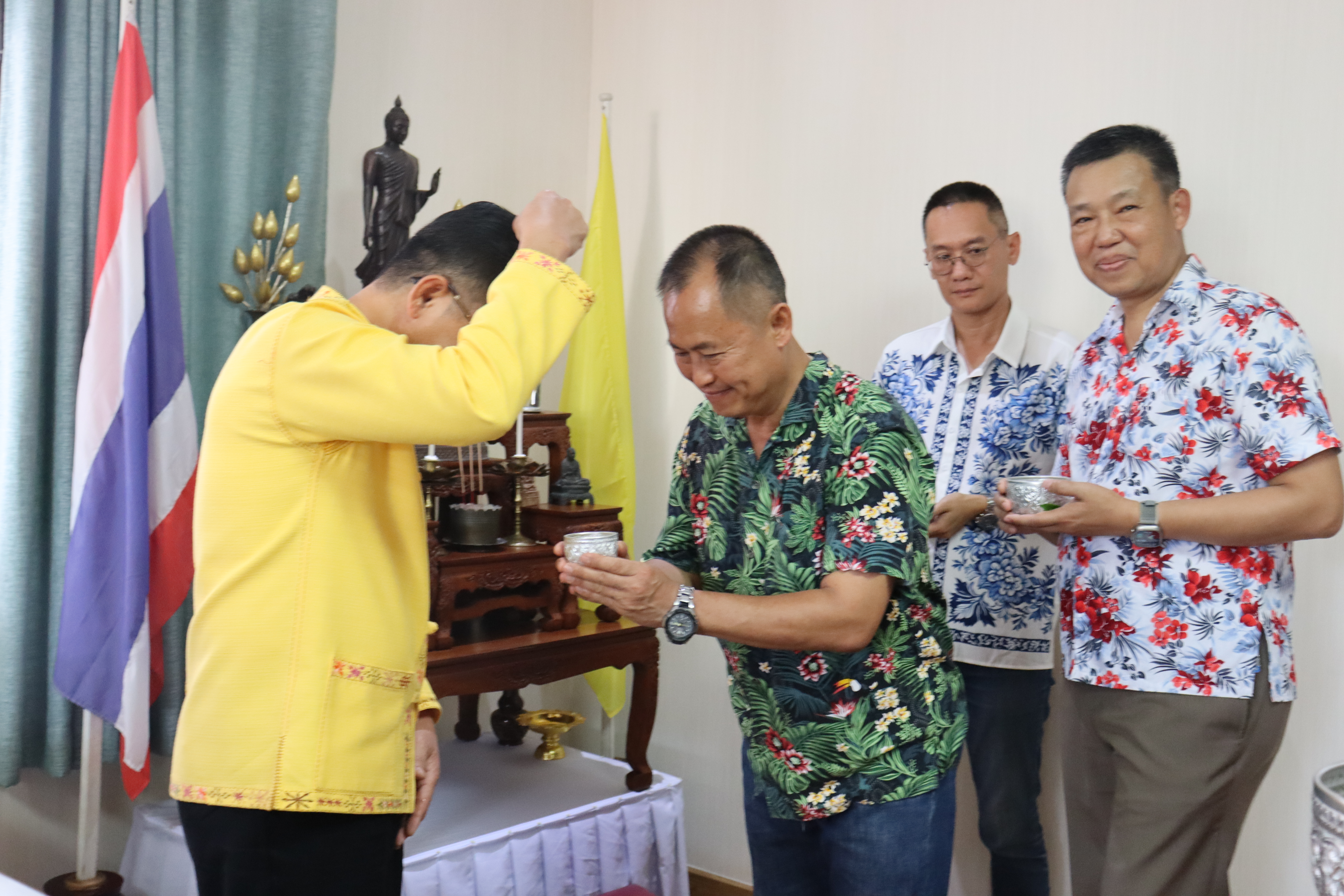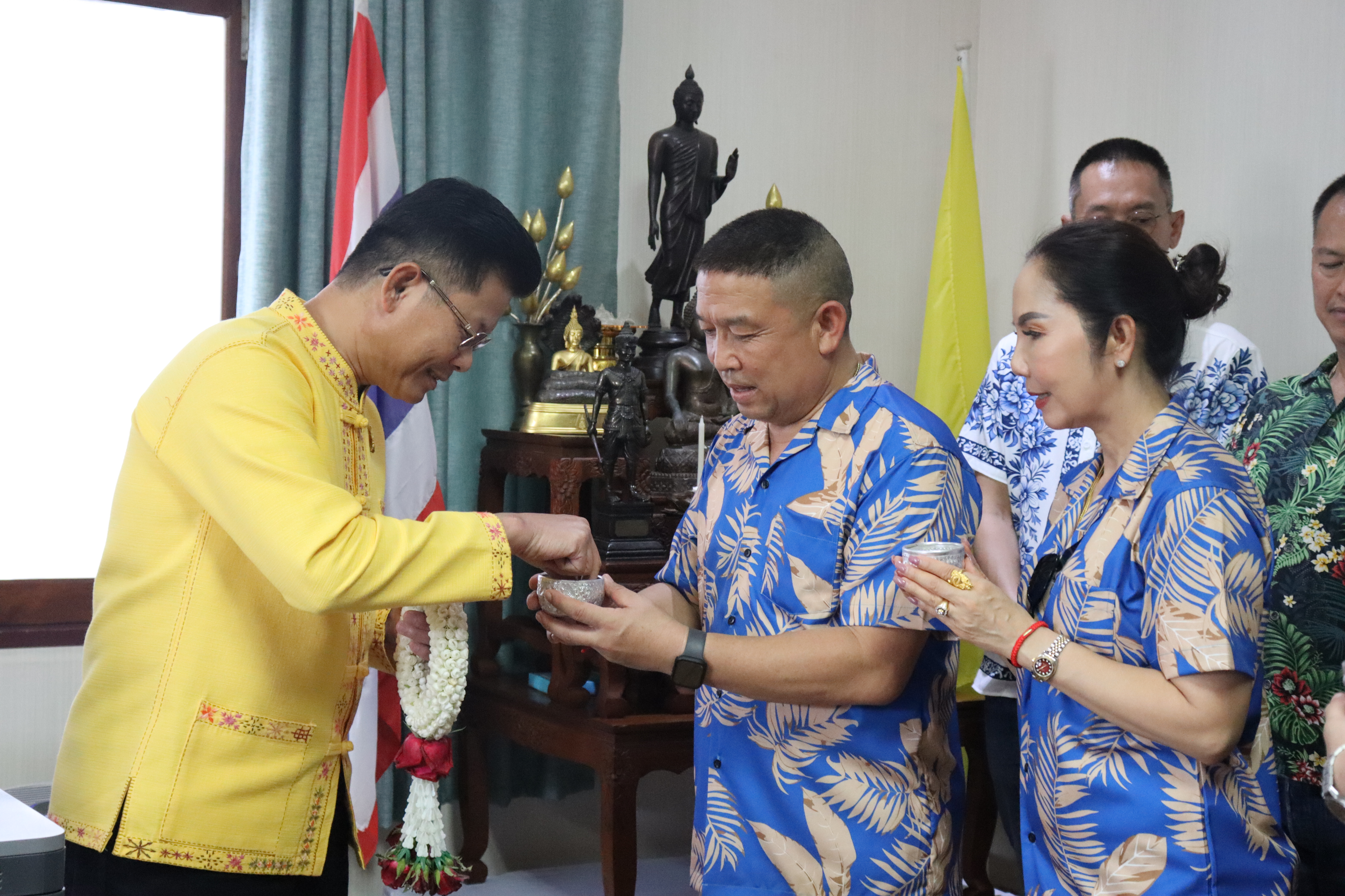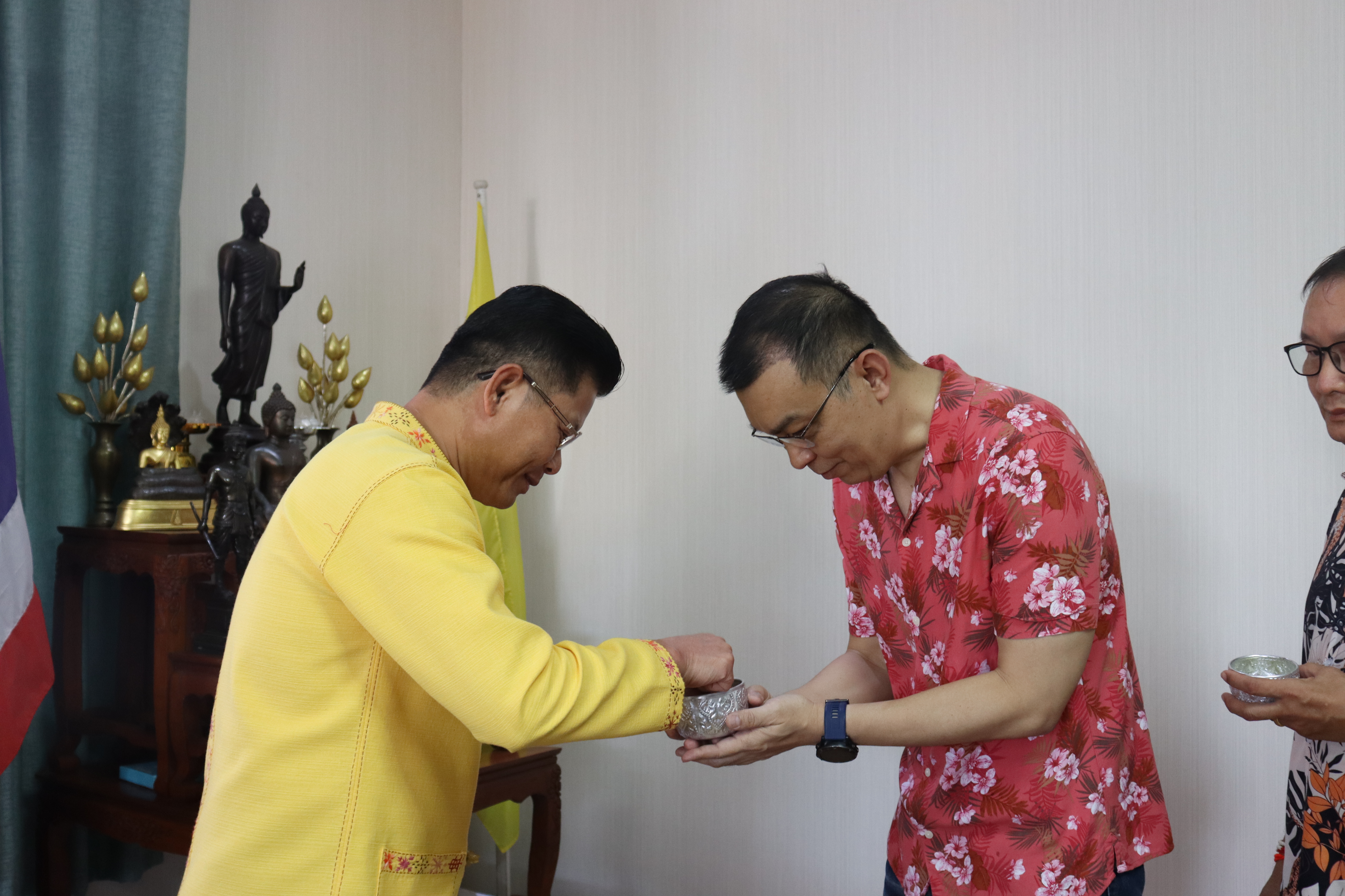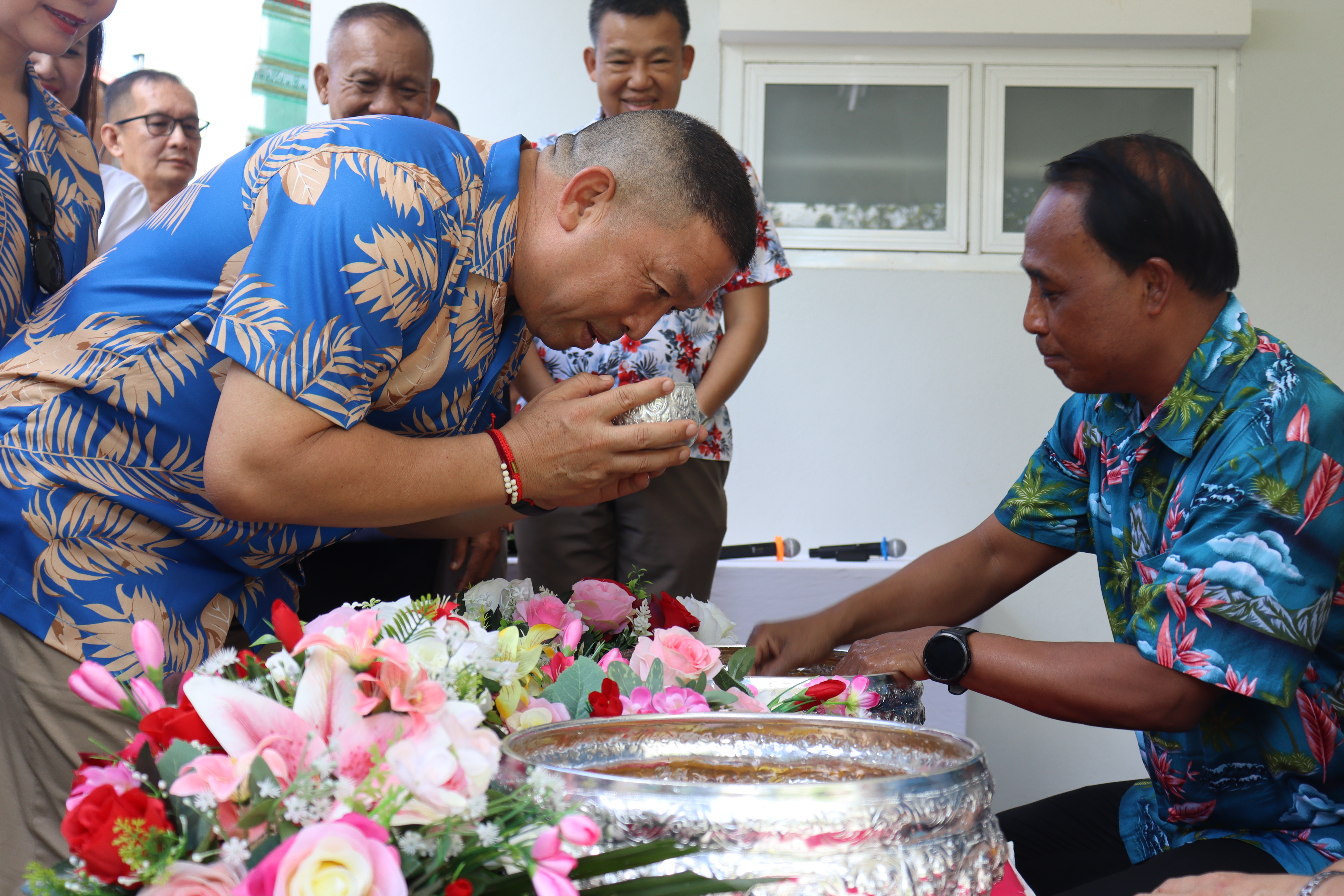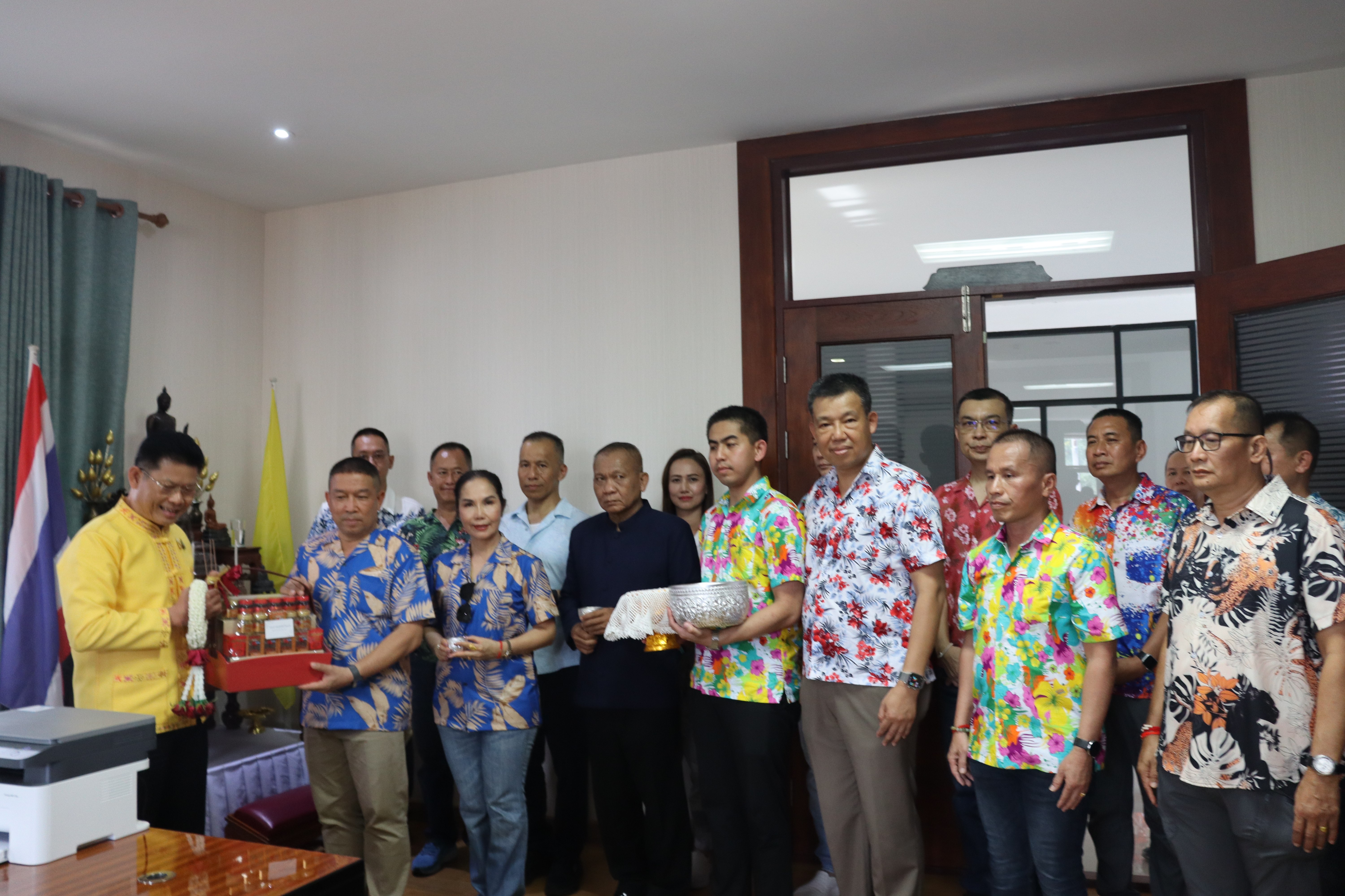 วันพฤหัสบดี ที่ 17 เม.ย.68 เวลา 13.30 น.พล.ต.ต.พงษ์สวัสดิ์ ไชยบาล ผบก.ภ.จว.พะเยา,คุณมลธิชา ไชยบาล ประธานแม่บ้านตำรวจภูธรจังหวัดพะเยา พร้อมด้วย พ.ต.อ.พรเทพ น้องการ รอง ผบก.ภ.จว.พะเยา,พ.ต.อ.จิรภัทร มุ่งดี รอง ผบก.ภ.จว.พะเยา,พ.ต.อ.อัครภูมิ ชนะใหญ่ รอง ผบก.ภ.จว.พะเยา,พ.ต.อ.อภิรักษ์ นักไร่ รอง ผบก.ภ.จว.พะเยา,พ.ต.อ.อานันท์จักร์ กนกนพวัชร์ รอง ผบก.ภ.จว.พะเยา,ผกก.สส.ฯ,ผกก.สภ.ฯ,ผกก.(สอบสวน) กลุ่มงานสอบสวนฯ,ผกก.ฝอ.ฯ พร้อมข้าราชการตำรวจในสังกัด และคณะแม่บ้านตำรวจภูธรจังหวัดพะเยา เข้าร่วมกิจกรรมรดน้ำขอพรนาย รัฐพล นราดิศร ผู้ว่าราชการจังหวัดพะเยา,นายกเหล่ากาชาดจังหวัดพะเยา,รองผู้ว่าราชการจังหวัดพะเยา ณ บริเวณจวนผู้ว่าราชการจังหวัดพะเยา ต่อจากนั้นได้เดินทางไปรดน้ำขอพรจากนายเกรียงศักดิ์ ปานศิลา ผู้พิพากษาหัวหน้าศาลจังหวัดพะเยา ณ ศาลจังหวัดพะเยา