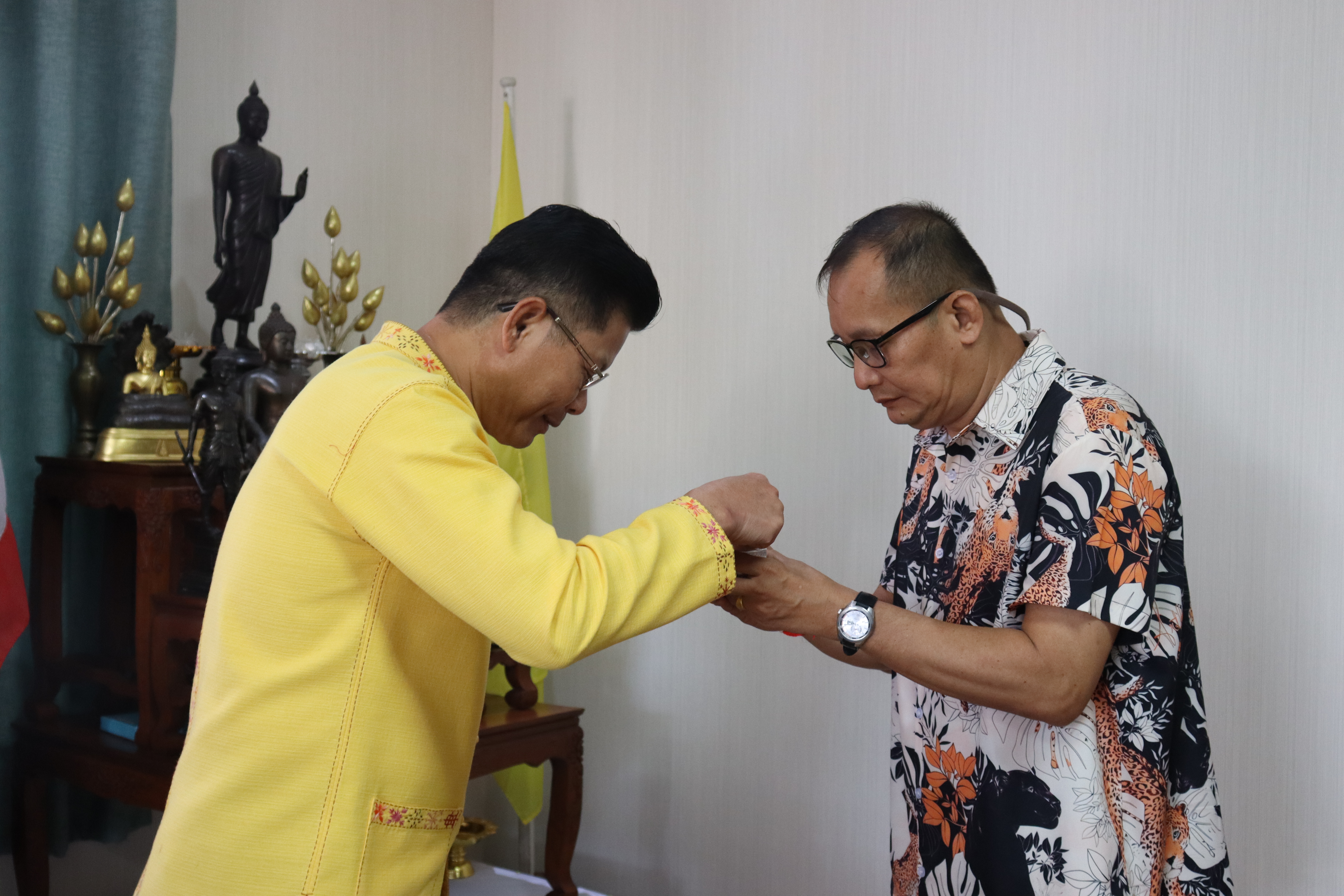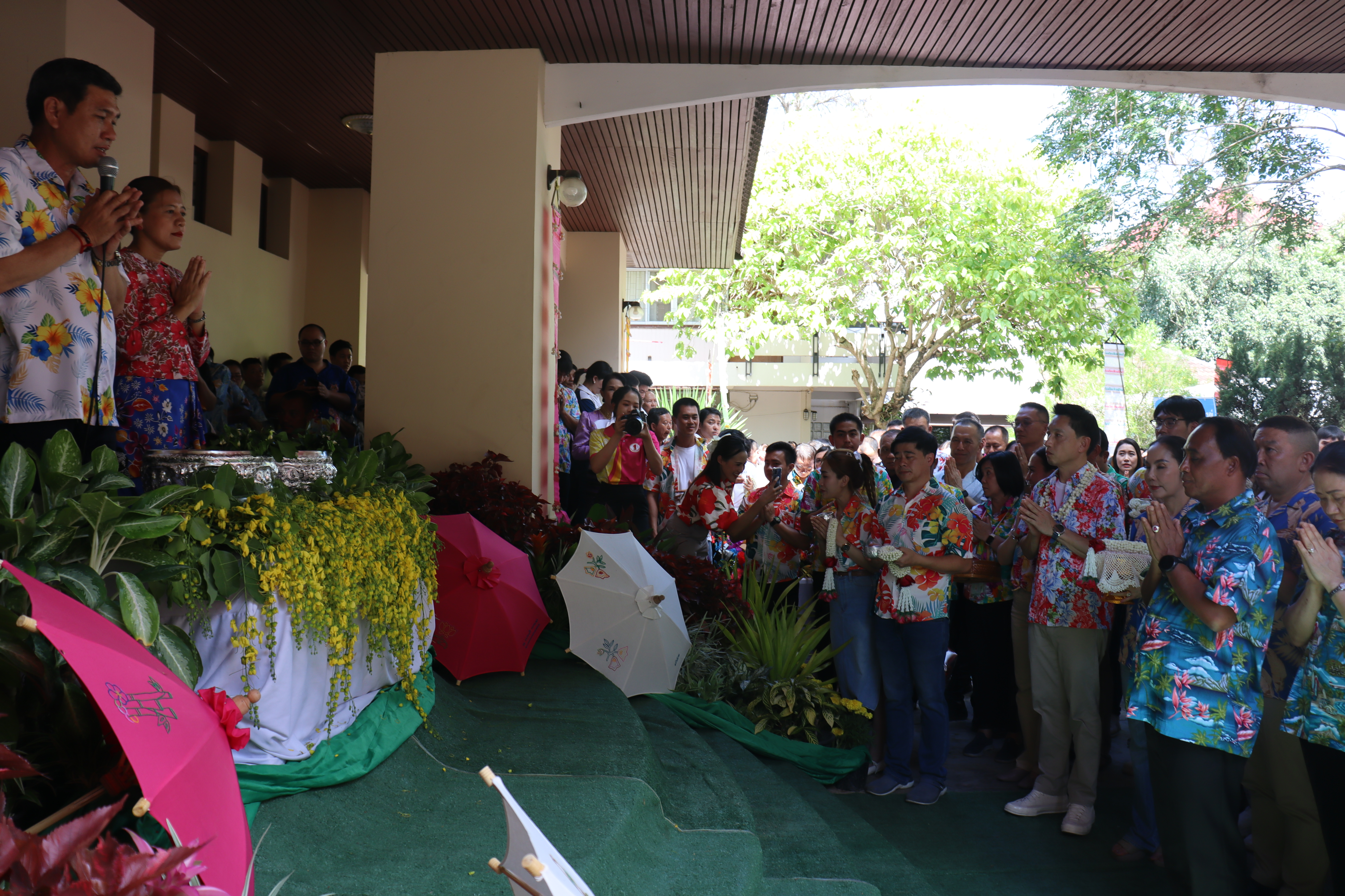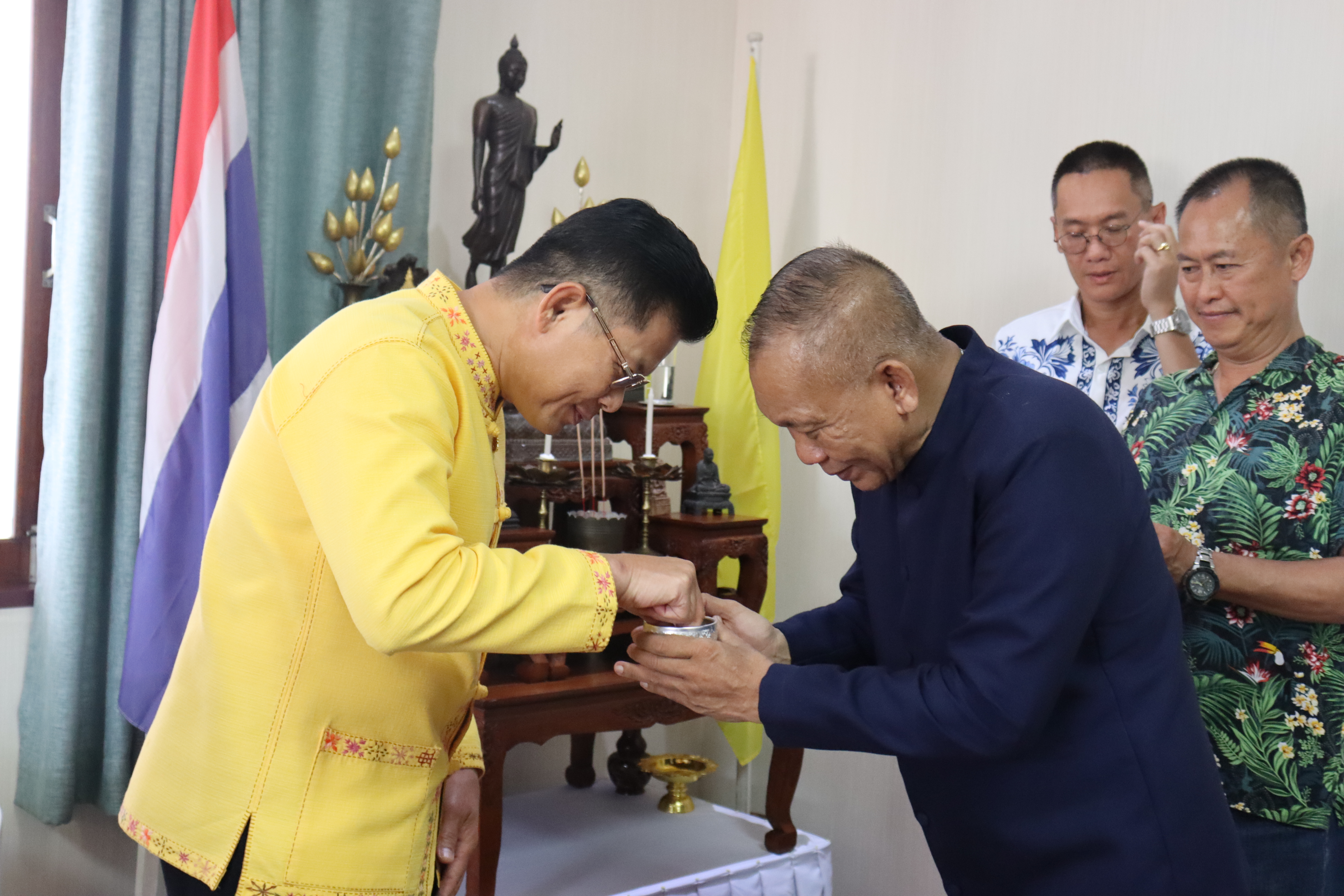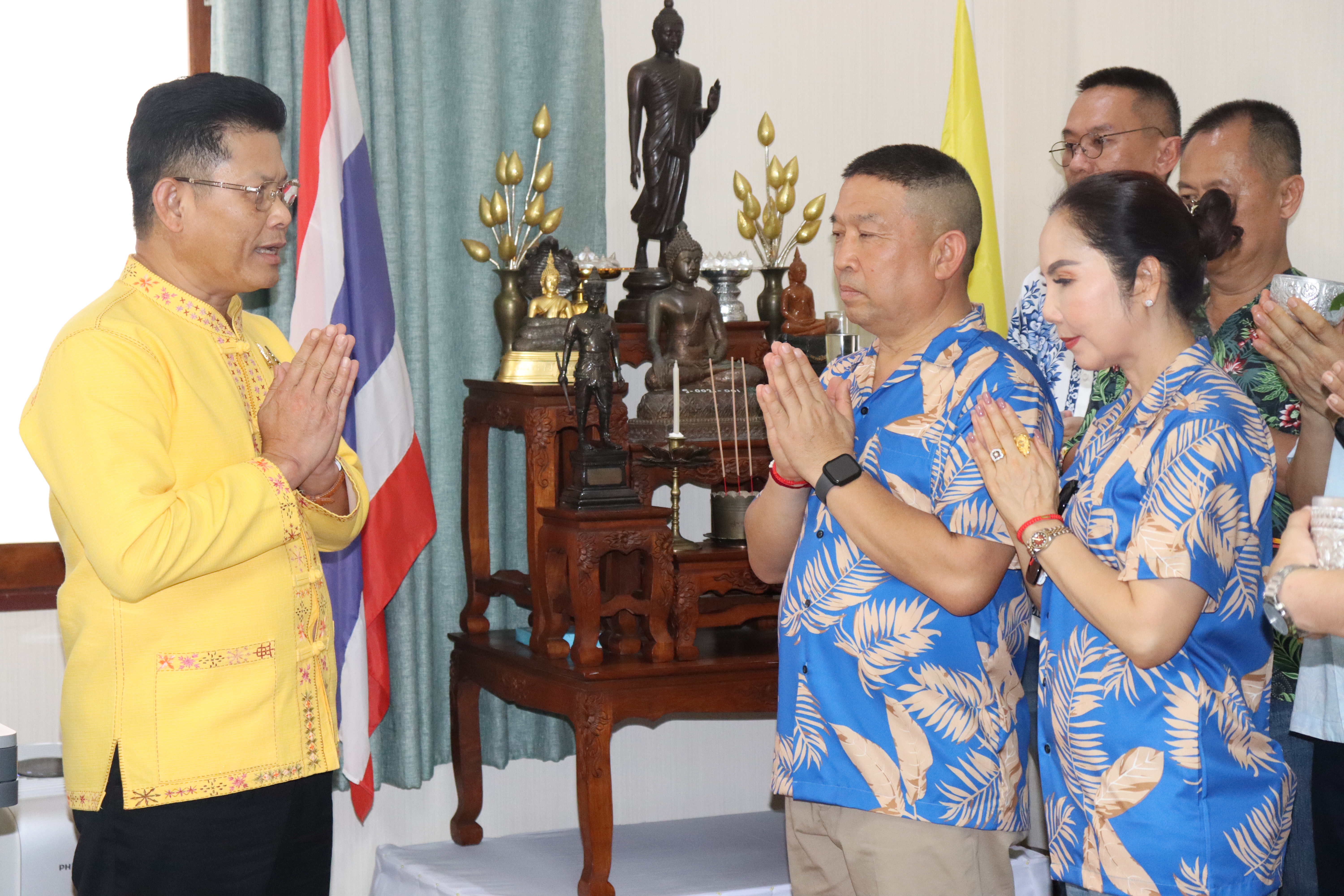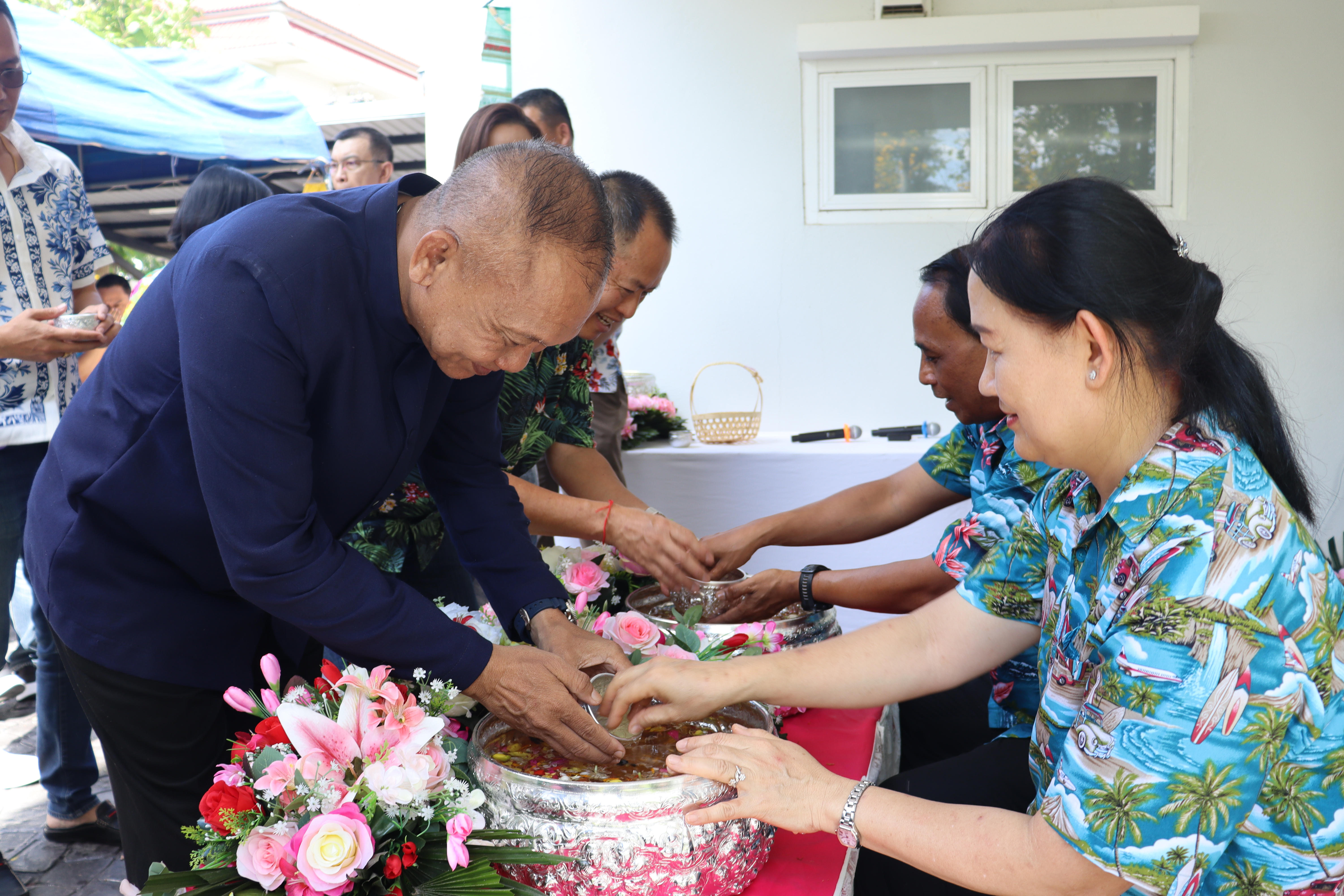 วันพฤหัสบดี ที่ 17 เม.ย.68 เวลา 13.30 น.พล.ต.ต.พงษ์สวัสดิ์ ไชยบาล ผบก.ภ.จว.พะเยา,คุณมลธิชา ไชยบาล ประธานแม่บ้านตำรวจภูธรจังหวัดพะเยา พร้อมด้วย พ.ต.อ.พรเทพ น้องการ รอง ผบก.ภ.จว.พะเยา,พ.ต.อ.จิรภัทร มุ่งดี รอง ผบก.ภ.จว.พะเยา,พ.ต.อ.อัครภูมิ ชนะใหญ่ รอง ผบก.ภ.จว.พะเยา,พ.ต.อ.อภิรักษ์ นักไร่ รอง ผบก.ภ.จว.พะเยา,พ.ต.อ.อานันท์จักร์ กนกนพวัชร์ รอง ผบก.ภ.จว.พะเยา,ผกก.สส.ฯ,ผกก.สภ.ฯ,ผกก.(สอบสวน) กลุ่มงานสอบสวนฯ,ผกก.ฝอ.ฯ พร้อมข้าราชการตำรวจในสังกัด และคณะแม่บ้านตำรวจภูธรจังหวัดพะเยา เข้าร่วมกิจกรรมรดน้ำขอพรนาย รัฐพล นราดิศร ผู้ว่าราชการจังหวัดพะเยา,นายกเหล่ากาชาดจังหวัดพะเยา,รองผู้ว่าราชการจังหวัดพะเยา ณ บริเวณจวนผู้ว่าราชการจังหวัดพะเยา ต่อจากนั้นได้เดินทางไปรดน้ำขอพรจากนายเกรียงศักดิ์ ปานศิลา ผู้พิพากษาหัวหน้าศาลจังหวัดพะเยา ณ ศาลจังหวัดพะเยา