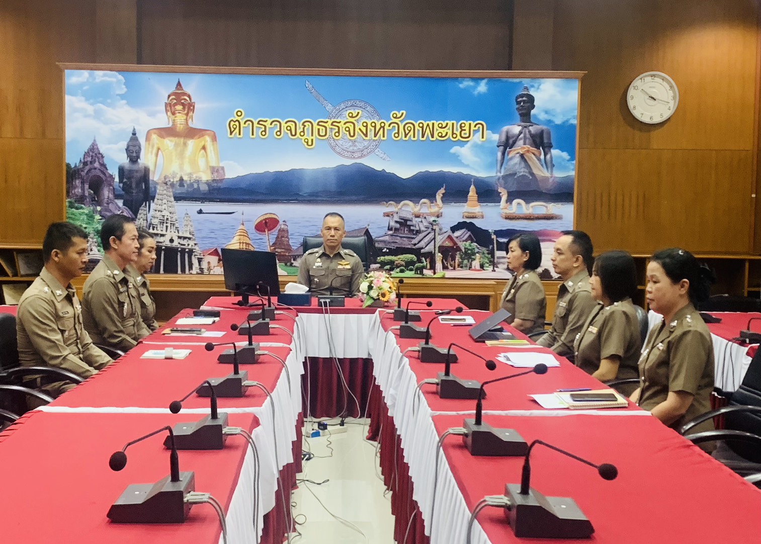 วันจันทร์ ที่ 2 มี.ค.69 เวลา 10.00 น.พล.ต.ต.พงษ์สวัสดิ์ ไชยบาล ผบก.ภ.จว.พะเยา พร้อมด้วย ผกก.สืบสวน ภ.จว.พะเยา,ผกก.สภ.ในสังกัด เข้าร่วมการประชุมบริหาร ภ.5 ครั้งที่ 5/2569 ณ ห้องประชุมอาคารสโมสรคุ้มแก้ว-ขวัญดาว ภ.5 อ.เมือง จว.เชียงใหม่ โดยมี พ.ต.อ.พรเทพ น้องการ รอง ผบก.ภ.จว.พะเยา เป็นประธานฯ พร้อมด้วย พ.ต.อ.หญิง จริญทิพย์ เทพพรมวงศ์ ผกก.ฝอ.ภ.จว.พะเยา และเจ้าหน้าที่ที่เกี่ยวข้อง เข้าร่วมการประชุมฯ ผ่านระบบประชุมทางไกลผ่านจอภาพทางสื่ออิเล็กทรอนิกส์ (Application Zoom Meeting) ณ ห้องประชุม ภ.จว.พะเยา และมี สภ.ฯ ในสังกัด ร่วมเฝ้าฟังฯ ณ ที่ตั้งของหน่วย