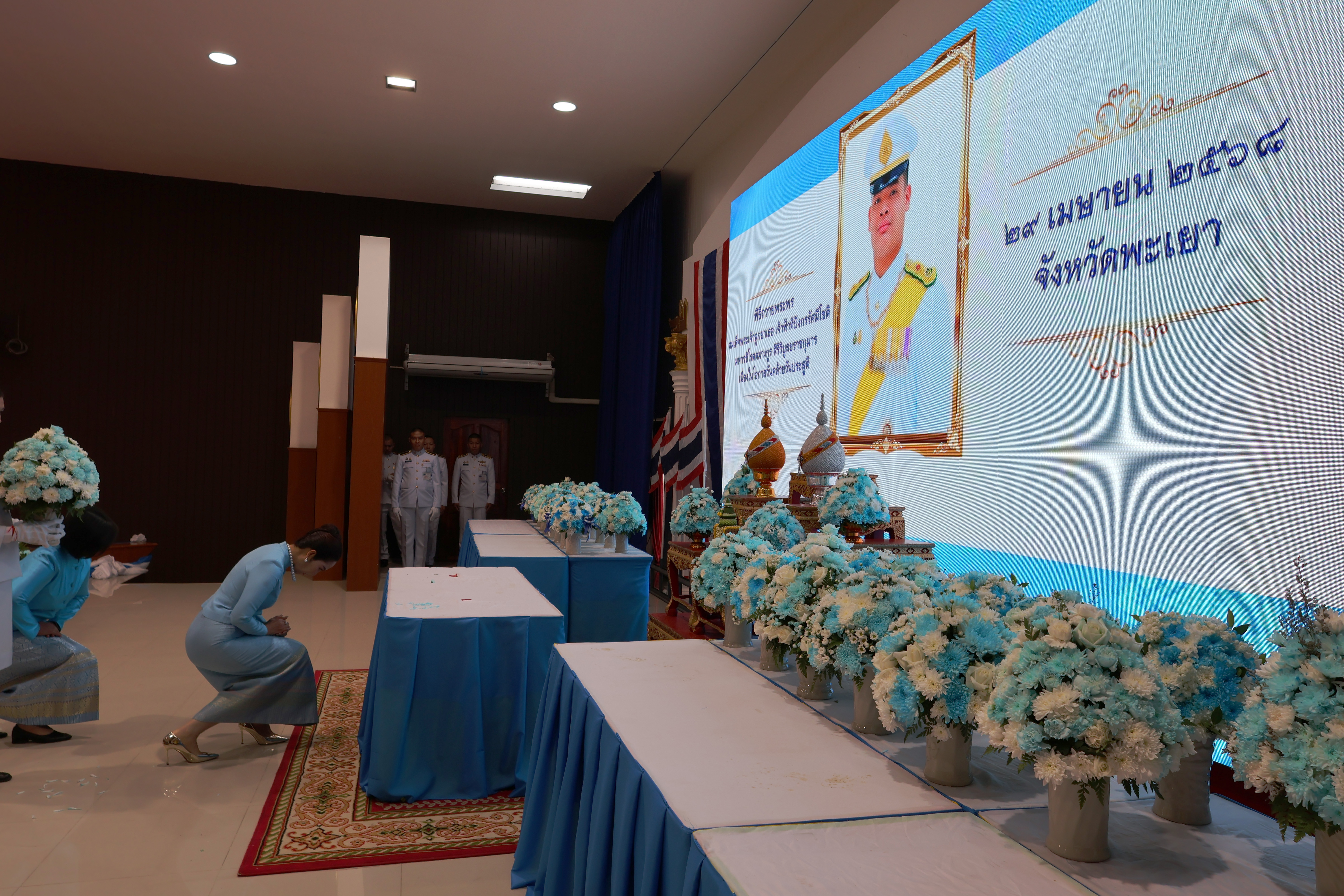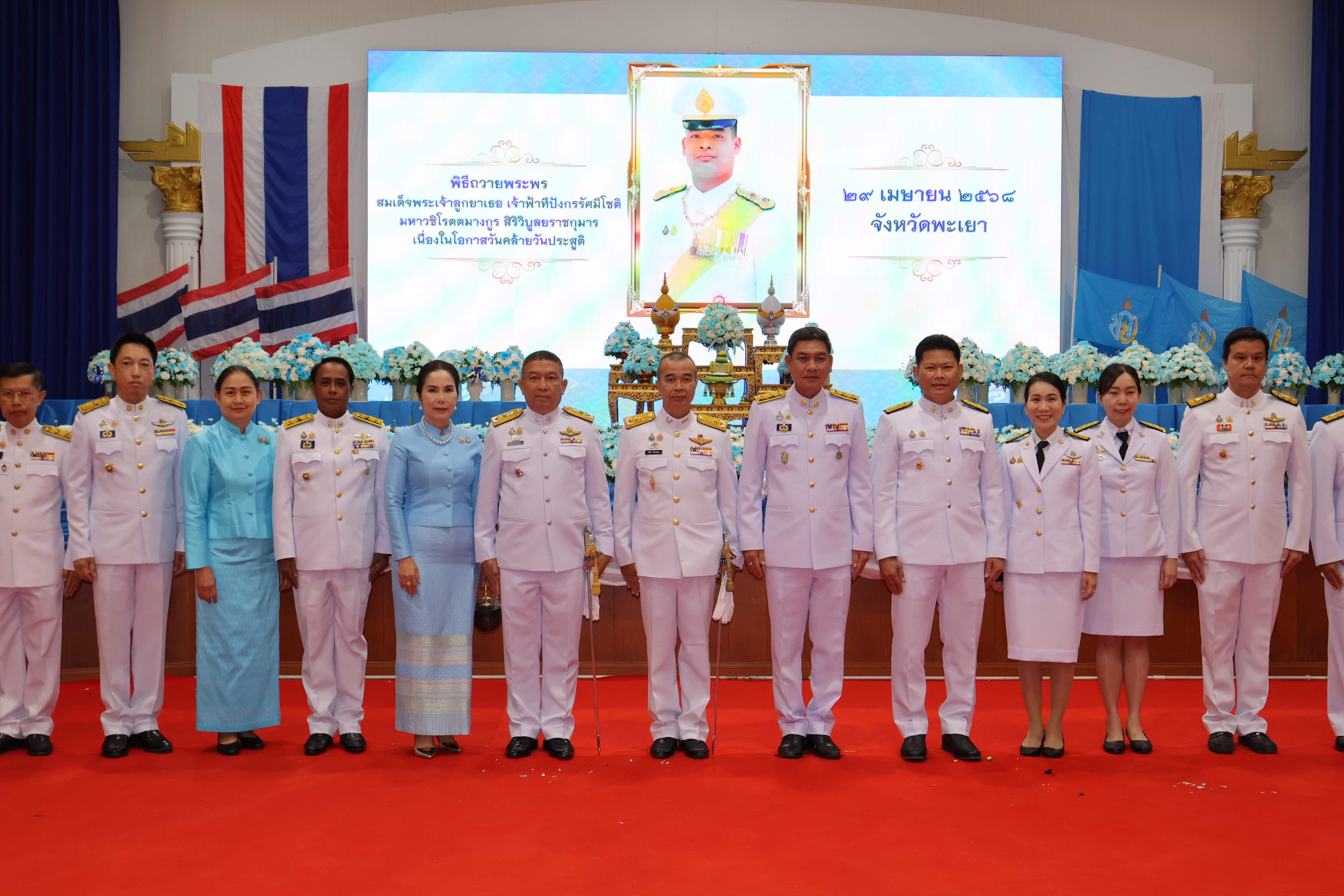 วันอังคาร ที่ 29 เม.ย.68 เวลา 07.30 น. พล.ต.ต.พงษ์สวัสดิ์ ไชยบาล ผบก.ภ.จว.พะเยา,คุณมลธิชา ไชยบาล ประธานแม่บ้านตำรวจภูธรจังหวัดพะเยา,พ.ต.อ.อารินทร์ เทพพรมวงศ์ ผกก.(สอบสวน) กลุ่มงานสอบสวน ภ.จว.พะเยา,พ.ต.อ.หญิง จริญทิพย์ เทพพรมวงศ์ ผกก.ฝอ.ภ.จว.พะเยา พร้อมด้วยคณะแม่บ้านตำรวจภูธรจังหวัดพะเยา และข้าราชการตำรวจ ภ.จว.พะเยา ร่วมพิธีถวายพระพร สมเด็จพระเจ้าลูกเธอเจ้าฟ้าทีปังกรรัศมีโชติ มหาวชิโรตตมางกูร สิริวิบูลยราชกุมาร เนื่องในวันคล้ายวันประสูติ ณ ศาลาประชาคมจังหวัดพะเยา อำเภอเมืองพะเยา จังหวัดพะเยา โดยมี นายรัฐพล นราดิศร ผู้ว่าราชการจังหวัดพะเยา และนางวิยะดา เป็นประธานในพิธีฯ